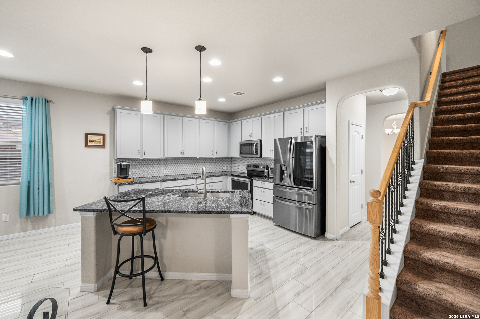 FROM THE MOMENT YOU WALK IN YOU KNOW YOU HAVE ENTERED YOUR VERY OWN PARADISE. STARTING WITH THE BEAUTIFUL TILE FLOORING THROUGHOUT THAT SHOWS THE QUALITY OF THIS HOME. THE CHEF'S KITCHEN IS BUILT AROUND A HUGE GRANITE ISLAND WITH BIG STAINLESS-STEEL SINK, UPGRADED APPLIANCES, LOTS OF UPGRADED CABINETS, AND PANTRY! OPEN FLOOR PLAN WITH THE KITCHEN OPEN TO THE LIVING ROOM MAKES A GREAT AREA FOR ENTERTAINING LARGE GATHERINGS. BIG MASTER BEDROOM DOWNSTAIRS FEATURING A LUXURY BATH FEATURING GRANITE COUNTER TOPS, LARGE WALK-IN SHOWER, DOUBLE VANITY, AND BIG WALK-IN CLOSET. DOWNSTAIRS HAS 2 ADDITONAL BEDROOMS. UPSTAIRS HAS A BIG FLEX ROOM, PLUS A HALF BATH, COULD BE A GAME ROOM, MEDIA ROOM, OFFICE, TEEN HANGOUT, MOTHER-IN-LAW SUITE OR MORE. OUTSIDE FEATURES A COVERED PATIO WITH AN EXTENDED DECK, COMPLETE FENCED AND MORE. ONLY A COUPLE MINUTES TO RANDOLPH, FORT SAM AND MUCH MORE!
