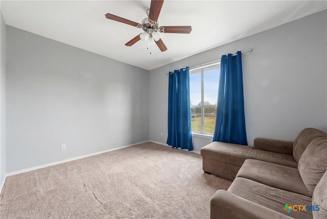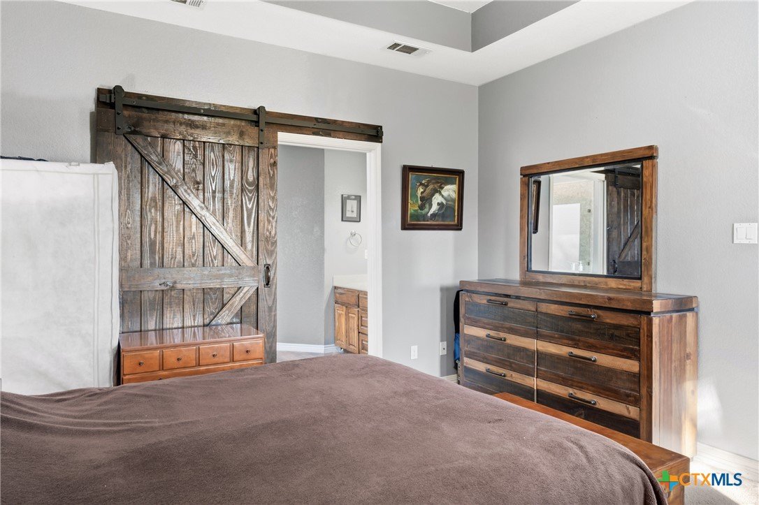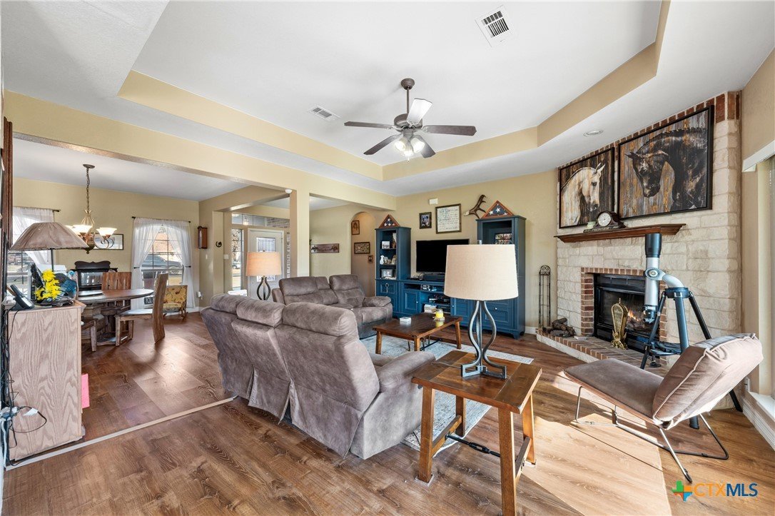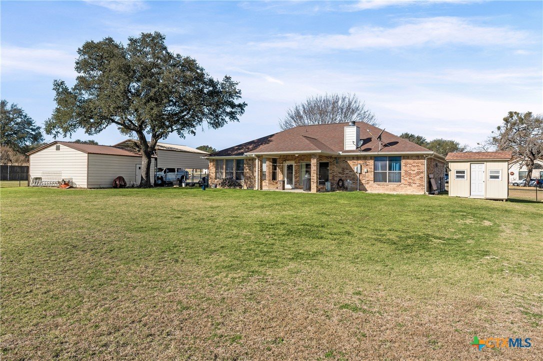 3 Bed | 2 Bath | 0.62+ Acres | Jack & Jill Bath | Insulated Metal Building | RV Carport | 2 RV Hookups | Fireplace | Private Backyard COUNTRY LIVING with the best of both worlds - a spacious lot with a view and an established neighborhood. This home has many features, including a 25x24 INSULATED METAL BUILDING with two rollup doors, 2 RV HOOKUPS, GIANT CARPORT, and easy LAKE access. Walking up, you will notice the covered porch, large enough for FRONT PORCH SITTING. Inside, the OPEN FLOOR plan reveals a stone & brick fireplace, wood floors, and abundant natural light beaming through the PICTURE WINDOW. The kitchen features stainless steel appliances, breakfast bar, and dining nook. Located opposite the living area, the primary suite features a BARN DOOR, tray ceiling, dual sinks, and garden tub. Taking the arch walkway leads to a jack-and-jill bathroom flanked by secondary bedrooms. Each room has a private sink and walk-in closet. An additional sink is perfectly reserved for guests. The backyard faces east, so you can enjoy watching the Texas sunrise over the hills from the covered patio. Don't wait to schedule a private showing.