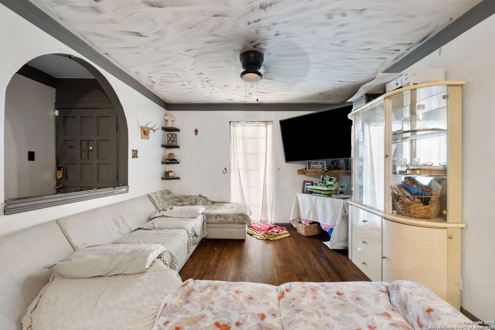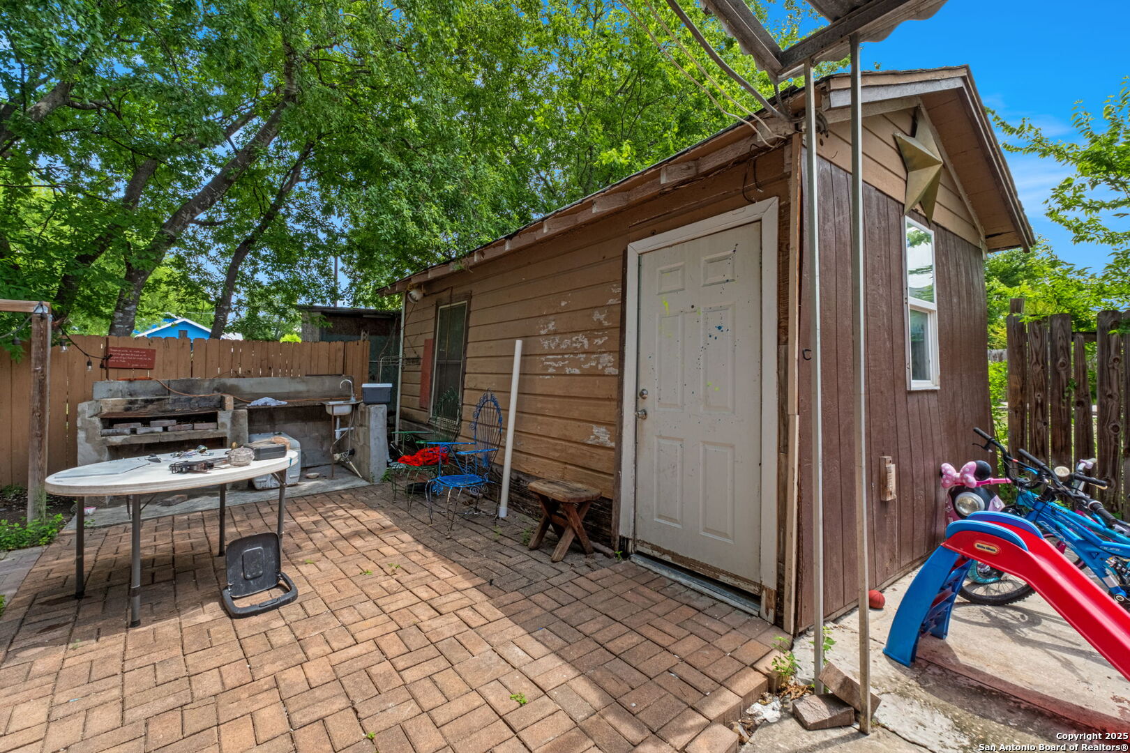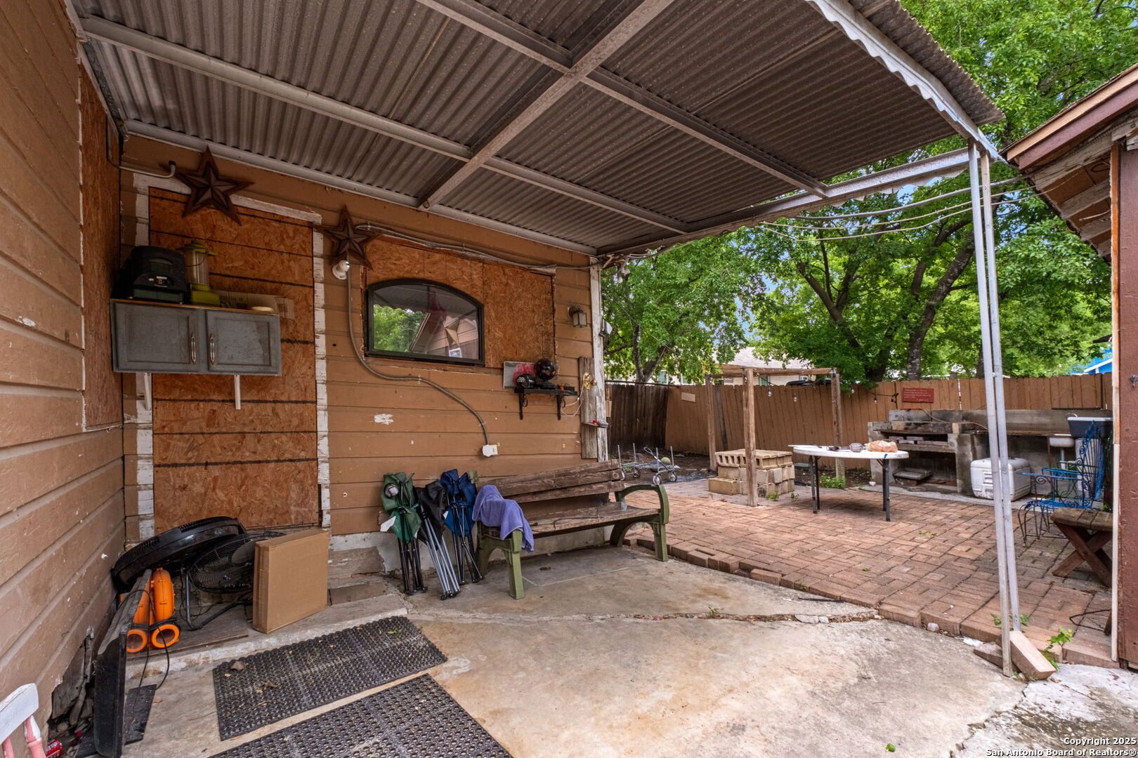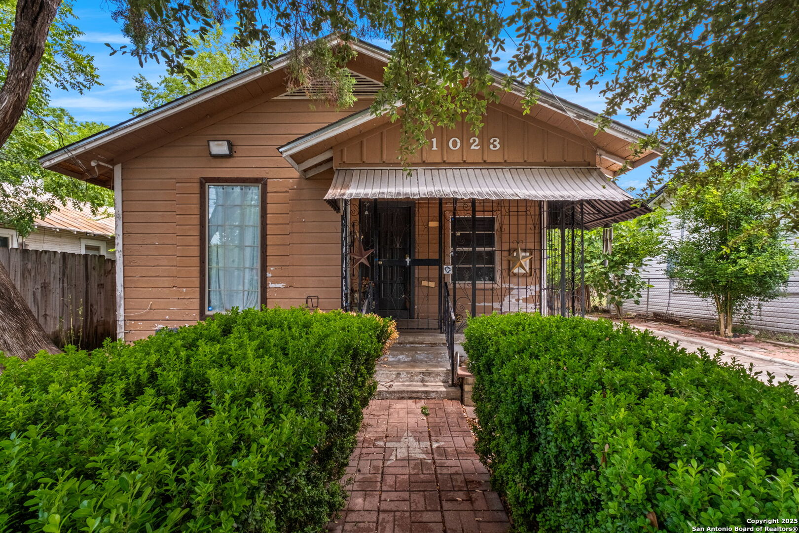 Investor Special - Minutes from Downtown! This 1,075 sq ft home offers great potential with three bedrooms, one full bath, and a garage conversion that adds a versatile fourth room and an additional full bath-ideal for a guest suite, home office, or flex space. The hallway utility closet provides convenient laundry access, while covered patios at the front and side offer functional outdoor living areas. A metal gate at the front entry adds an extra layer of privacy and security. The home is ready for cosmetic updates and offers solid investment potential. Located just 7 minutes from downtown San Antonio and 10 minutes from Southtown, with quick access to schools, shopping, dining, and major roadways.