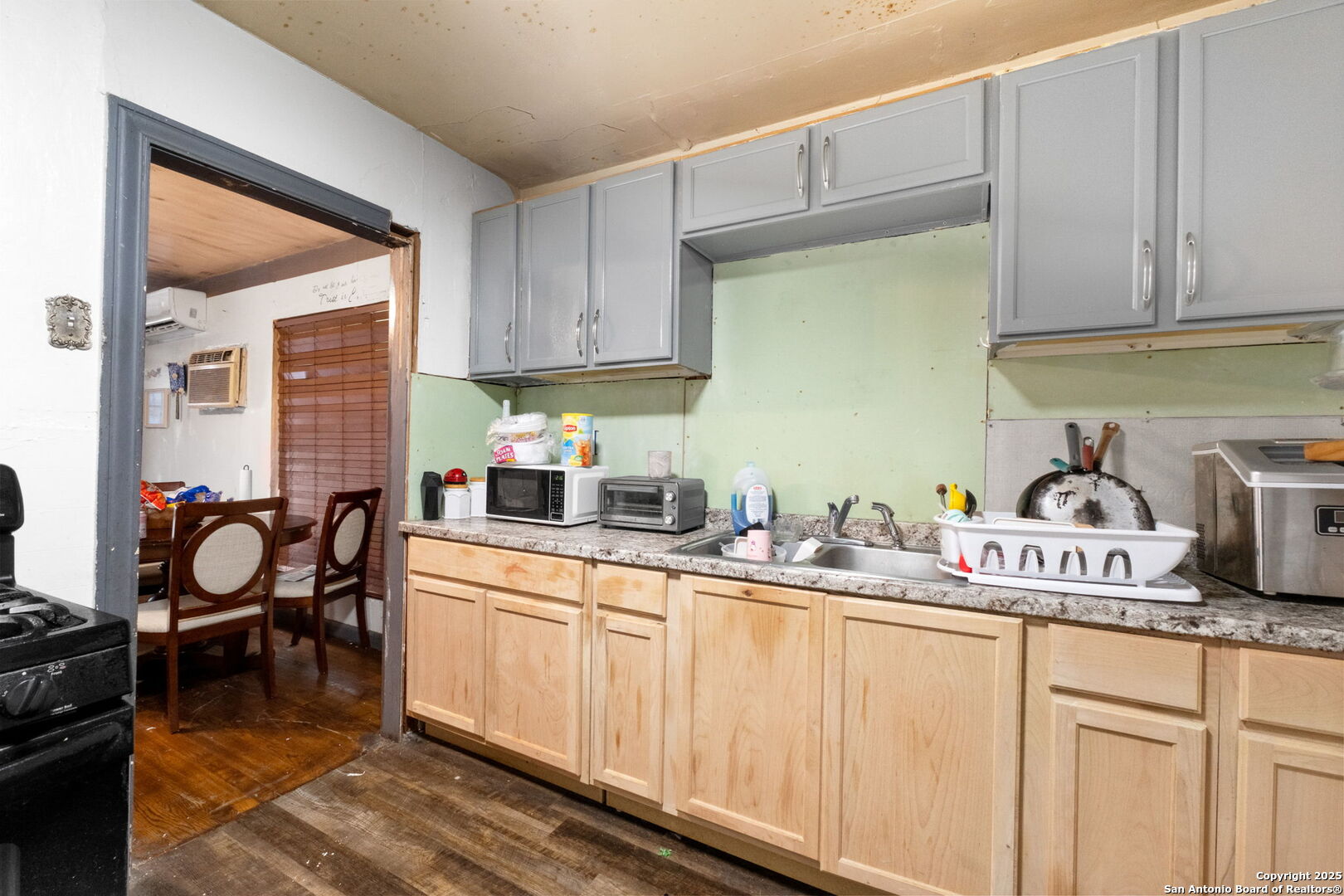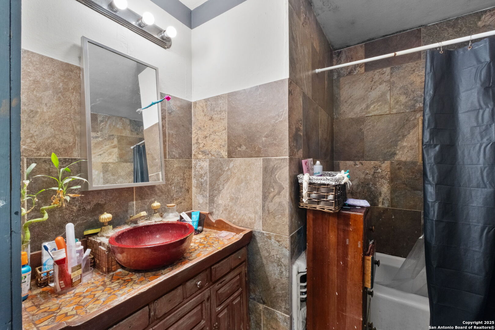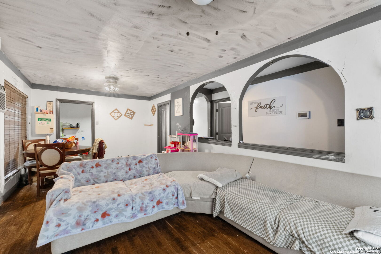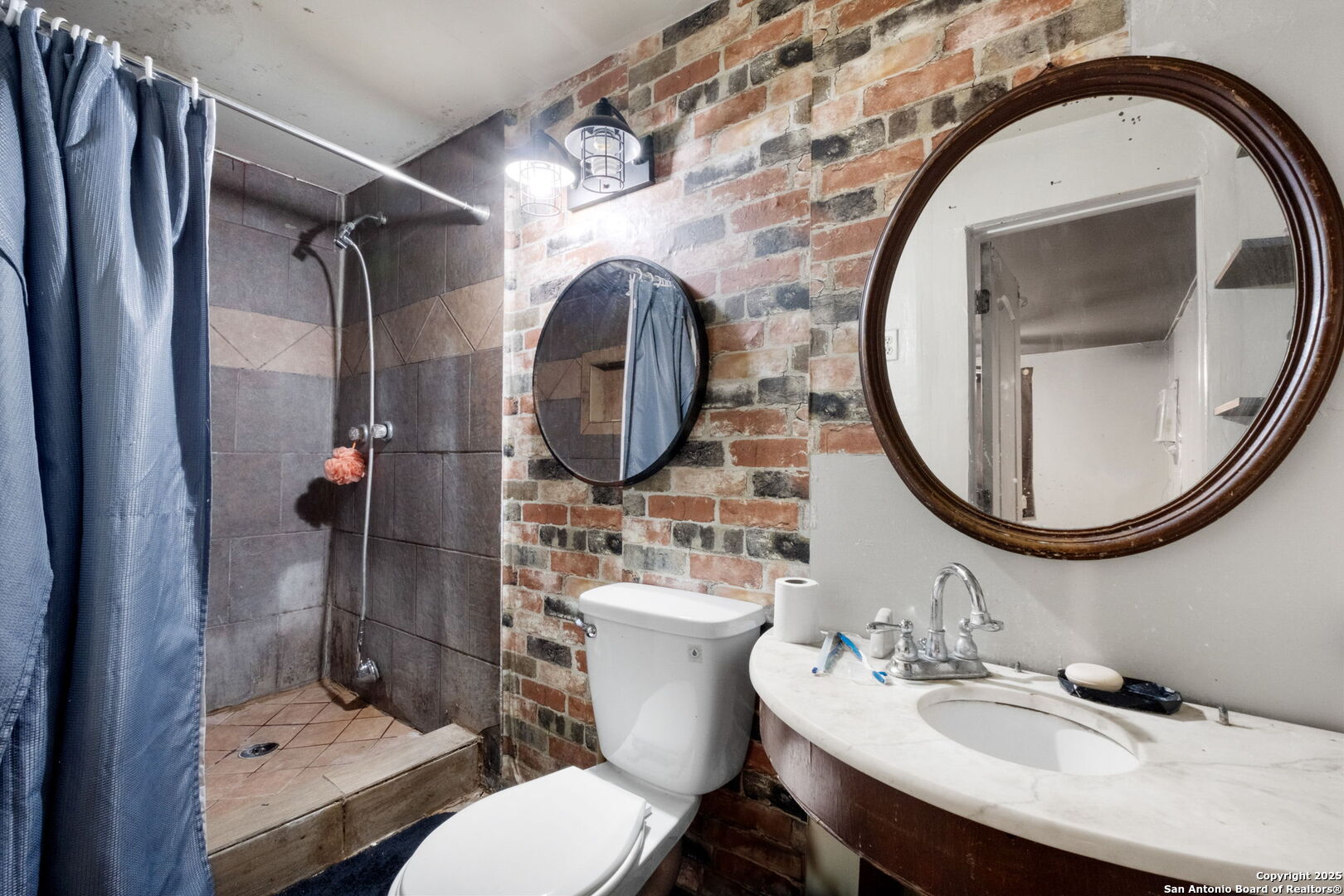 Investor Special - Minutes from Downtown! This 1,075 sq ft home offers great potential with three bedrooms, one full bath, and a garage conversion that adds a versatile fourth room and an additional full bath-ideal for a guest suite, home office, or flex space. The hallway utility closet provides convenient laundry access, while covered patios at the front and side offer functional outdoor living areas. A metal gate at the front entry adds an extra layer of privacy and security. The home is ready for cosmetic updates and offers solid investment potential. Located just 7 minutes from downtown San Antonio and 10 minutes from Southtown, with quick access to schools, shopping, dining, and major roadways.