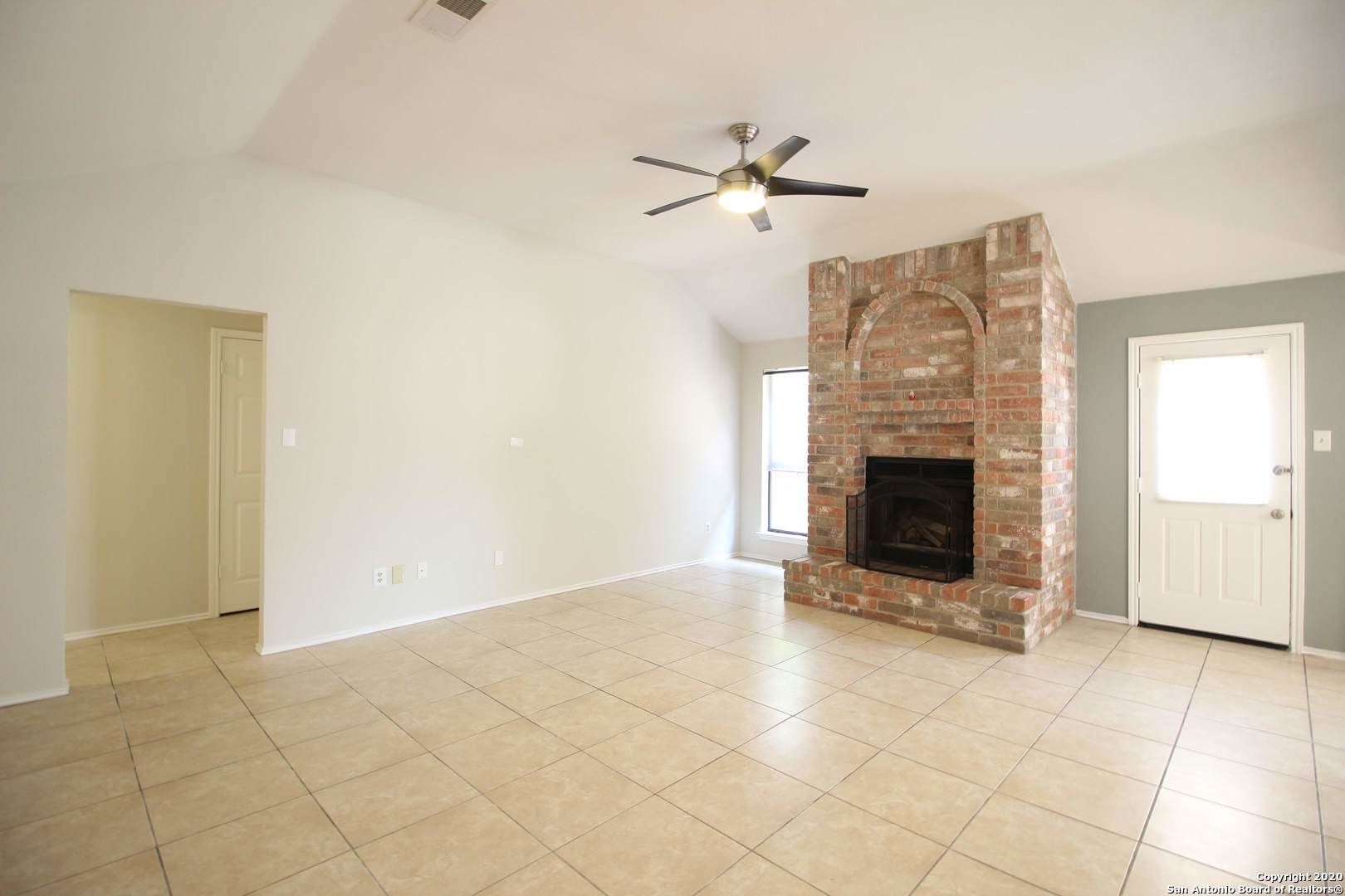 Charming single-story home located in the highly desirable Stone Oak area! This 3-bedroom, 2-bath residence features beautiful vaulted ceilings that create an open and airy living space, perfect for both relaxing and entertaining. The kitchen is equipped with sleek stainless steel appliances, adding a modern touch and functionality to the heart of the home. The inviting living area includes a cozy fireplace, perfect for gathering and unwinding. Step outside to a private fenced-in backyard, ideal for outdoor enjoyment, pets, or entertaining. Additional features include a spacious 2-car garage and a convenient location with quick access to Loop 1604 and Highway 281, making commuting and dining just minutes away.