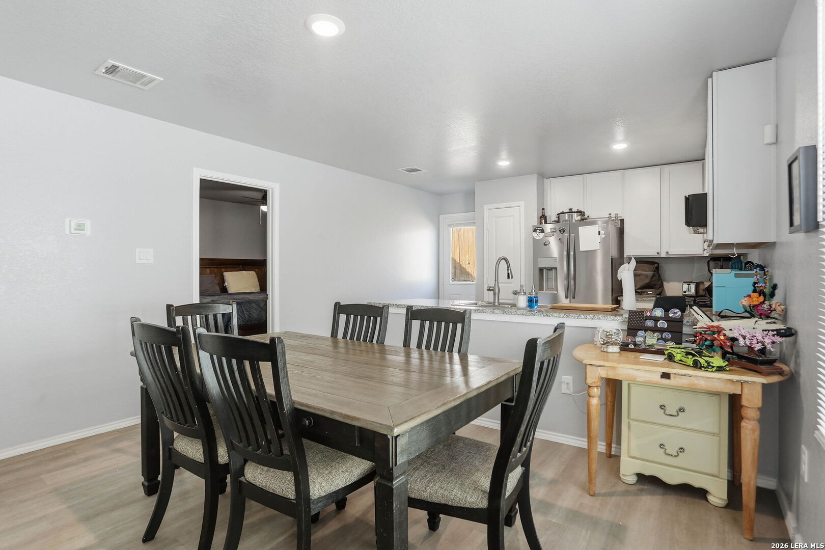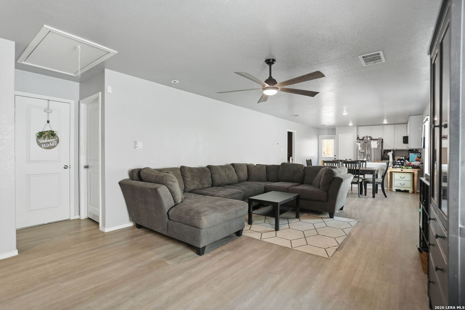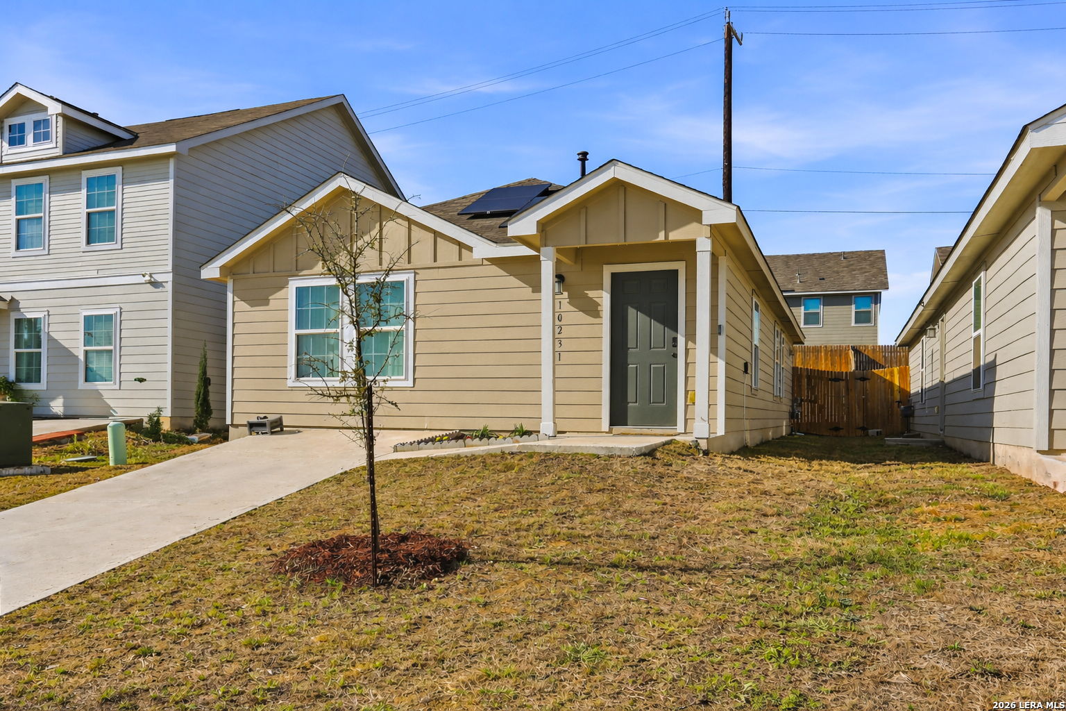 Welcome to this well-maintained home located in the growing southwest area of San Antonio! This property features laminate flooring throughout, offering a clean, modern look and easy maintenance for everyday living. Solar panels add energy efficiency and help reduce utility costs, making this home both comfortable and cost effective.The kitchen provides ample cabinet space and flows seamlessly into the living and dining areas, making it ideal for entertaining. The primary suite offers a comfortable retreat with a private bath and spacious closet. Secondary bedrooms are generously sized and provide flexibility for guests, a home office. Conveniently located near major highways, shopping, dining, and Lackland AFB, this home offers both comfort and accessibility.
