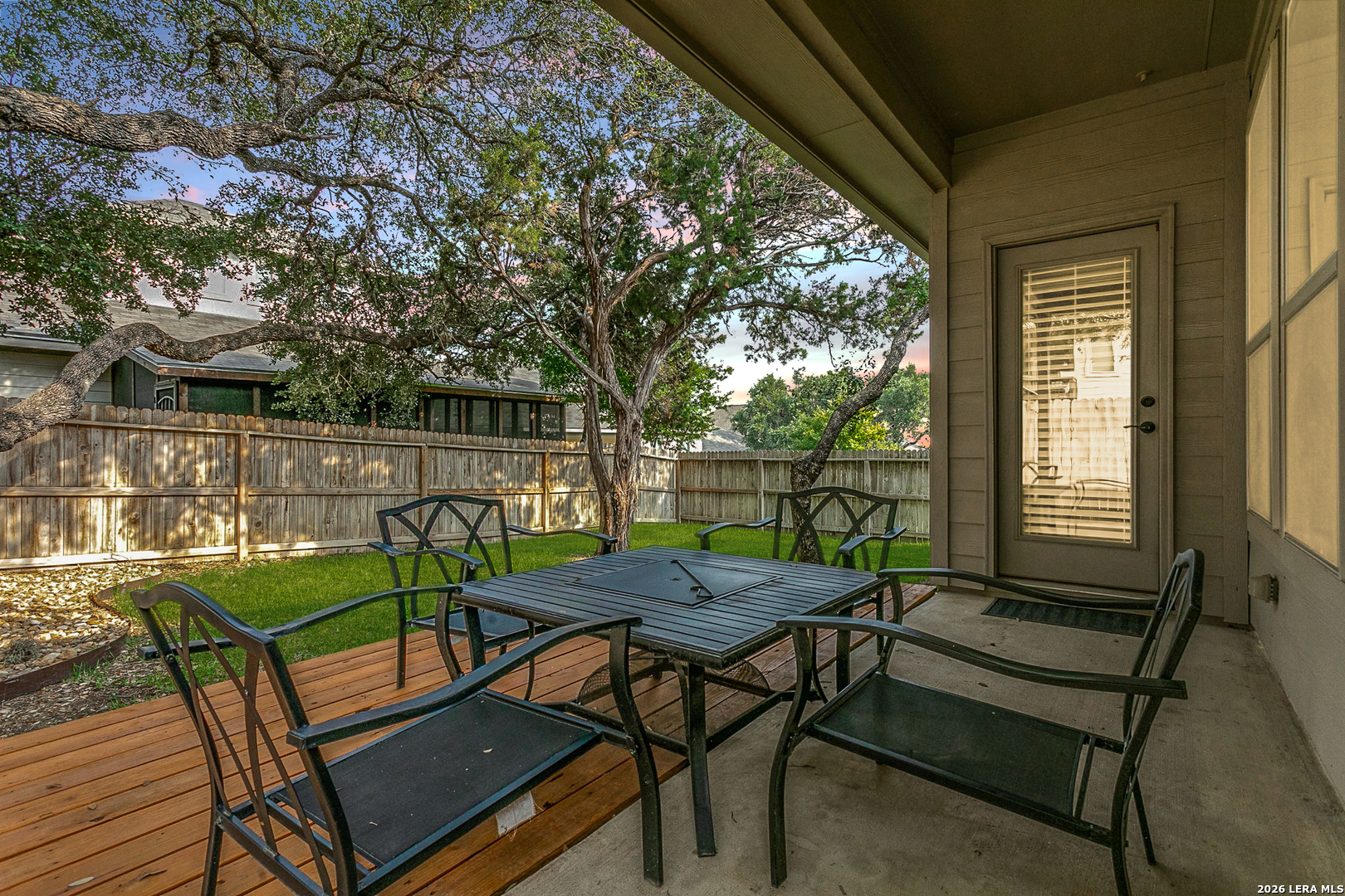 Better than new construction, this meticulously maintained San Antonio, TX home for sale offers a thoughtfully designed layout with 3 bedrooms, 2 bathrooms, and absolutely no carpet throughout. Combining quality craftsmanship with modern upgrades, this move-in-ready home in San Antonio delivers comfort, style, and functionality in every detail. The open concept design creates seamless flow between the kitchen, living, and dining areas, ideal for both everyday living and entertaining. The chef-inspired kitchen features granite countertops, a gas range, built in oven and microwave, stainless steel appliances, a large island with a breakfast bar, and a water filtration system. Clean lines and generous counter space make this open concept home in San Antonio as practical as it is beautiful. Privately situated, the split primary suite offers a serene retreat. Double doors lead into a spa-like bathroom complete with a frameless glass shower, separate garden tub, double vanity, private water closet, and a custom built-in walk-in closet designed for optimal organization. The secondary bedrooms are well-sized and versatile, perfect for a variety of lifestyle needs. Additional upgrades enhance both convenience and efficiency, including a whole-home water softener system, gutters, and a sprinkler system for easy lawn maintenance. Step outside to a spacious covered patio and deck area ideal for outdoor gatherings or quiet evenings. Mature trees and a privacy fence create a peaceful backyard setting with natural beauty and seclusion. Situated in a highly desirable northwest area, this Northwest San Antonio home offers easy access to shopping, dining, and entertainment while maintaining a tranquil neighborhood feel. This home with granite countertops in San Antonio truly stands out for its condition, upgrades, and exceptional layout.