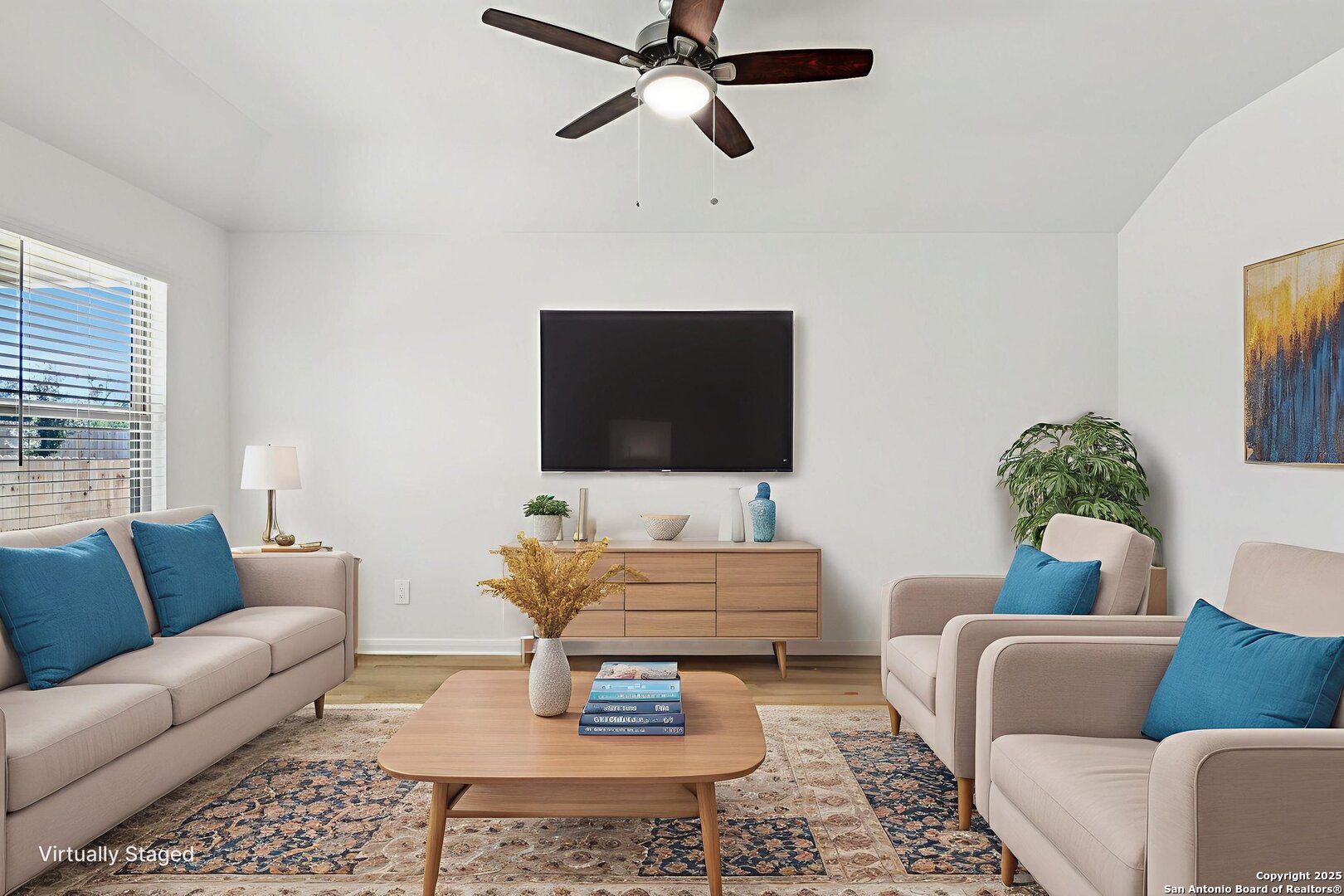Brand new, energy-efficient home available by Sep 2025! The Callaghan's welcoming covered entry and foyer open to a stunning living room and gourmet kitchen. The walk-in pantry can accommodate everyone's favorite snacks. The fourth bedroom is perfect for guests, or even a study or hobby room. Starting in the $300s, Royal Crest is a beautiful, gas community in Northeast San Antonio, offering easy access to I-35 and Loop 1604. Just 3.5 miles from Randolph AFB and 7.4 miles from Fort Sam Houston, it's the perfect location for service members. Enjoy Move-In Ready homes featuring brand-new Whirlpool appliances, including a refrigerator, range, microwave, dishwasher, and washer/dryer, plus whole-home blinds-all included! Each of our homes is built with innovative, energy-efficient features designed to help you enjoy more savings, better health, real comfort and peace of mind.