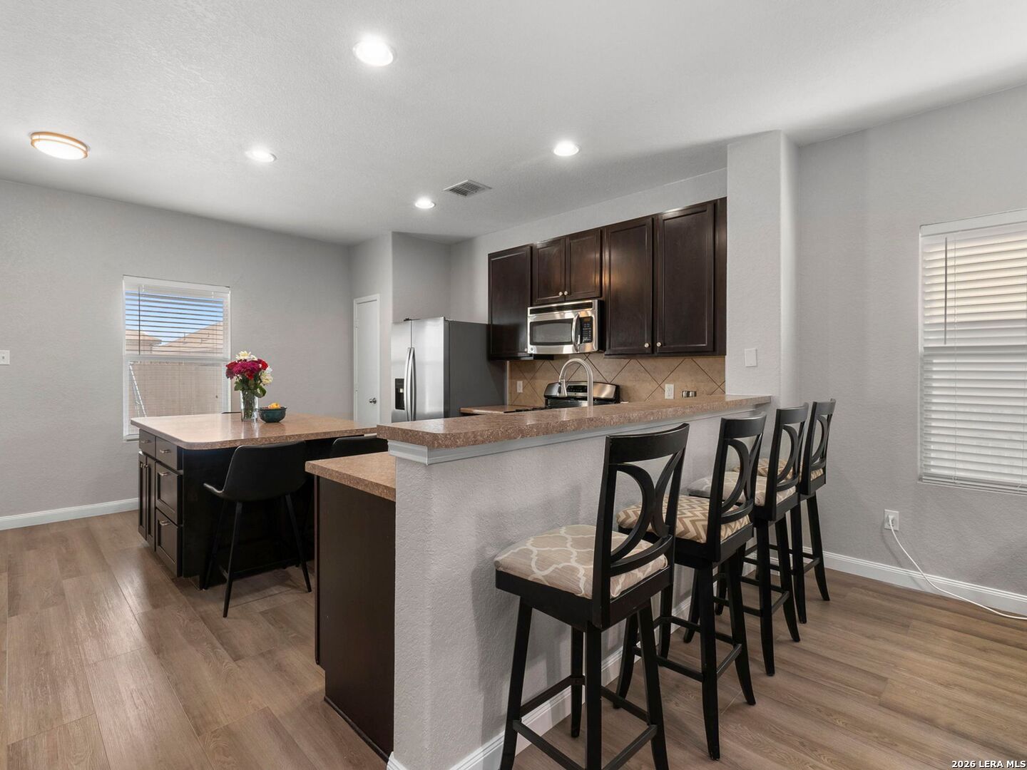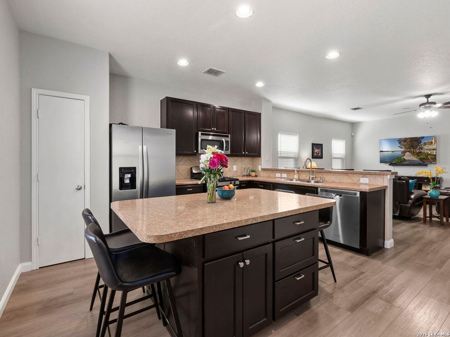 Located in the gated community of Laura Heights on the far Northwest side, this quaint home delivers an open, practical layout designed for everyday living. The spacious kitchen features an island and breakfast bar that flows seamlessly into the living and dining areas - perfect for gathering, entertaining, or simply staying connected. The split-bedroom design offers privacy for the primary suite, while two additional bedrooms provide flexibility for guests or a home office. A nicely sized backyard adds space to relax, play, or entertain outdoors. Residents enjoy access to an impressive amenity center with a community pool, playground, GaGa Court, and soccer field - giving this home not just comfort, but community!