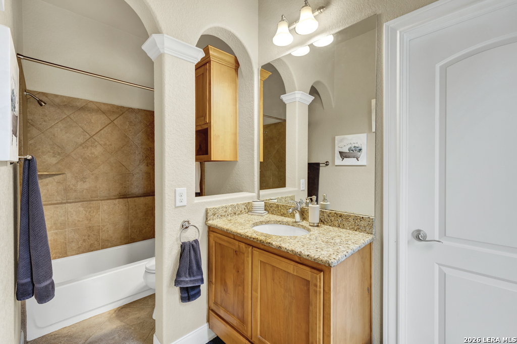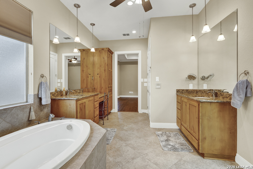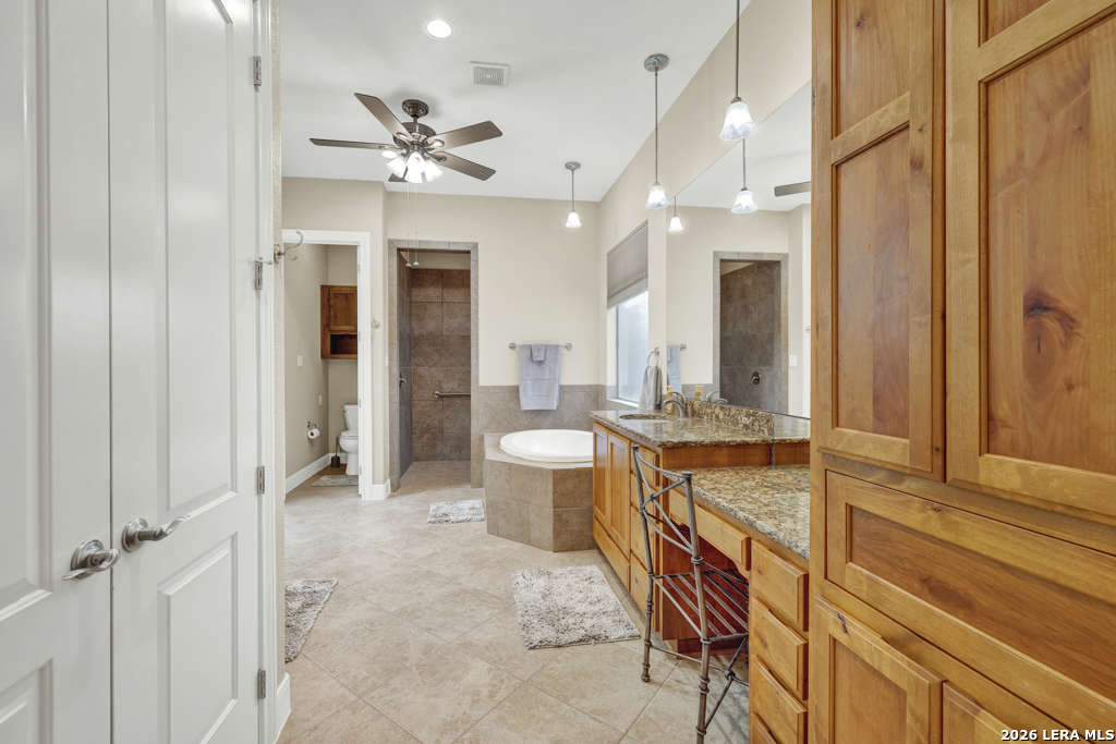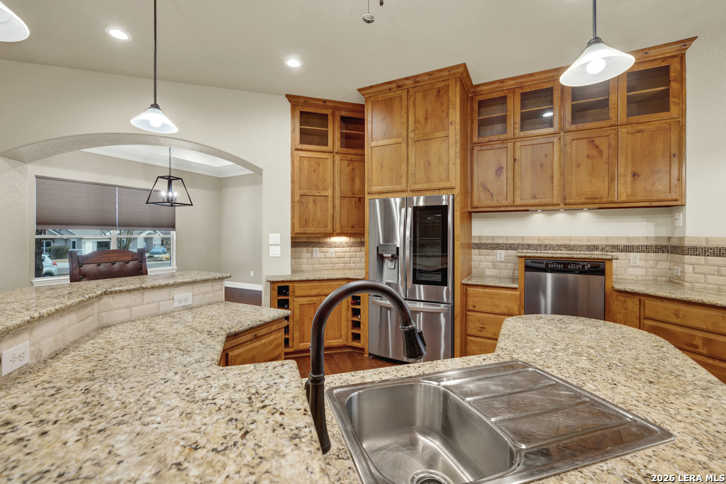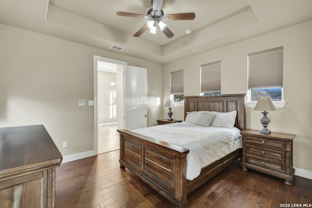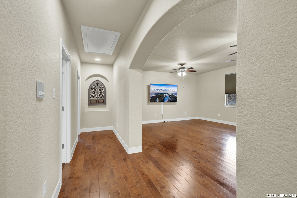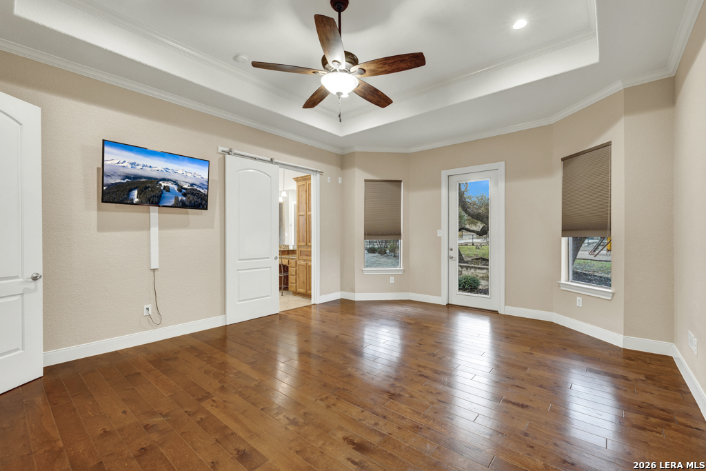 A beautifully designed custom home tucked beneath mature oak trees on a spacious 1.24-acre lot in the sought-after Rockwall Ranch community of New Braunfels. With 4,752 square feet of thoughtfully planned living space, this home offers room to grow, entertain, and relax-all in one place. Inside, the open layout showcases rich wood flooring, tile in wet areas, elegant crown molding, and a stunning floor-to-ceiling stone fireplace as the heart of the living area. The island kitchen is a true centerpiece, featuring granite countertops, stainless steel appliances, a raised dishwasher for added comfort, a prep sink, breakfast bar, and a generous 136 walk-in pantry. Whether you're hosting guests or making quiet family meals, this space is ready to handle it all. The primary suite is a peaceful retreat with a beach-entry shower, dual vanities, and a spacious walk-in closet. With eight total bedrooms-including a separate guest suite on the main floor-and four flexible bonus rooms, you'll have plenty of options for offices, hobby spaces, a gym, or additional bedrooms to fit your lifestyle. Upstairs, enjoy a large 3017 game room with a wet bar-perfect for movie nights, games, or entertaining. The oversized four-car pass-through garage includes its own air-conditioned half bath, which makes for a perfect future pool bath or workshop restroom. Recent upgrades include a new roof in 2022, fresh landscaping, and exterior paint. A central vacuum system, covered patio for outdoor gatherings, and appliances that convey round out this home's long list of thoughtful features. Located in the Comal County School District, this home blends comfort, space, and flexibility in one of the area's most desirable neighborhoods.