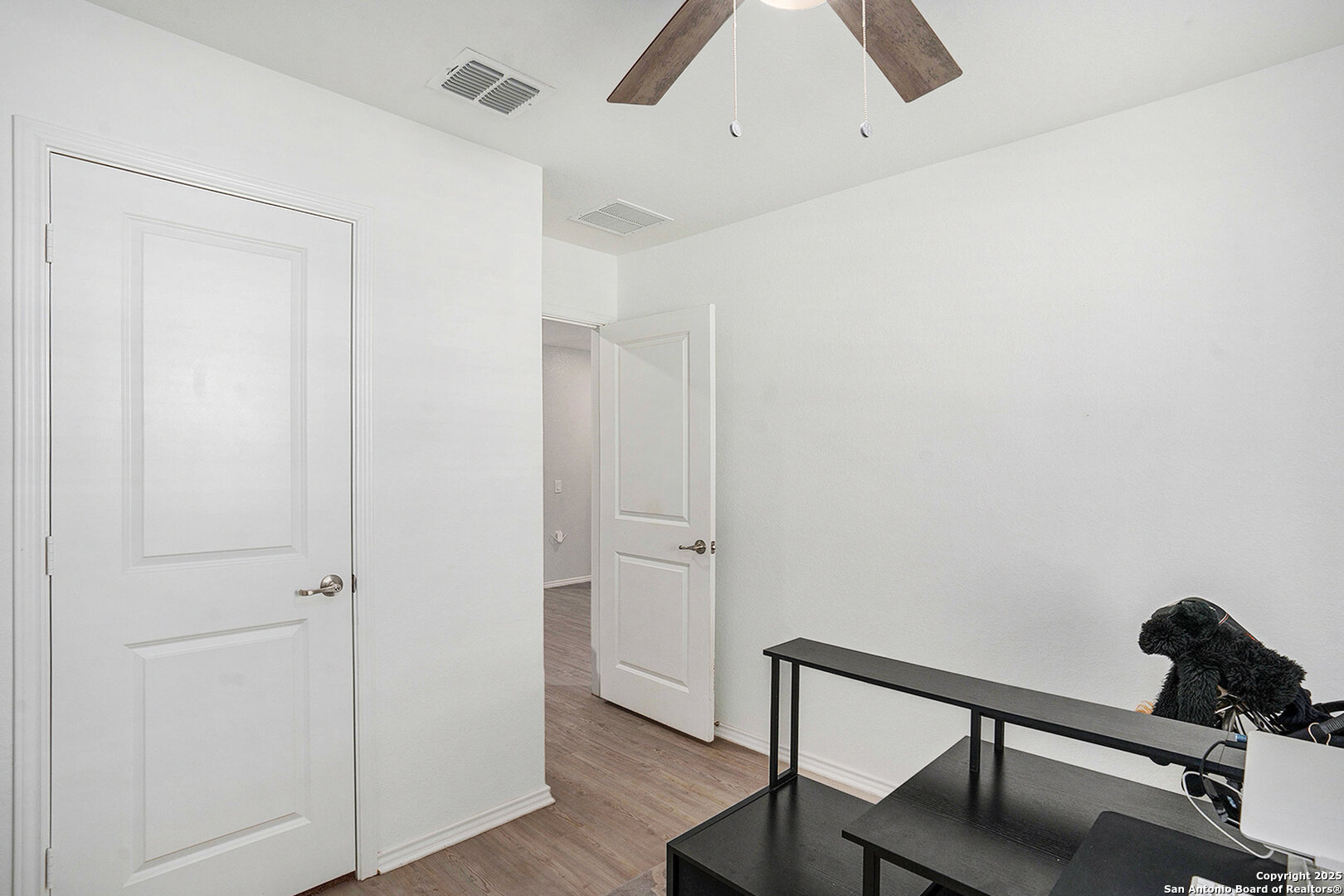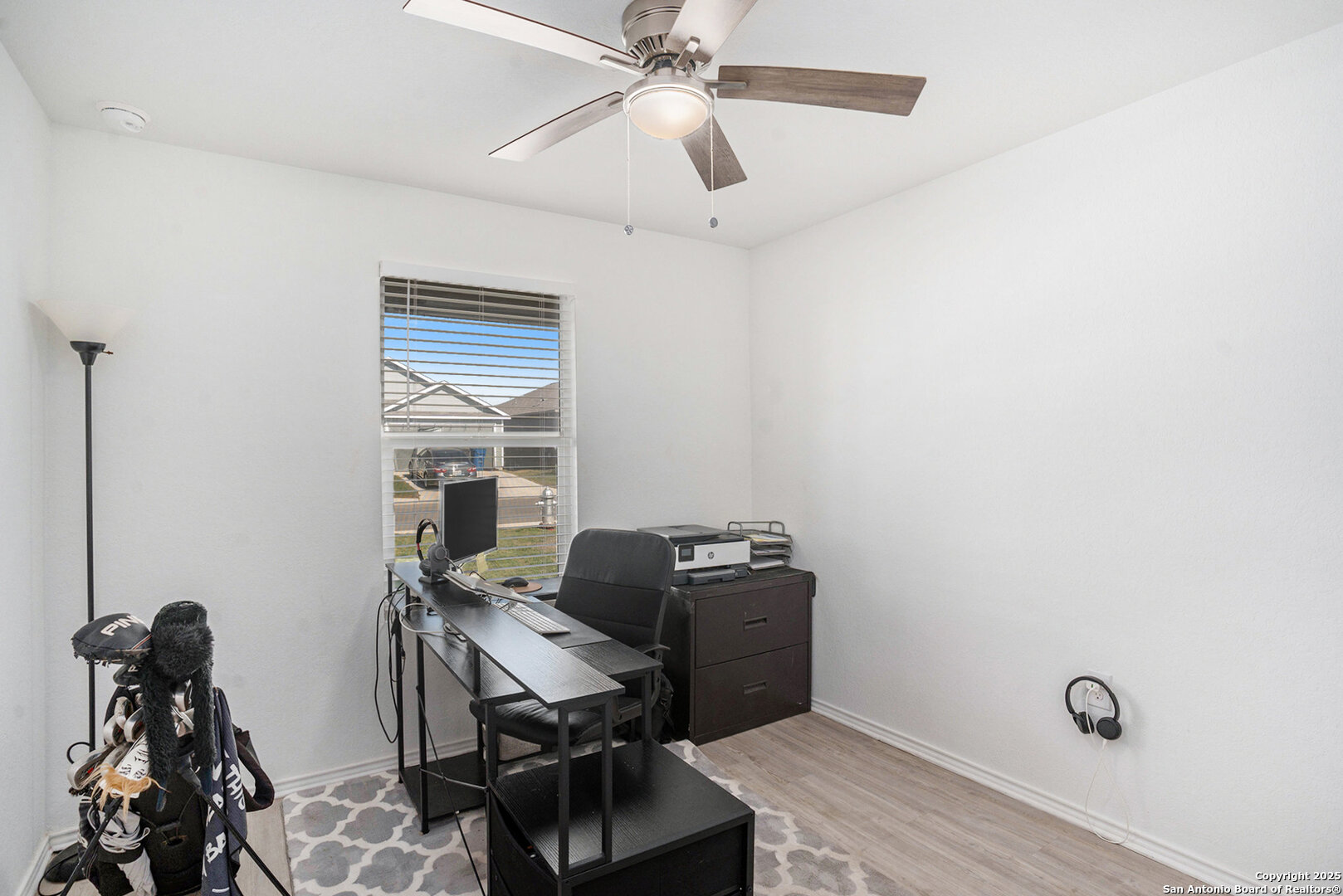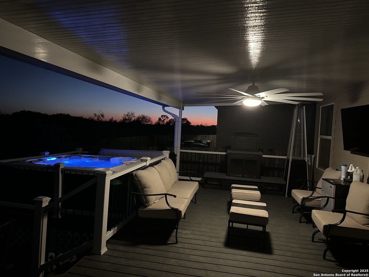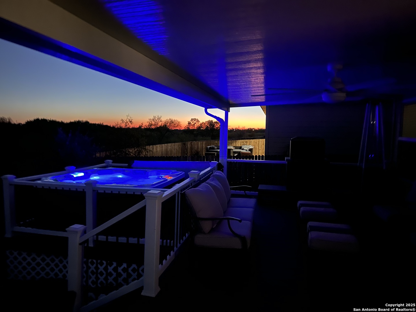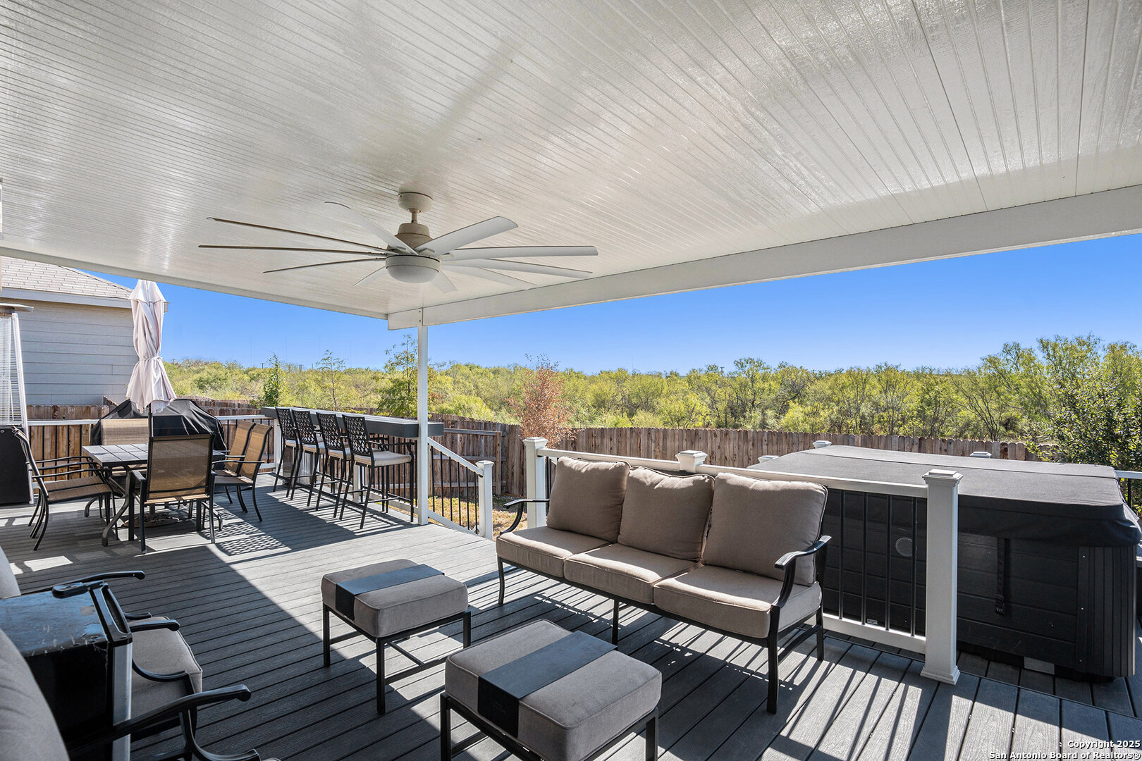 A step above new construction! Like-new, move-in-ready home in the golf course community of Mission Del Lago with over $50K in warrantied upgrades! This single-story offers 4 bedrooms, 2 baths, and a 2-car garage. The open layout connects the living, dining, and kitchen areas with updated quartz countertops, backsplash, custom coffee bar, upgraded sink and faucet, and a refrigerator that conveys. The dining area features a custom buffet with USB outlets, and the living room includes a ceiling fan and dog door. The owner's suite includes extra cabinetry and an updated showerhead, while the secondary bedrooms offer vinyl flooring and a built-in Murphy bed. Step outside to a spacious composite deck with cover and built-in bar, overlooking a serene greenbelt with access to the Mitchell Lake Greenway Trail. Enjoy the brand new hot tub for year-round relaxation. This home is truly move-in ready, conveniently located near Mission Del Lago Golf Course, schools, shopping, and major highways.