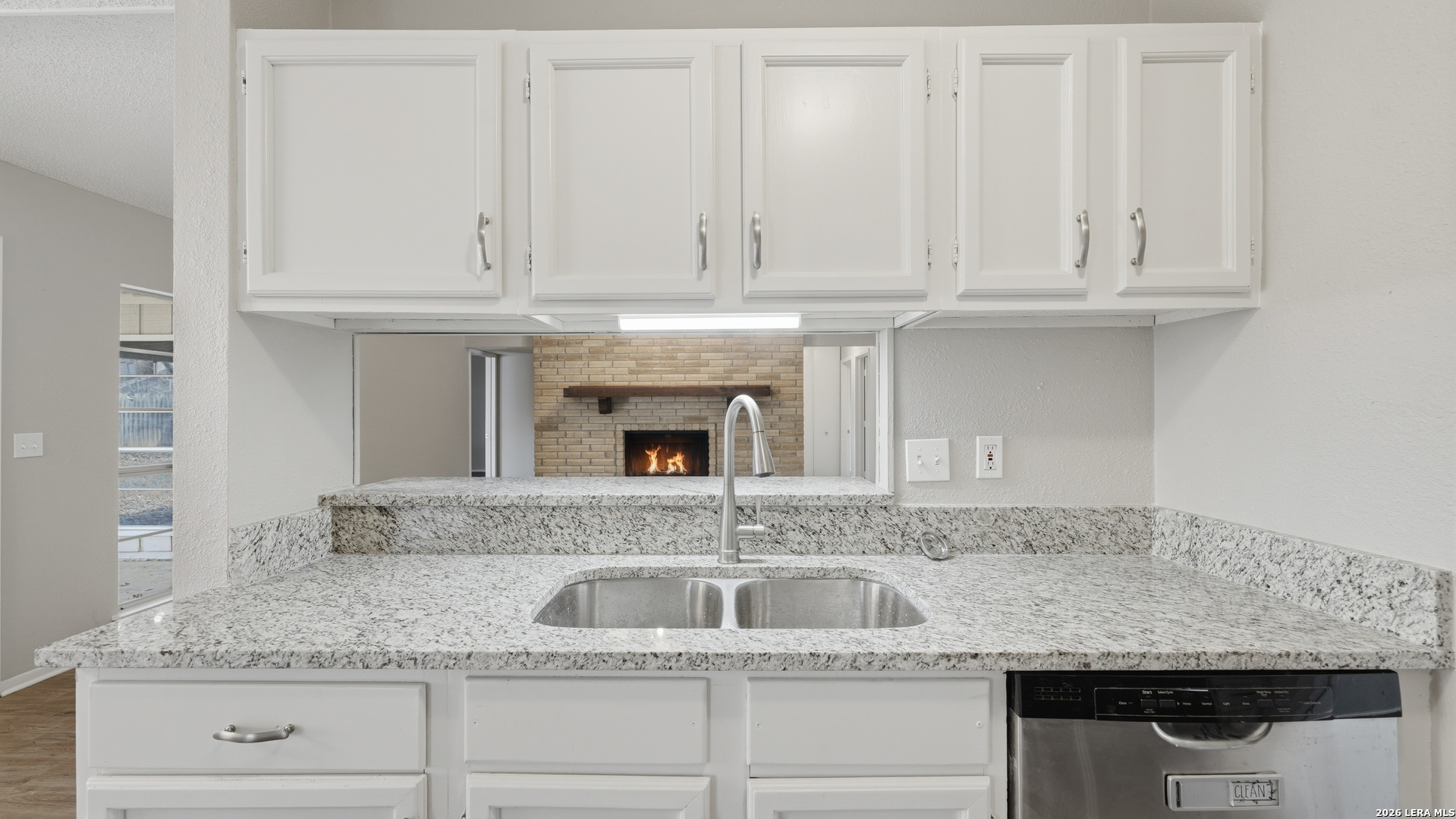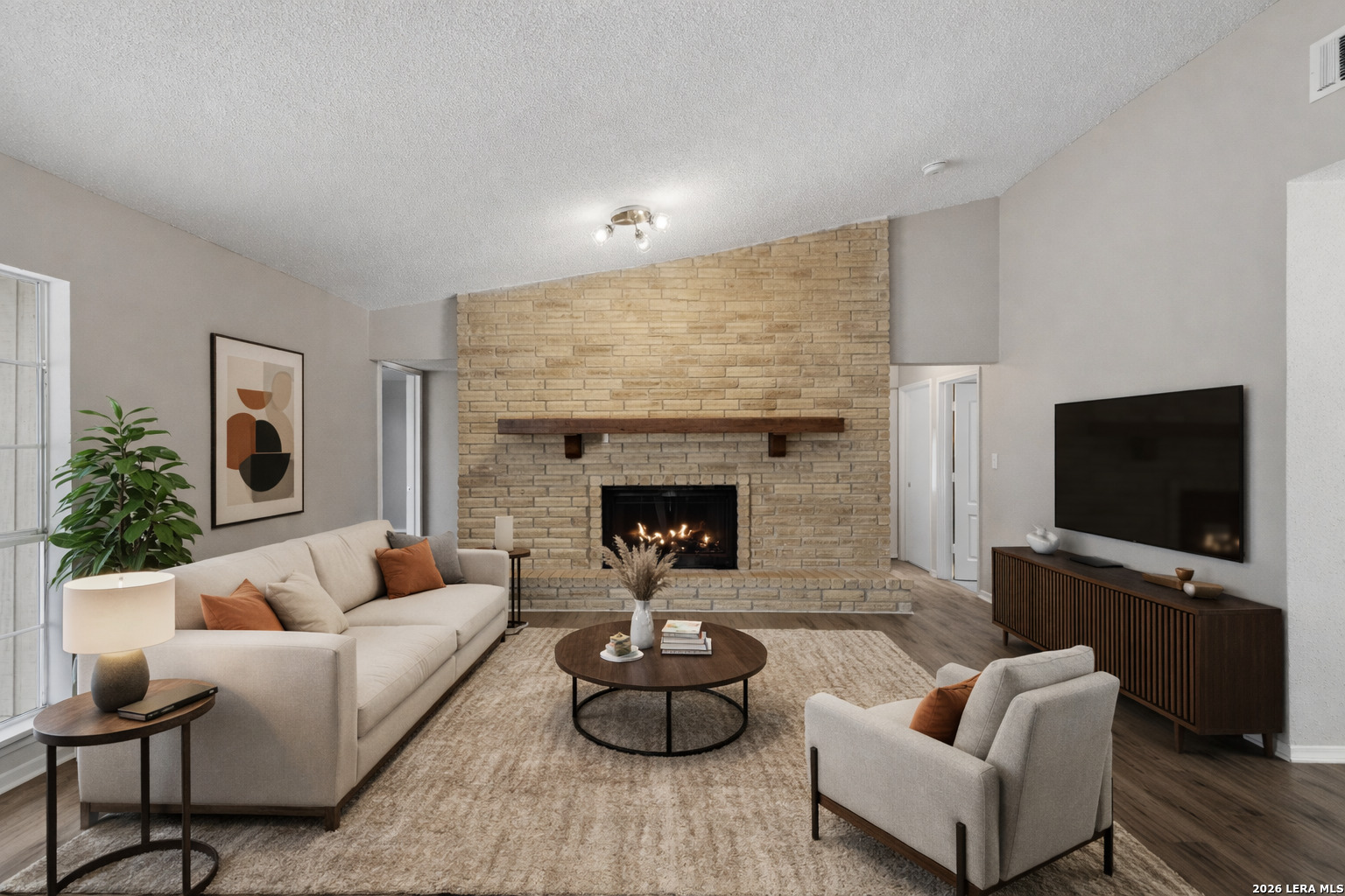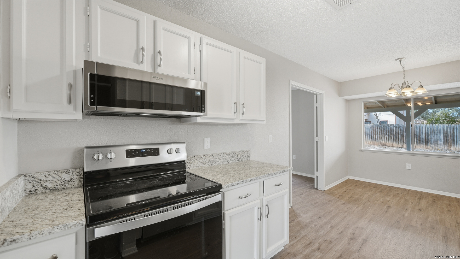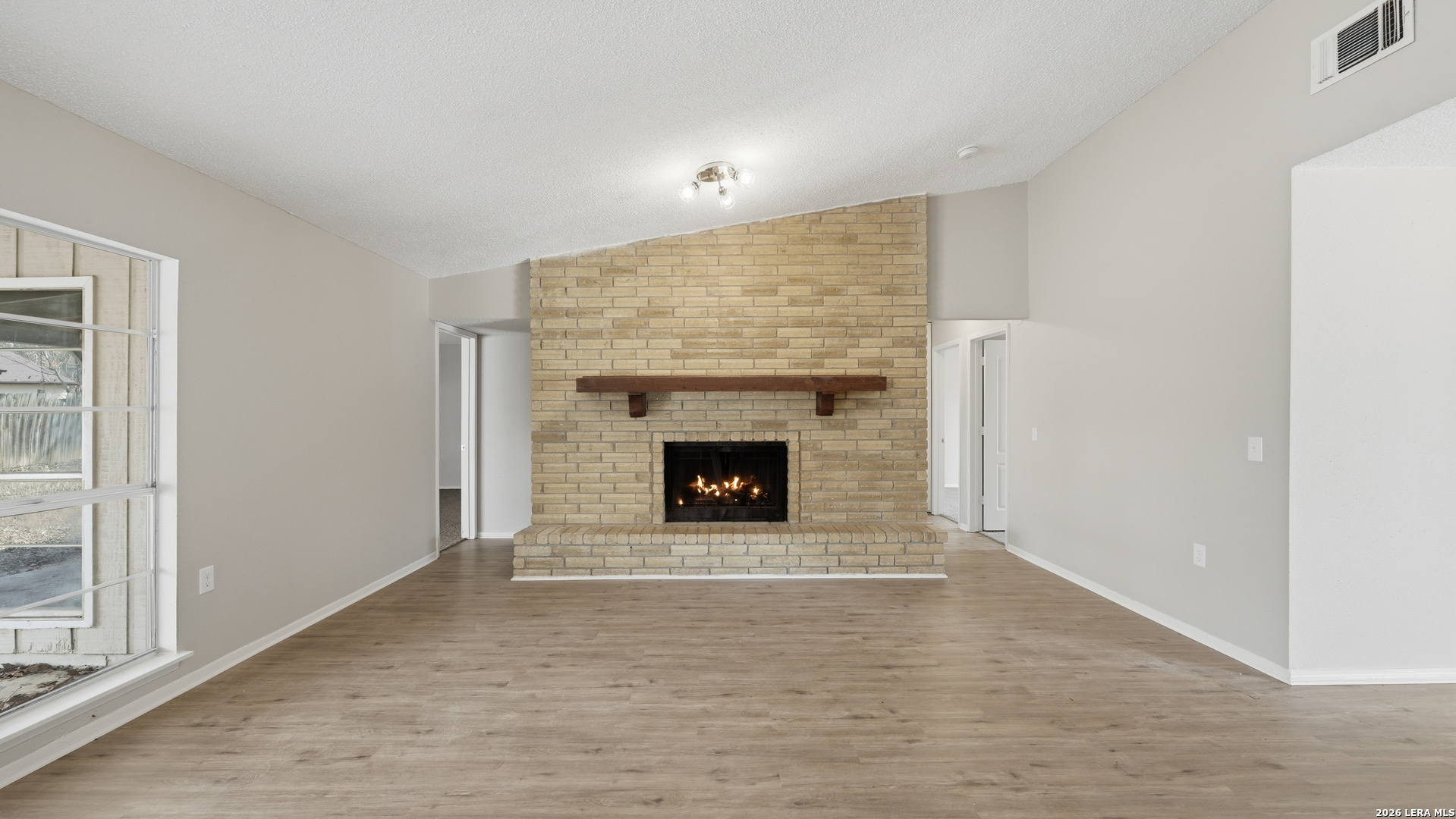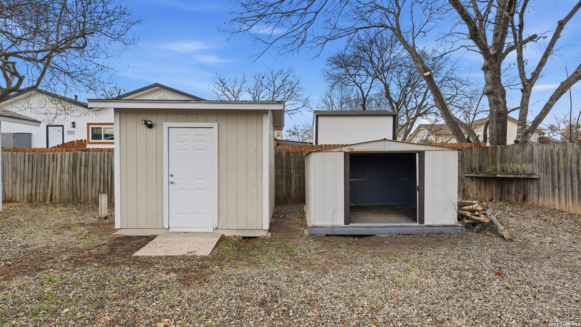 Charming one story home offering thoughtful updates and timeless character in the established Cimarron neighborhood. The inviting living area features a cozy brick fireplace and vaulted ceilings that enhance the sense of space and natural light. Fresh interior paint and recently installed floors throughout provide a clean, cohesive look. The split floor plan offers functional separation between the primary suite and secondary bedrooms. The kitchen has been updated and opens comfortably to the main living space, creating an ideal layout for everyday living and entertaining. Recent exterior paint adds to the home's curb appeal. The spacious backyard includes mature trees, a covered patio for outdoor enjoyment, and storage sheds for added convenience. Conveniently located near schools, shopping, dining, and Randolph AFB, this property offers accessibility while being tucked into a well established neighborhood.