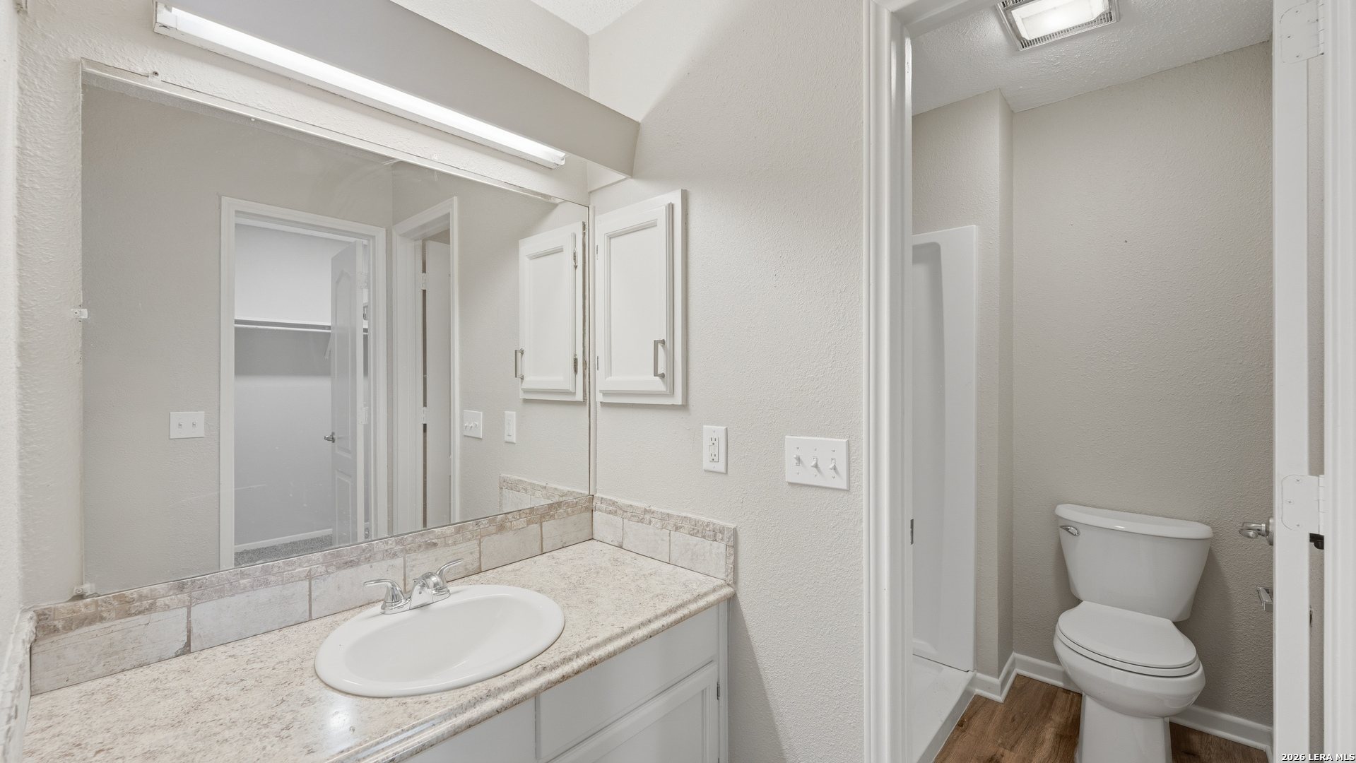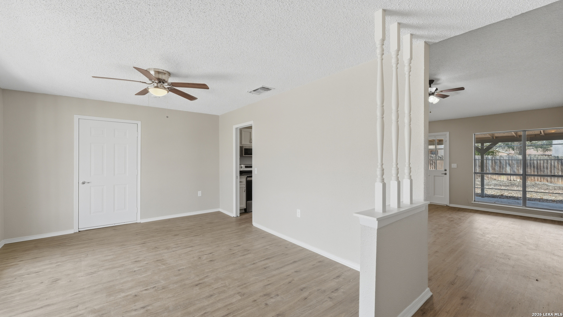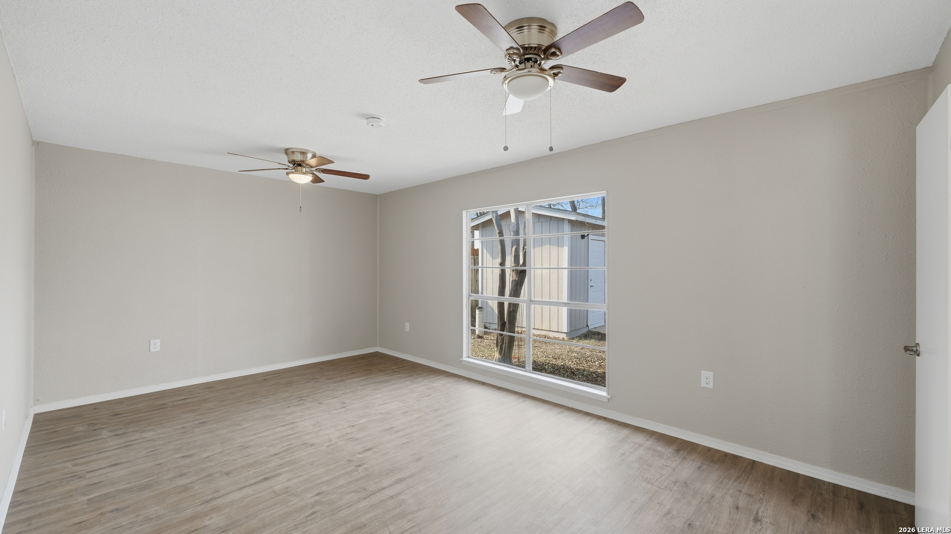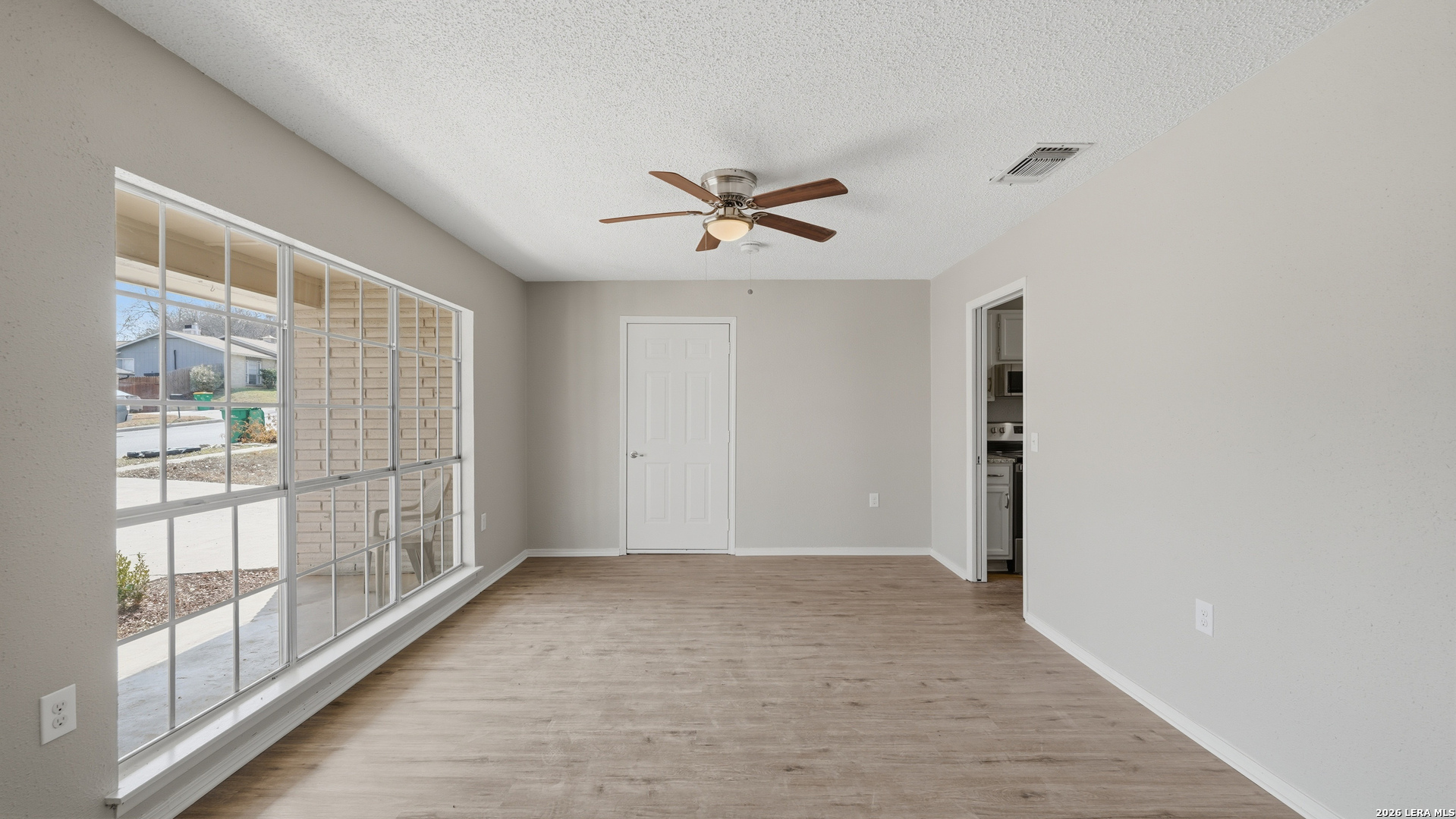 Charming one story home offering thoughtful updates and timeless character in the established Cimarron neighborhood. The inviting living area features a cozy brick fireplace and vaulted ceilings that enhance the sense of space and natural light. Fresh interior paint and recently installed floors throughout provide a clean, cohesive look. The split floor plan offers functional separation between the primary suite and secondary bedrooms. The kitchen has been updated and opens comfortably to the main living space, creating an ideal layout for everyday living and entertaining. Recent exterior paint adds to the home's curb appeal. The spacious backyard includes mature trees, a covered patio for outdoor enjoyment, and storage sheds for added convenience. Conveniently located near schools, shopping, dining, and Randolph AFB, this property offers accessibility while being tucked into a well established neighborhood.