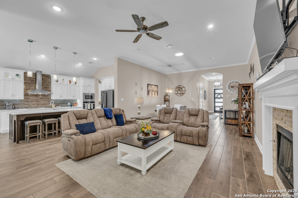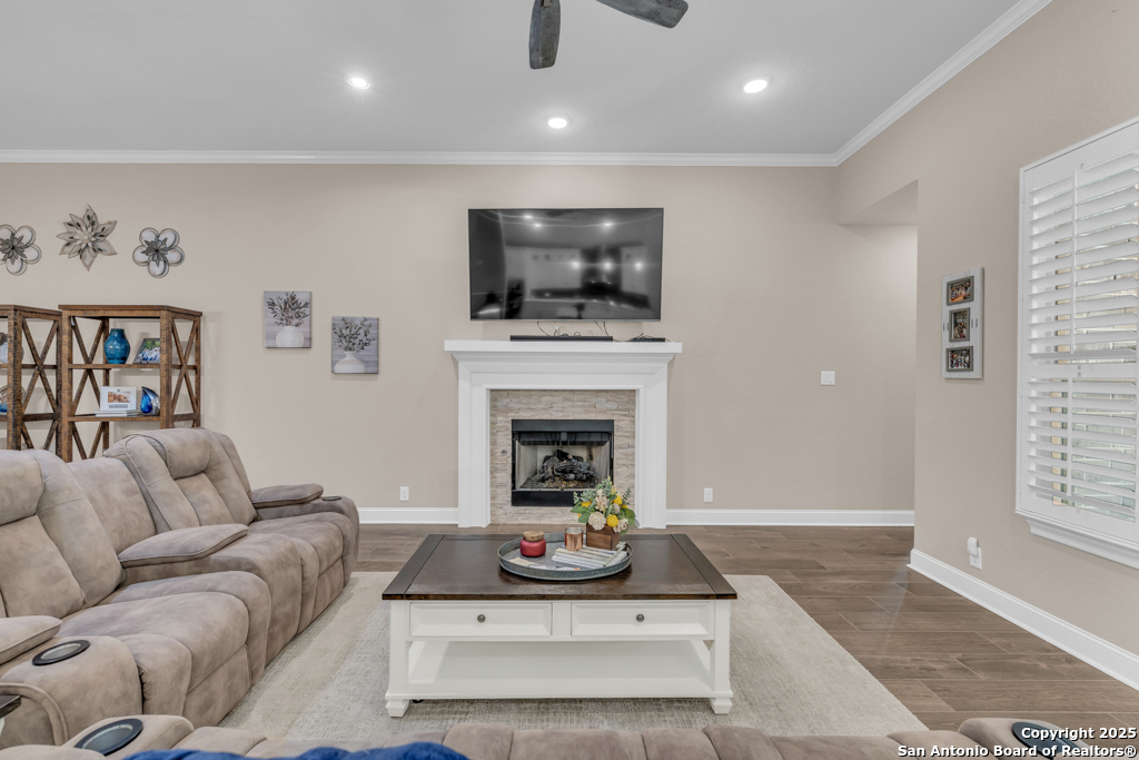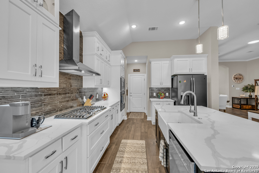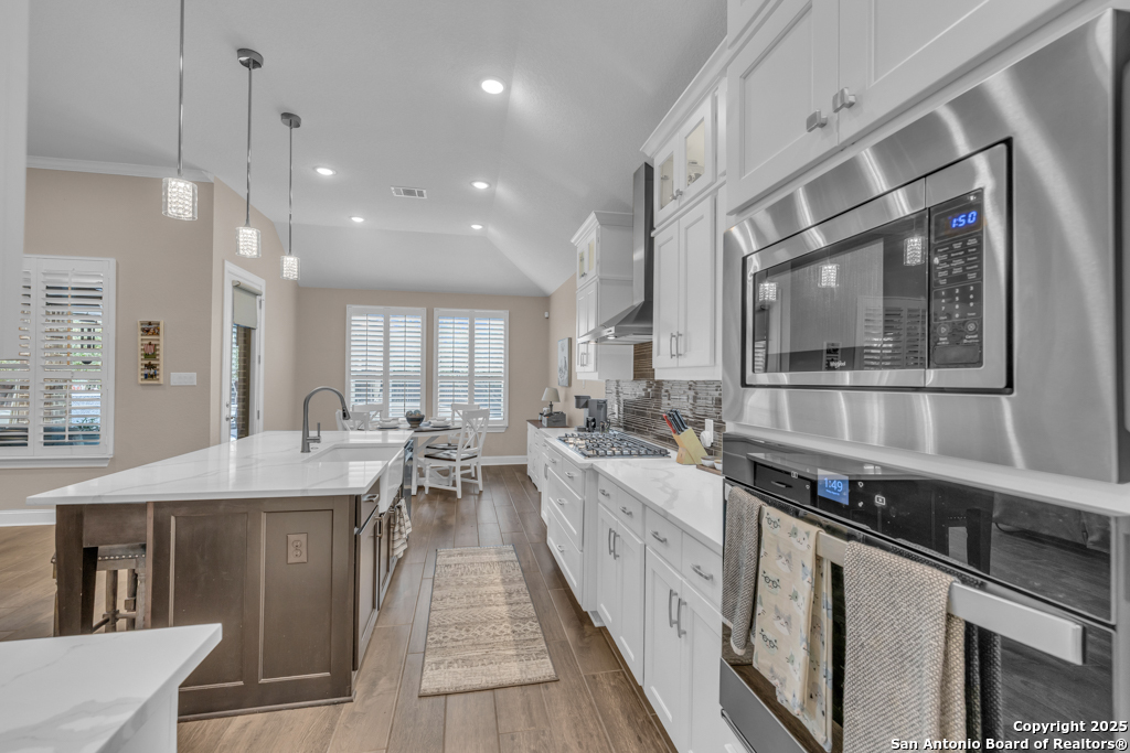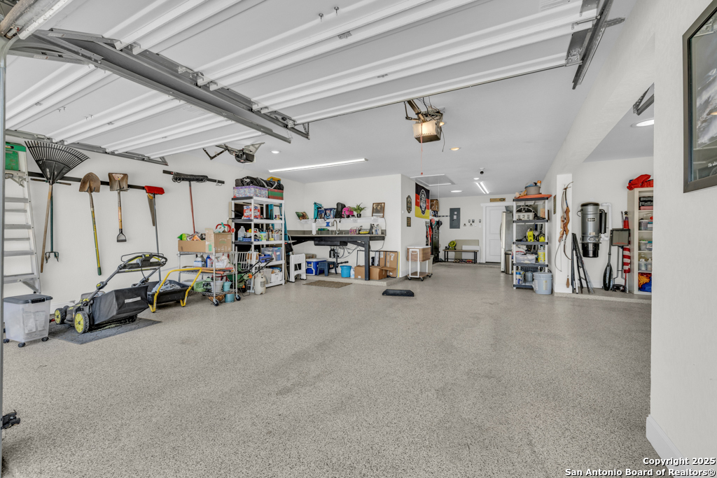 DRIVE YOUR GOLF CART TO HISTORIC GRUENE: Single story home with POOL and FOUR-CAR TANDEM GARAGE features open floor plan with wood-look tile flooring throughout (no carpet). Kitchen has quartz counter tops, tile backsplash, gas cook-top, lighted glass cabinets, Shelf Genie pull outs and a walk-in pantry. Primary bedroom is spacious with a view of the pool and a spectacular walk-in closet with built-ins. The laundry room has a deep sink, counter space and extra storage cabinets. The backyard is private with access to a greenbelt through a double gate. The extended patio has an adjustable louvered ceiling, cool coat decking and a pony wall surrounding the pool. Separately fenced dog run features artificial turf for ease of cleaning. Four solar tubes with night lights illuminate the garage and house. Equipped with central vacuum and water softener. The 4-car tandem garage has storage cubbies, and a spacious counter with sink and disposal, epoxy coated floor, 3-separate doors with openers, and attic pull-down leading to incredible floored storage space. The lot is just shy of a quarter of an acre, and has extensive drought tolerant landscaping. Exterior features full wrap gutters with leaf filters as needed, all brick and rock exterior (no stucco), and customizable Gemstone eave lighting. This home is fully loaded with all the extras. Seller is a licensed real estate Broker in Texas.