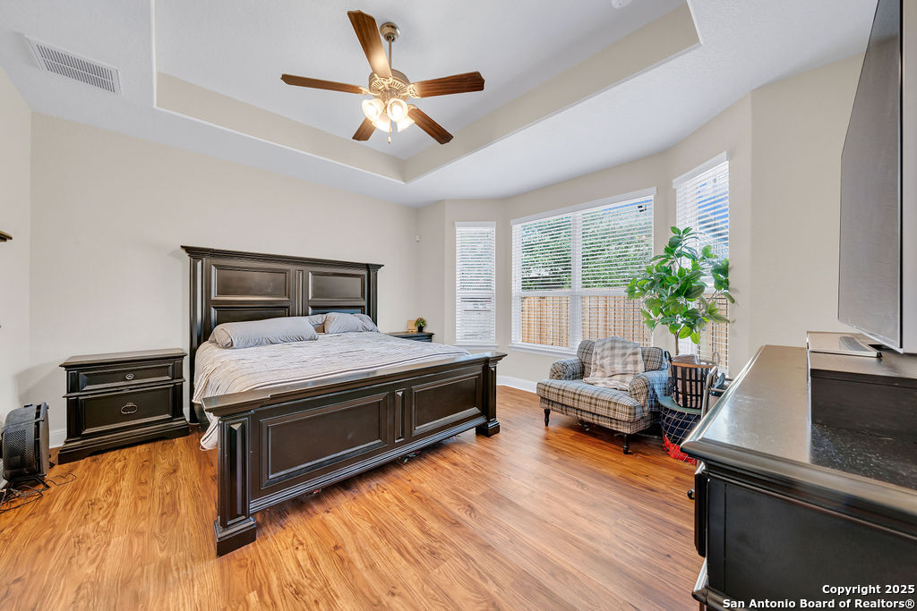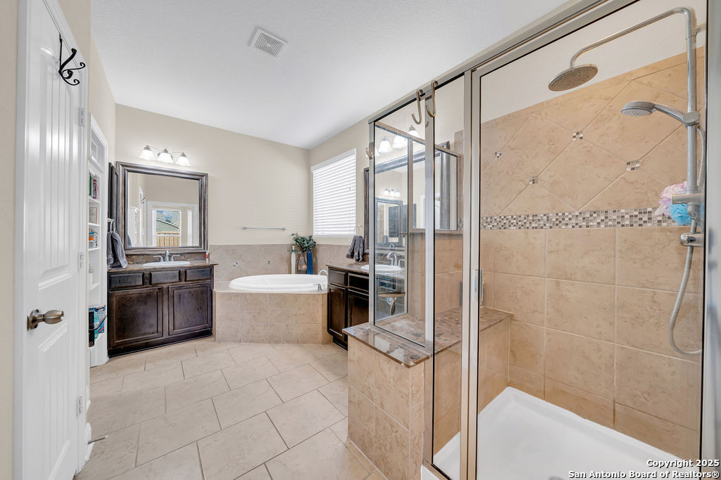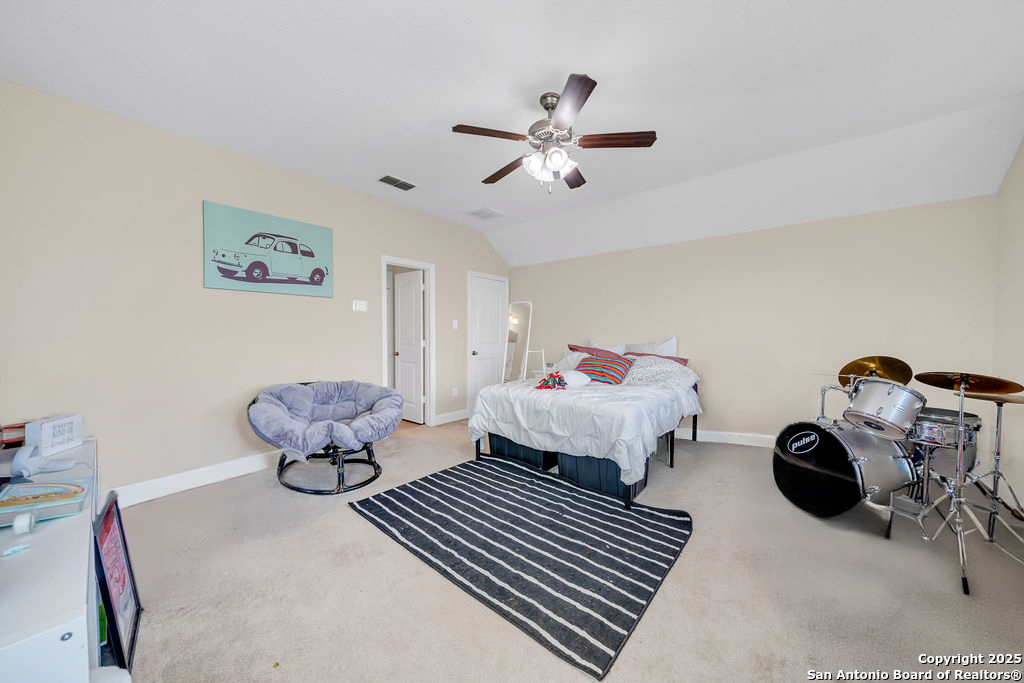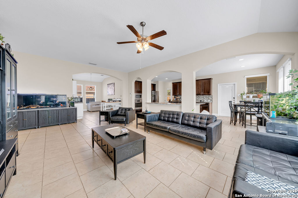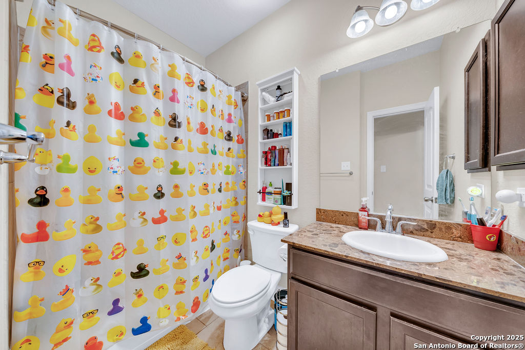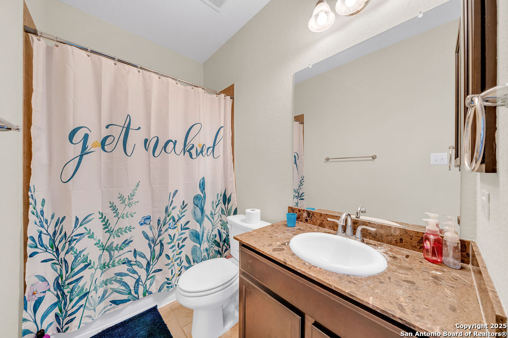 Welcome to your dream home in the sought-after Buffalo Crossing neighborhood! This beautifully maintained 4-bedroom, 3-bathroom residence features a spacious open floor plan with soaring high ceilings, a grand entryway, and abundant natural light streaming through expansive energy-efficient windows. The chef's kitchen is the heart of the home, boasting upgraded granite countertops, a large breakfast bar, stainless steel appliances, and a generous pantry-perfect for all your cooking and entertaining needs. Enjoy multiple dining areas, ideal for hosting family gatherings or dinner parties. The luxurious primary suite is a private retreat with a spa-like bathroom, providing the ultimate space to unwind. Designed for flexibility, this single-story layout also offers a bonus room or 4th bedroom with a full bath upstairs-perfect as a guest suite, home office, or media room. Step outside to enjoy outdoor living on your covered porch overlooking a lush backyard with a sprinkler system for low-maintenance landscaping. Located in a prime location near Randolph Air Force Base, this home offers an easy commute and quick access to shopping, dining, and top-rated schools.