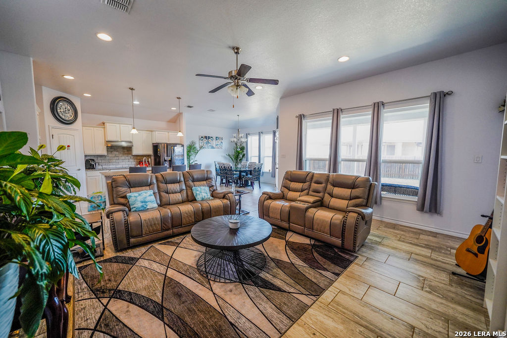 This stunning 4-bedroom, 3-bathroom retreat offers over 2,200 sq. ft. of thoughtfully designed living space, perfectly situated just steps from one of the area's premier golf courses. Imagine waking up to manicured greens and enjoying 18 holes of relaxation right in your backyard. Inside, the open-concept layout and soaring high ceilings create an airy, expansive feel-perfect for entertaining. The home features four oversized bedrooms, ensuring comfort for the whole family, and a massive living area that flows seamlessly into the kitchen. Complete with all appliances, an oversized garage, and a sprawling backyard, this home offers the perfect blend of luxury and everyday convenience. Refrigerator, couches, tables, piano, and 4 brand new beds/ frames will convey, if wanted.