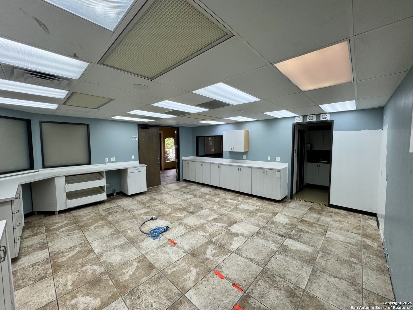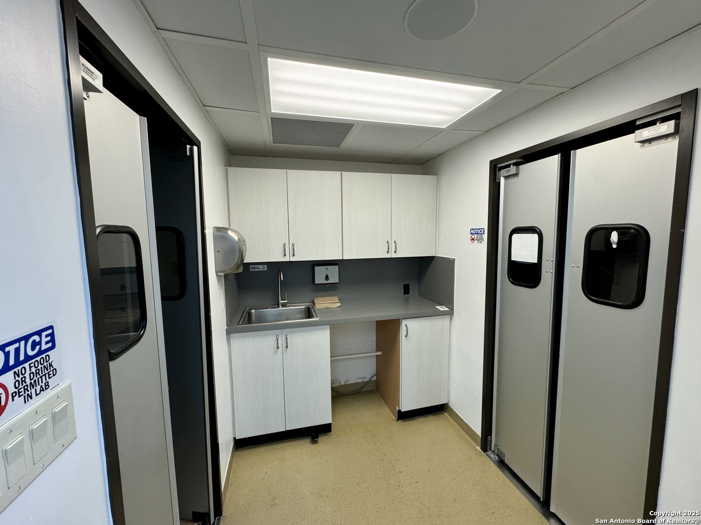 Located in the heart of Stone Oak/Sonterra, this professional medical office space offers prominent monument signage and excellent visibility at the corner of Stone Oak Parkway and Gallery Circle. The well-established building is home to multiple medical tenants, including Alamo Specialty Pharmacy and Stone Oak Urgent Care Family Practice, creating a strong healthcare presence. Suite 106, formerly utilized as a laboratory, features a large open layout with extensive built-in cabinetry, countertops, multiple sinks, and a combination of tile and slip-resistant commercial-grade vinyl flooring throughout. The suite includes two offices/rooms, a dedicated server room, and a single restroom/storage area with an exterior handwashing sink. The landlord is open to reconfiguring the suite to accommodate tenant needs, subject to terms and approvals. Ideally situated between Loop 1604 and North Central Baptist Hospital, the property offers excellent visibility and accessibility for a variety of professional users. For those requiring additional space, Suite 108 is also available and may be combined. Reserved employee parking and ample customer parking are provided. Lease Breakdown: $20.00/SF+10.60NNN ($1,633.33/Month Base Rent + $865.67NNN = $2,499.00/Month)+$250/month for CPS Electric Bill.