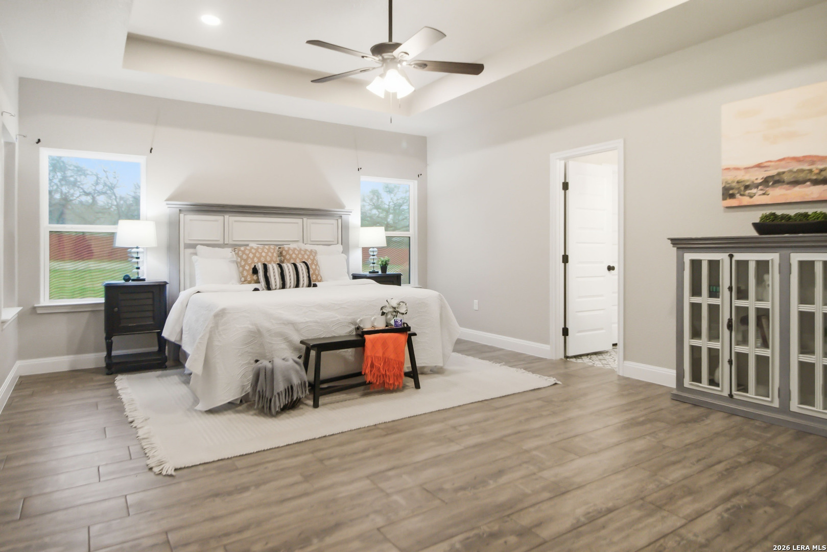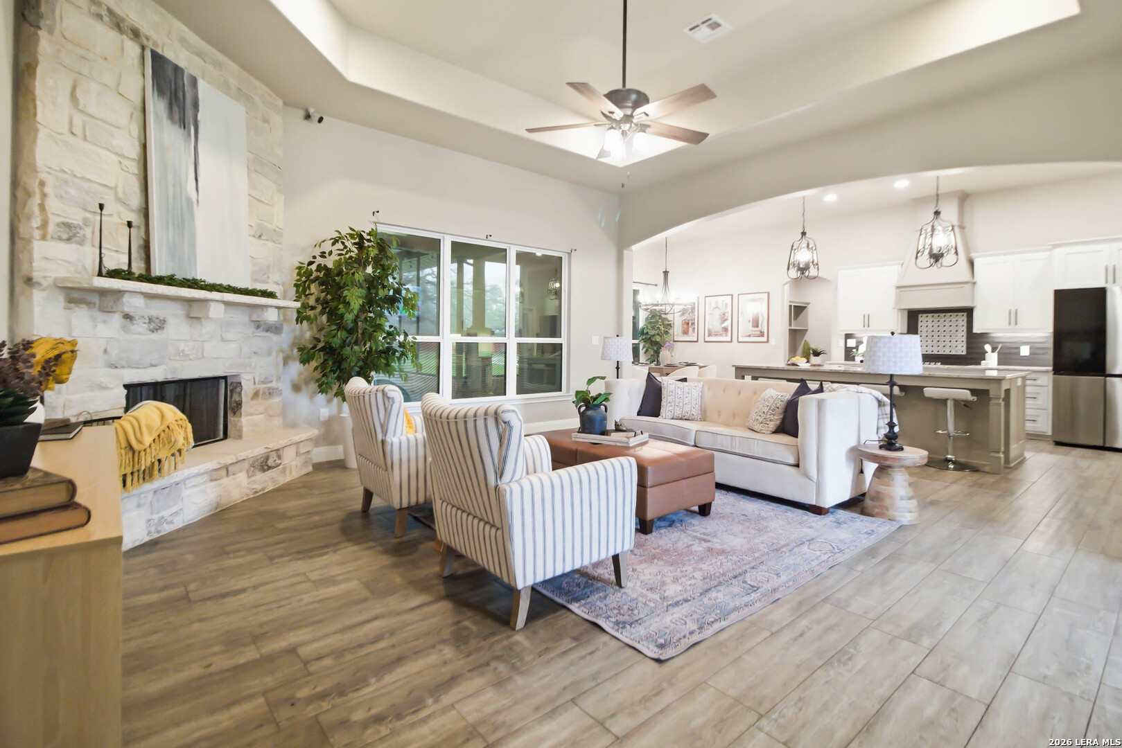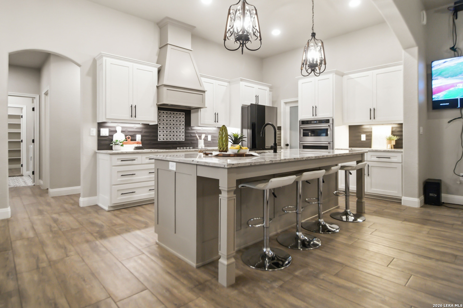 Welcome to the perfect blend of modern comfort and peaceful country living. Situated on a fully fenced 1-acre lot, this beautiful new home offers space, privacy, and the kind of sunsets you'll want to enjoy every evening from the fully screened-in back porch. Inside, the open and inviting floor plan features 4 spacious bedrooms plus a private office with elegant French doors-ideal for working from home or creating a quiet flex space. The kitchen is designed to be the heart of the home, featuring custom cabinetry, granite countertops, a large pantry, and a brand-new refrigerator. The primary suite offers a true owner's retreat with two walk-in closets and a spa-like bath complete with a soaking tub, separate shower, and double vanity. Three additional bedrooms provide flexibility for family, guests, or hobbies, with select wall-mounted TVs conveying with the home. Additional highlights include a fully wired security system with multiple exterior cameras, a Ring doorbell, and the added benefit of no city taxes. Located in La Vernia Independent School District, this property delivers the space buyers want with the features they need.