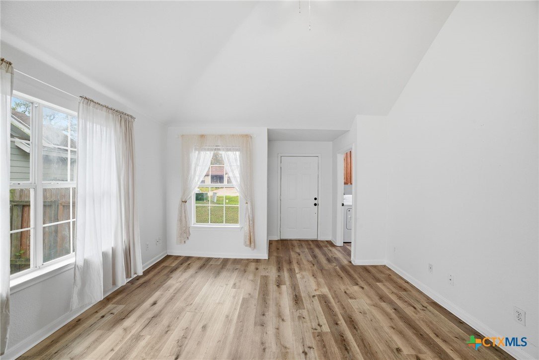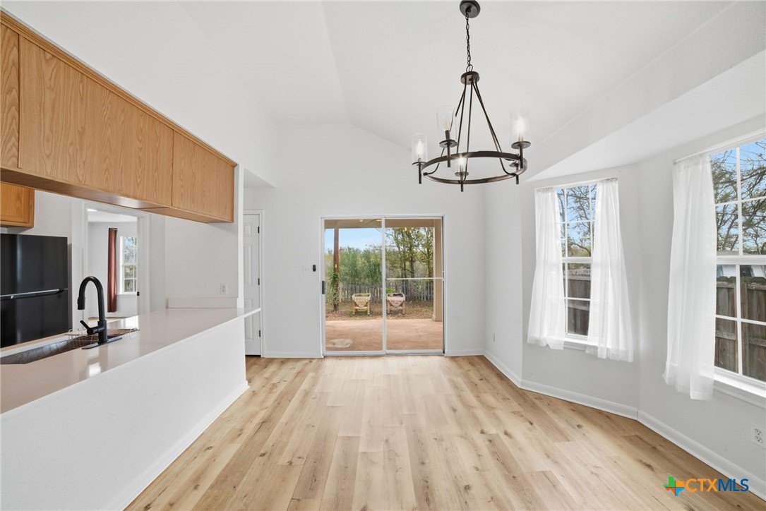 Welcome home to this bright and beautifully refreshed 3-bed, 2-bath residence tucked inside a quiet, established community with no planned construction behind the property. This home offers rare privacy with a tranquil greenbelt view, where you can enjoy gorgeous sunrises and stunning sunsets right from your windows and backyard. Inside, the home features an open and airy floor plan with vaulted ceilings, expansive windows, and abundant natural light that fills every room. The spacious living and dining areas flow effortlessly, creating an inviting environment for both everyday living and entertaining. The kitchen showcases exquisite real wood cabinetry, spacious countertops, updated lighting, and a clean, functional layout perfect for meal prep or gathering with loved ones. A conveniently located utility room off the garage entrance adds practical ease to daily routines. The private primary suite offers a quiet retreat with an en-suite bathroom, soaking tub, and ample closet space. Two additional bedrooms provide flexibility for family, guests, or a home office. Step outside into a backyard designed for peaceful living. This outdoor space includes a beautiful chicken coop, raised garden bed, garden shed, and mature lime and olive trees. With the greenbelt stretching behind the fence, the yard feels open, natural, and wonderfully private. Whether you enjoy gardening, outdoor relaxation, or watching the sky paint itself each morning and evening, this home offers a lifestyle filled with quiet comfort and natural beauty. Schedule your showing today to experience everything this home has to offer.