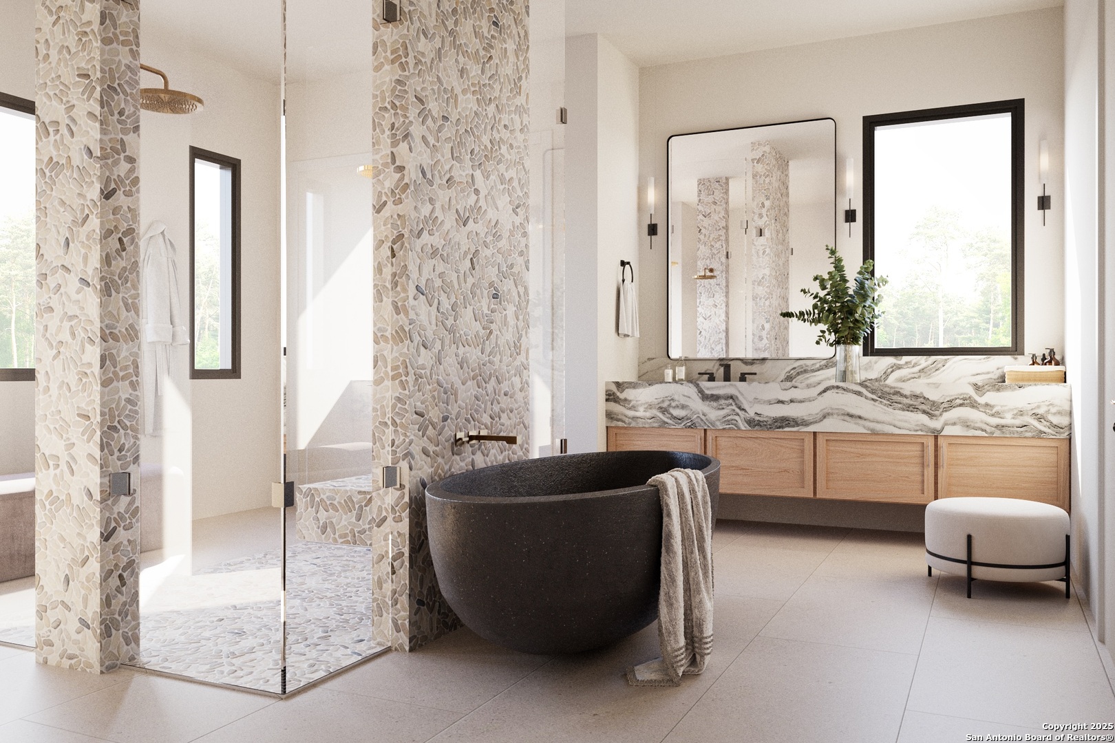 Tucked within the coveted community of Hill Country Village, this soon-to-be-completed home was crafted for those who appreciate the beauty of thoughtful design and refined living. Spanning nearly 5,000 square feet on a private one-acre lot, every inch of this home was designed with intention-from the grand, light-filled living spaces and soaring ceilings to the natural textures and materials that make it feel instantly inviting. Gather around the striking stone fireplace, radiating warm sophistication and timeless appeal. Expansive windows frame sweeping Hill Country views, filling the home with the warmth of natural light and a sense of peace that only this landscape can bring. Each of the four spacious bedrooms offers its own en-suite retreat, while a beautifully appointed half bath welcomes guests in style. Outside, a luxury pool invites you to slow down and soak up the serenity of your surroundings-perfect for summer evenings spent under the stars. Just minutes from San Antonio's best dining, shopping, and entertainment, this home offers the rare balance of elegance and ease, privacy and proximity, craftsmanship and comfort. Completion anticipated by year's end-an opportunity to make this remarkable Hill Country haven your own.