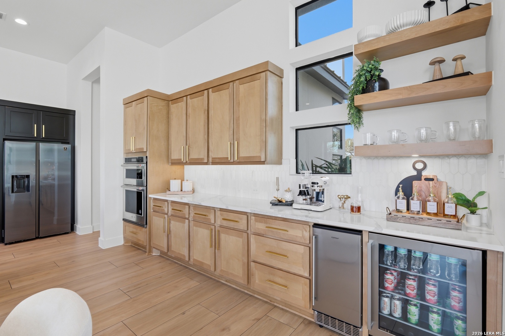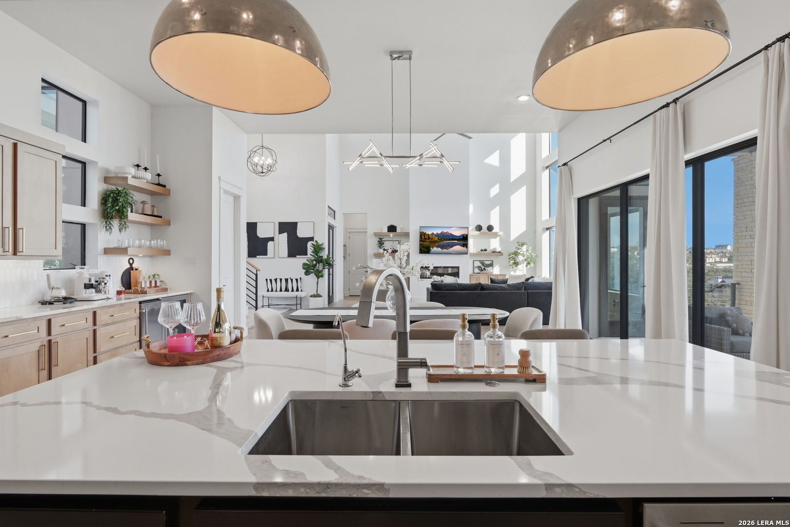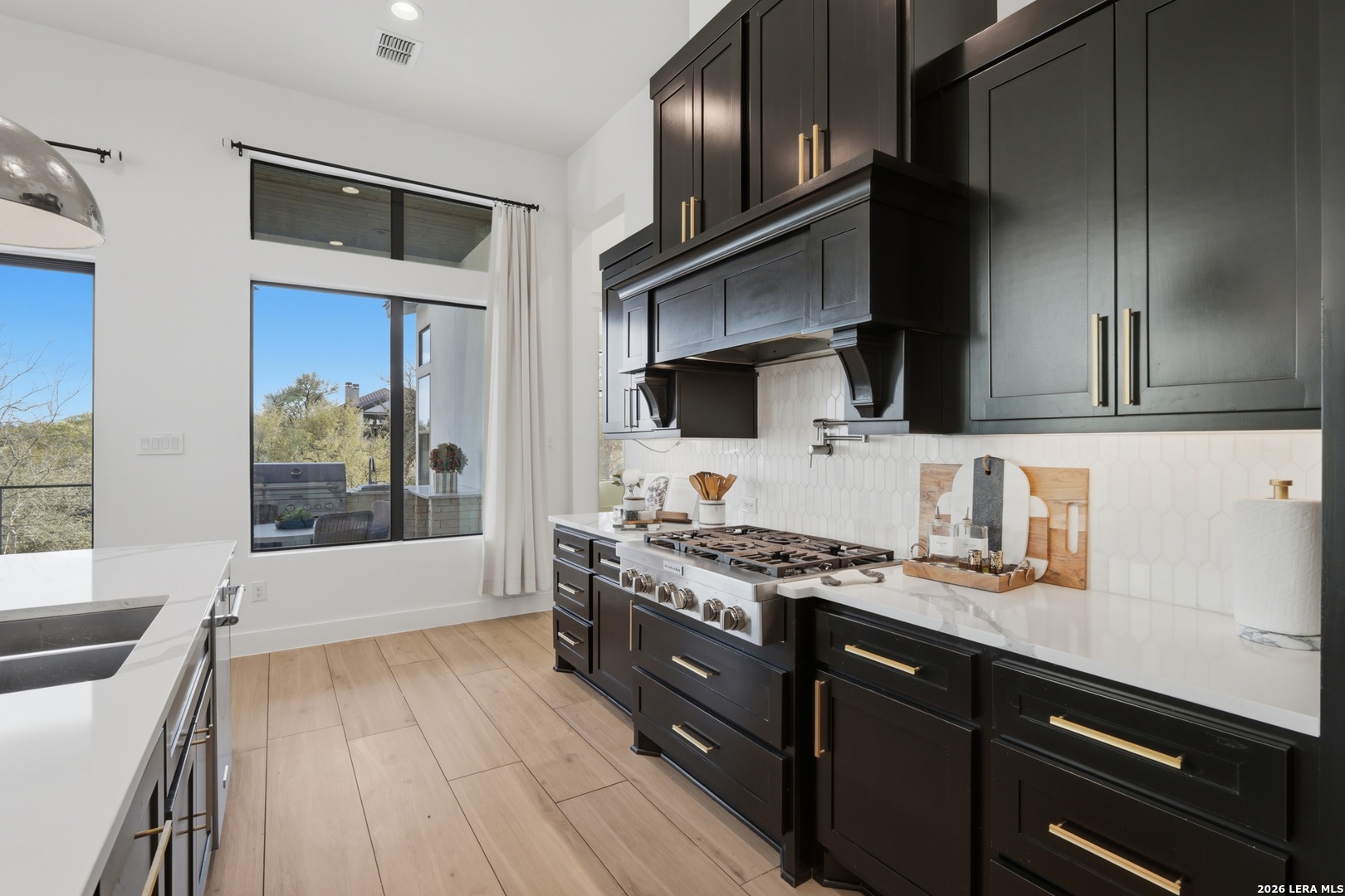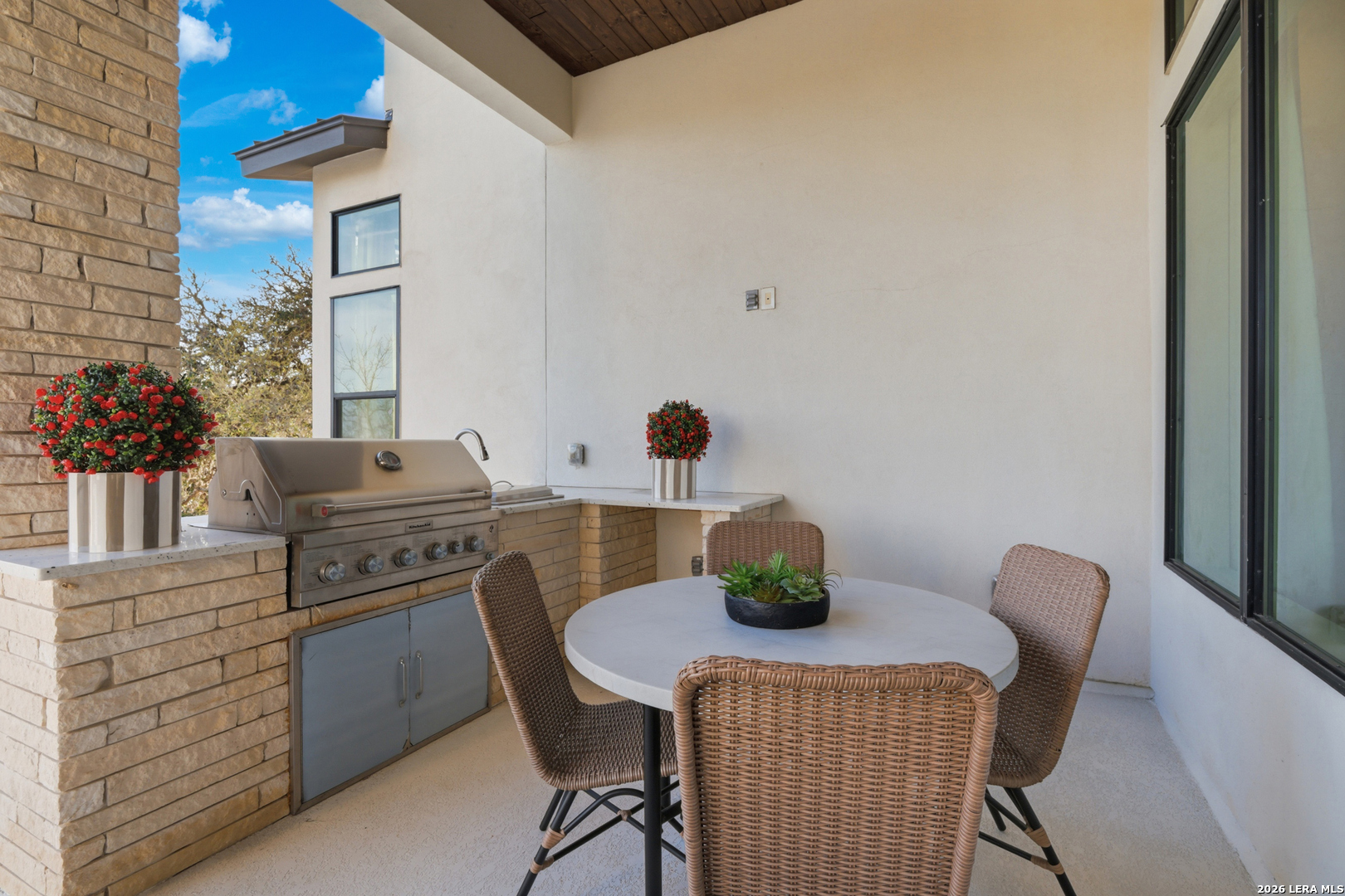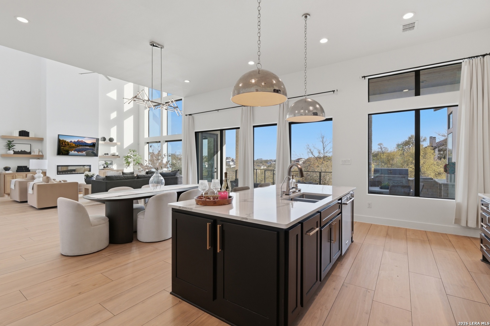 You don't upgrade into a home like this, you step into a completely different standard of living. Tucked into The Canyons at Scenic Loop on a private greenbelt lot, this contemporary home captures sweeping Hill Country views and unmatched privacy. Inside, soaring ceilings, skylights, and expansive windows fill the open layout with natural light. The chef inspired kitchen features gas cooking, custom cabinetry, and a large island that flows seamlessly into the main living space. With four bedrooms each with its own bathroom, a dedicated office, and flexible spaces including a game room and media room, the layout is built for both comfort and function. The primary suite offers a private, spa like retreat with peaceful views. Outside, enjoy true resort style living with a pool and spa overlooking the greenbelt, plus a covered patio, outdoor kitchen, and fire feature designed for relaxing or entertaining. Built by Integrity Homes with a metal roof, four sides masonry, and energy efficient features throughout, 10406 Kendall Canyon delivers a level of living that simply feels different.
