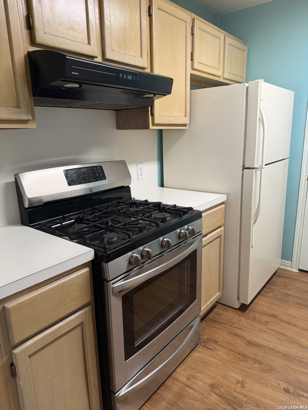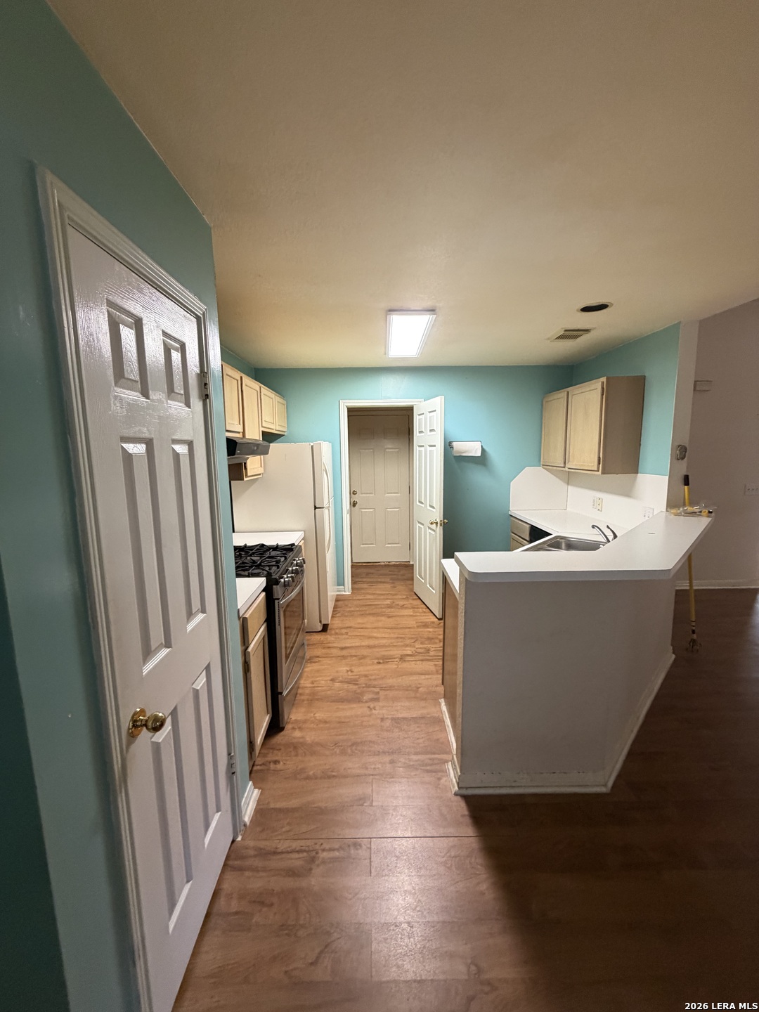 Great opportunity in Converse! This one-story home offers 3 bedrooms and 2 bathrooms with a functional layout and plenty of potential for buyers looking to update and make it their own. The spacious living area features vaulted ceilings and natural light, creating an open and inviting atmosphere. The kitchen includes ample cabinet space and a gas range, providing a great starting point for future updates. Wood-look flooring runs through the main living areas, offering a solid foundation for refreshing the space. The backyard features mature trees and a covered patio, perfect for creating your own outdoor retreat. The home also includes a two-car garage and welcoming curb appeal. Conveniently located near Randolph Air Force Base, Fort Sam Houston, and just minutes from The Forum at Olympia Parkway for shopping, dining, and entertainment. Great opportunity for buyers or investors looking to add value in an established neighborhood.