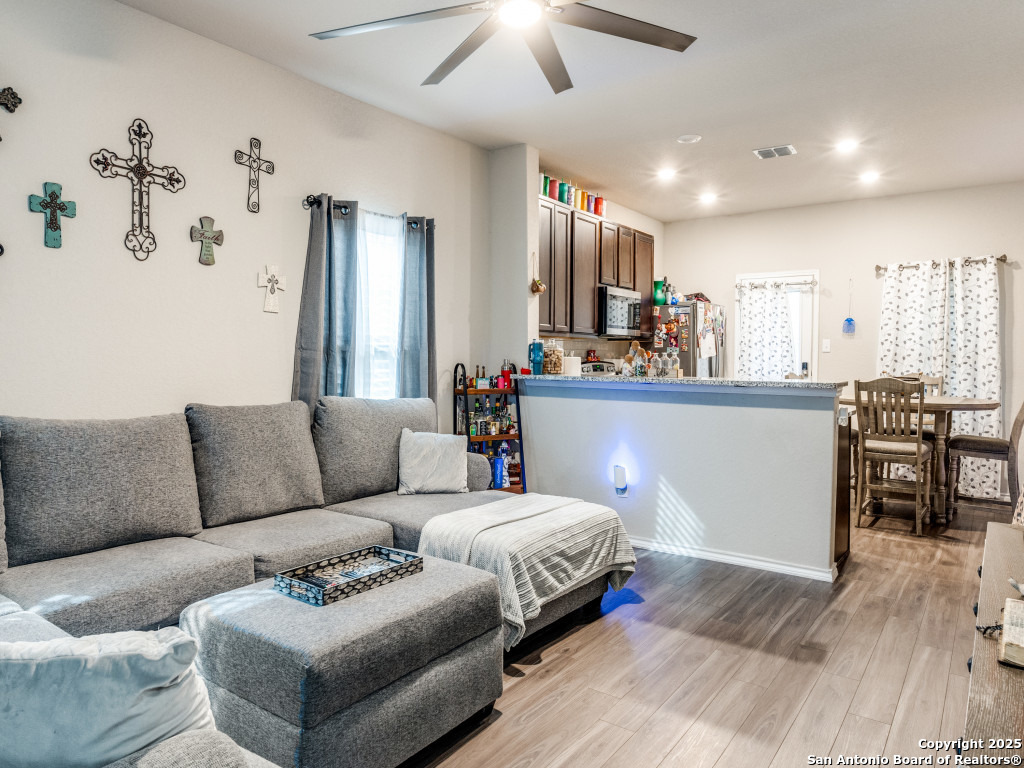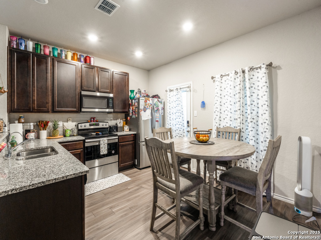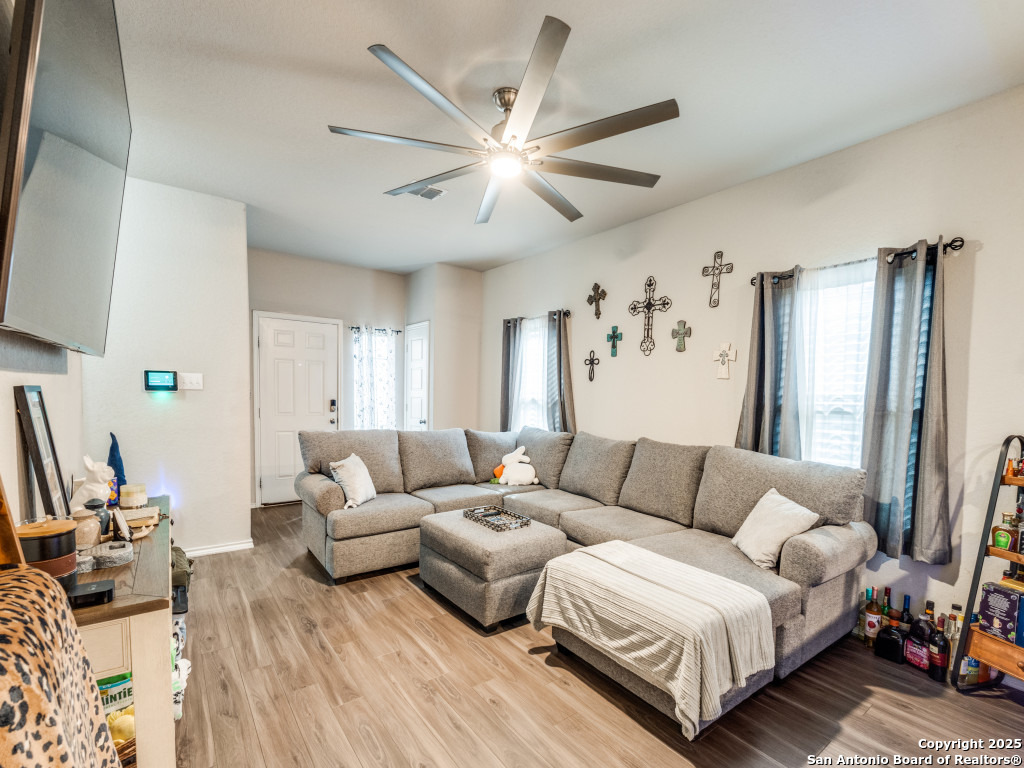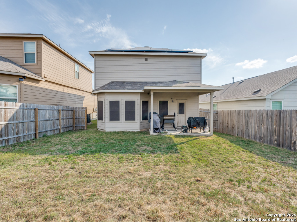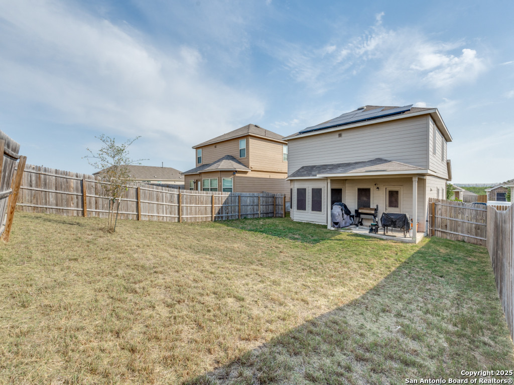 Beautiful 5-bedroom, 3-year-old home located just minutes from Randolph AFB. This open-concept floorplan offers a spacious layout with a first-floor master suite featuring upgraded luxury vinyl plank flooring. The kitchen is fully equipped with stainless steel appliances, and the refrigerator, washer, and dryer all convey. Solar panels provide year-round energy savings. The large backyard includes a covered patio, perfect for outdoor living and entertaining. Move-in ready and conveniently located near shopping, dining, and major highways. Seller Financing Available!!
