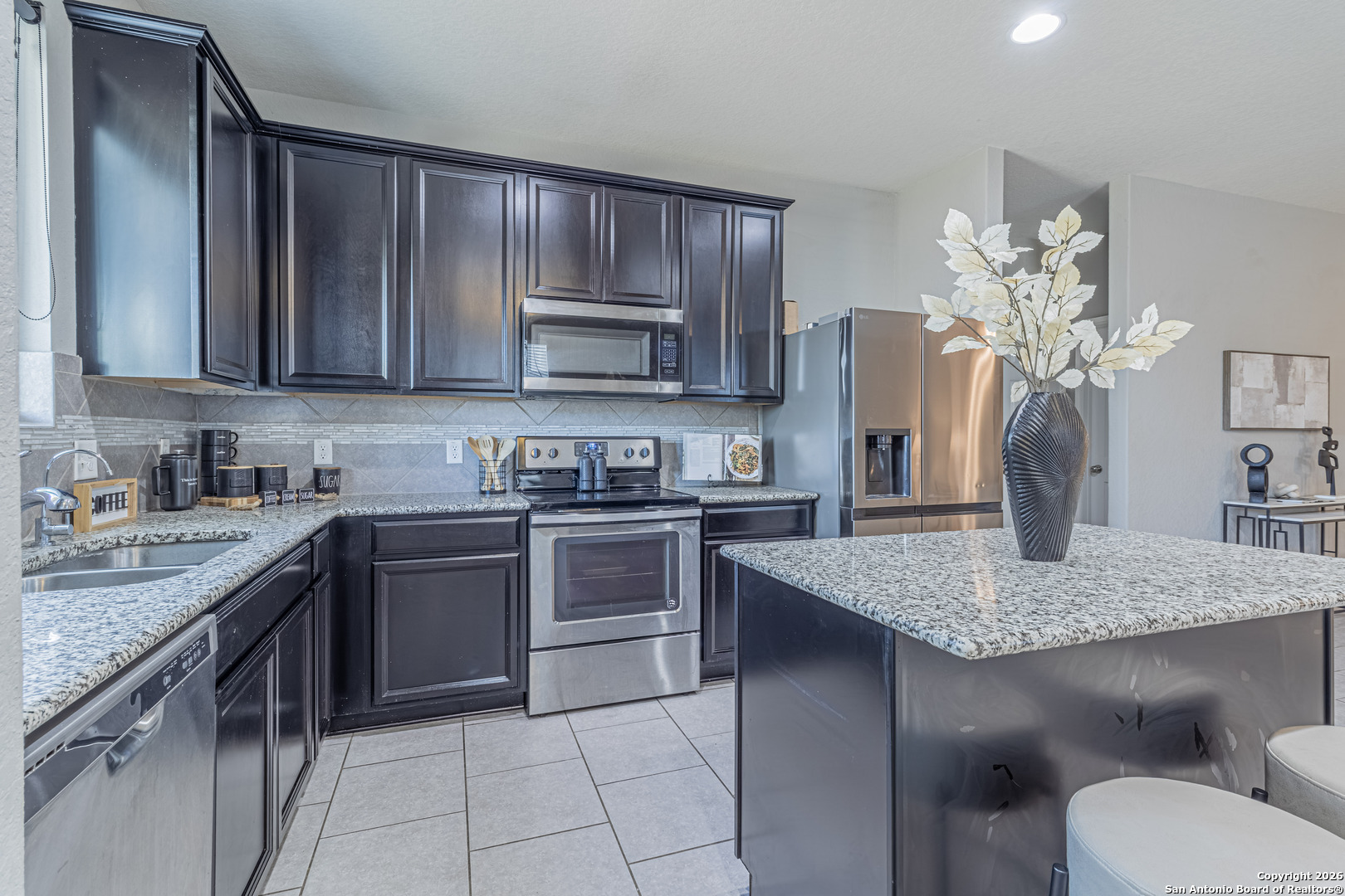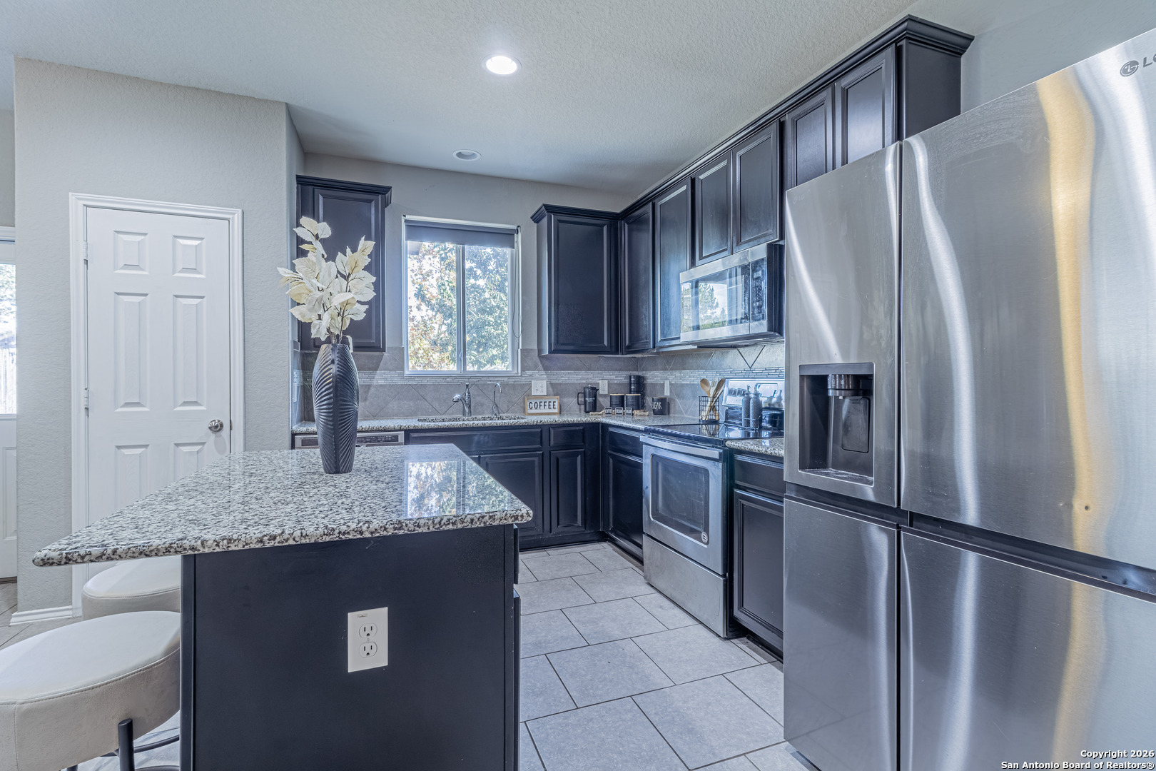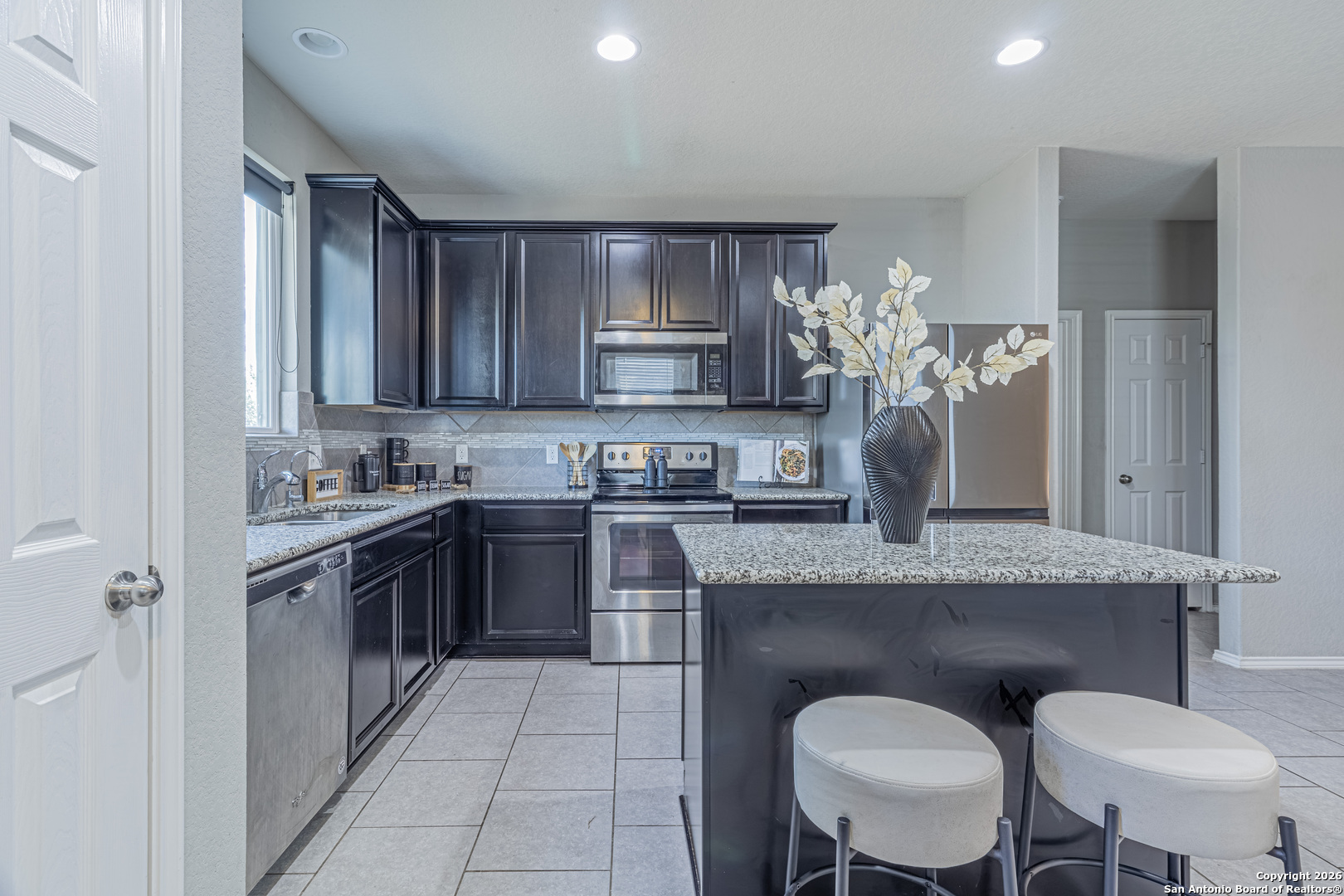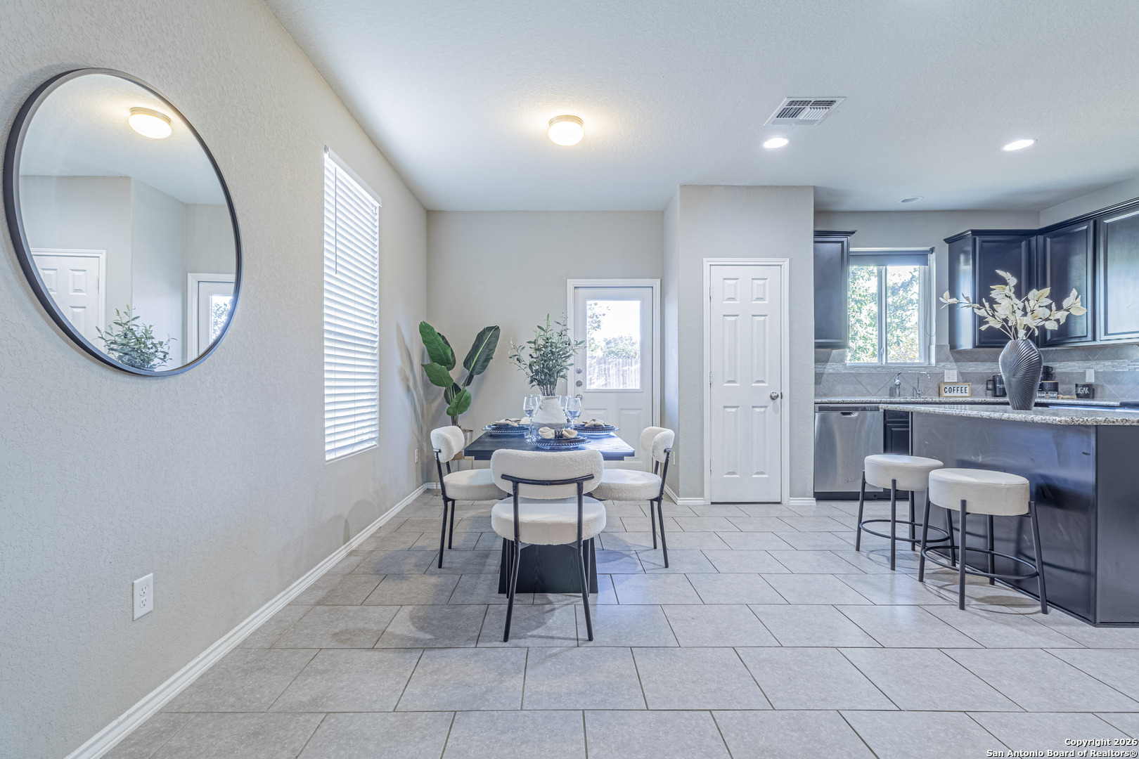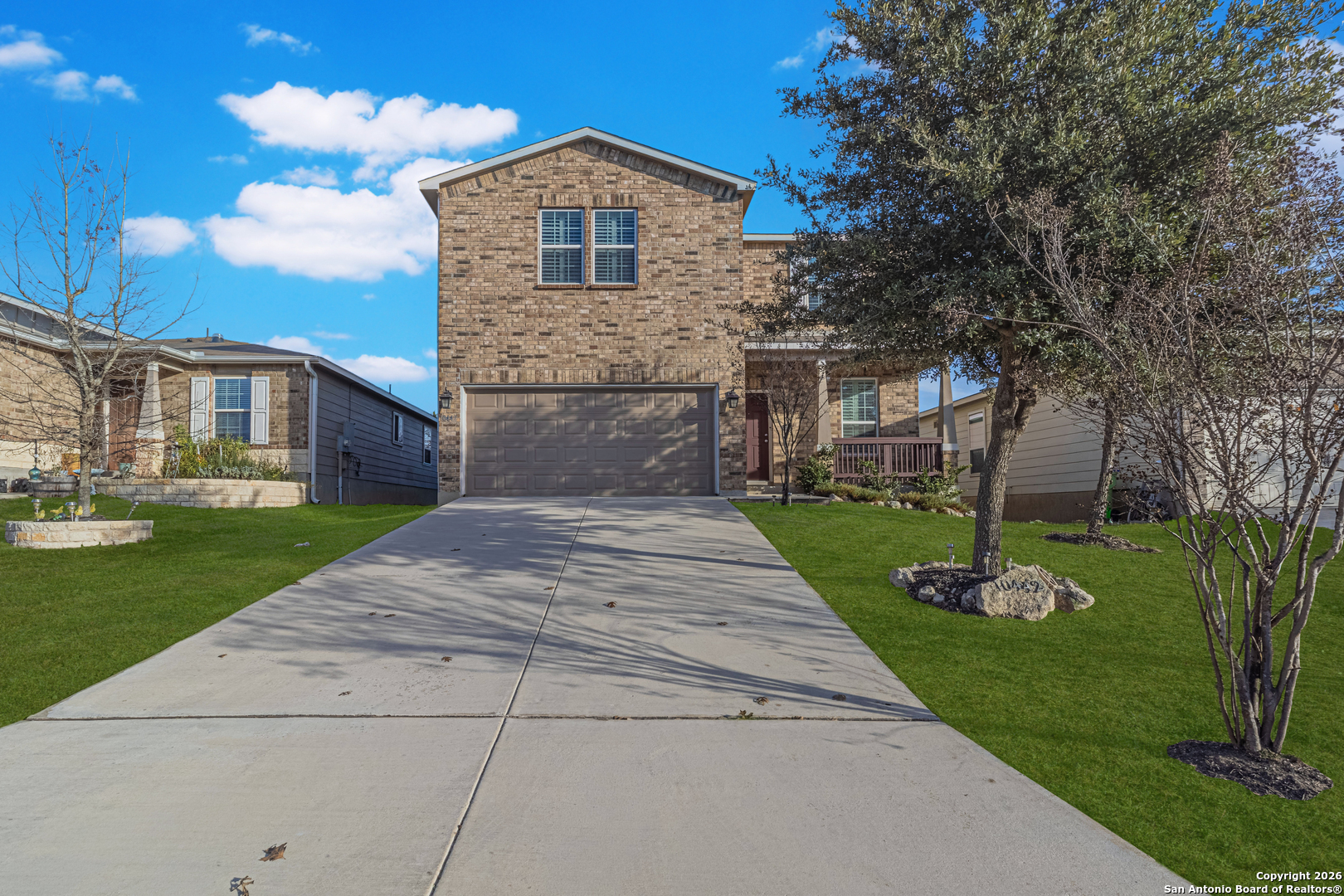 Welcome to 10442 Castello Canyon, a stunning two-story home located in the sought-after Silver Canyon community. This spacious 2394 sq ft home offers 4 bedrooms, 2.5 bathrooms, and a flexible layout ideal for modern living. The open floor plan is thoughtfully designed, featuring 9-foot ceilings, tile flooring throughout the main level, and plush carpeting upstairs. The primary bedroom is located downstairs, offering convenience and privacy, with a generous en-suite bathroom, walk-in shower, and expansive walk-in closet. Upstairs, you'll find three additional bedrooms, a full bathroom with double sinks, and a huge game room-perfect for entertaining or relaxing. There's also a dedicated office/study downstairs, ideal for remote work or a quiet retreat. The kitchen boasts stainless steel appliances, granite countertops, and plenty of cabinet space, opening up to the dining and living areas for seamless entertaining. Step outside to a private backyard that backs to a greenbelt, offering peace, privacy, and a perfect setting for gatherings under the covered patio. This home combines style, comfort, and location-just minutes from Loop 1604, major employers, shopping, and top-rated NISD schools. Come see why this Silver Canyon gem is the perfect place for New Beginnings!