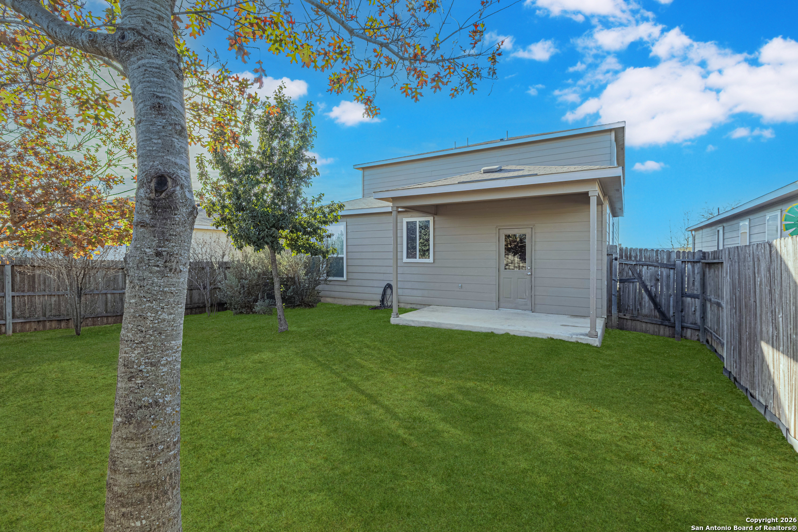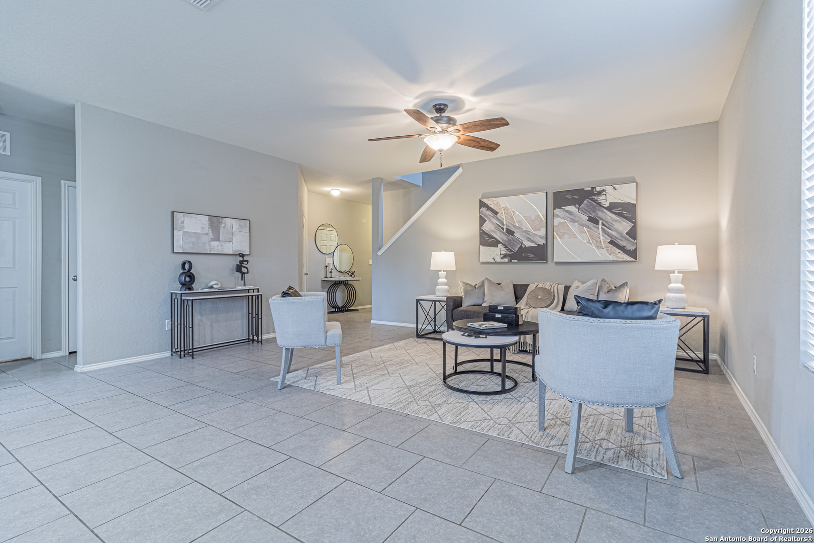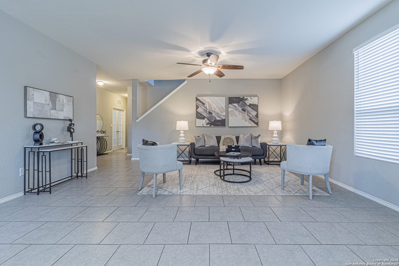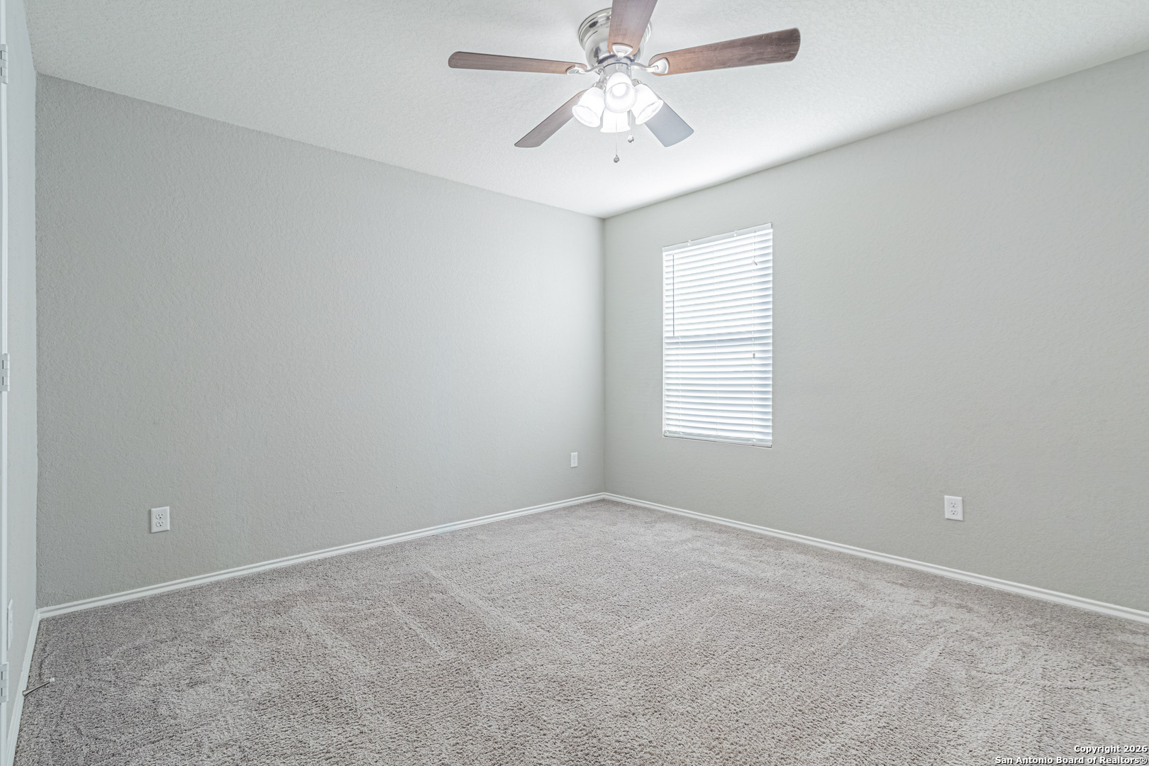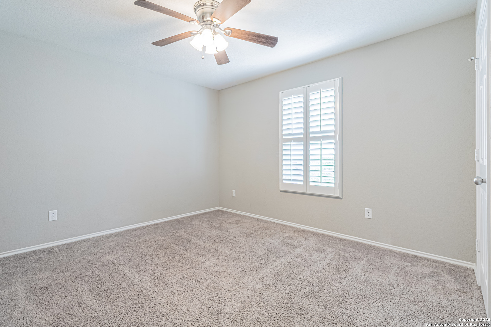 Welcome to 10442 Castello Canyon, a stunning two-story home located in the sought-after Silver Canyon community. This spacious 2394 sq ft home offers 4 bedrooms, 2.5 bathrooms, and a flexible layout ideal for modern living. The open floor plan is thoughtfully designed, featuring 9-foot ceilings, tile flooring throughout the main level, and plush carpeting upstairs. The primary bedroom is located downstairs, offering convenience and privacy, with a generous en-suite bathroom, walk-in shower, and expansive walk-in closet. Upstairs, you'll find three additional bedrooms, a full bathroom with double sinks, and a huge game room-perfect for entertaining or relaxing. There's also a dedicated office/study downstairs, ideal for remote work or a quiet retreat. The kitchen boasts stainless steel appliances, granite countertops, and plenty of cabinet space, opening up to the dining and living areas for seamless entertaining. Step outside to a private backyard that backs to a greenbelt, offering peace, privacy, and a perfect setting for gatherings under the covered patio. This home combines style, comfort, and location-just minutes from Loop 1604, major employers, shopping, and top-rated NISD schools. Come see why this Silver Canyon gem is the perfect place for New Beginnings!