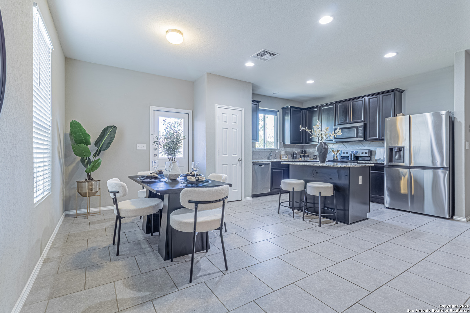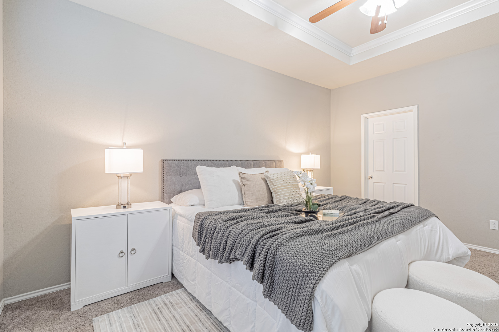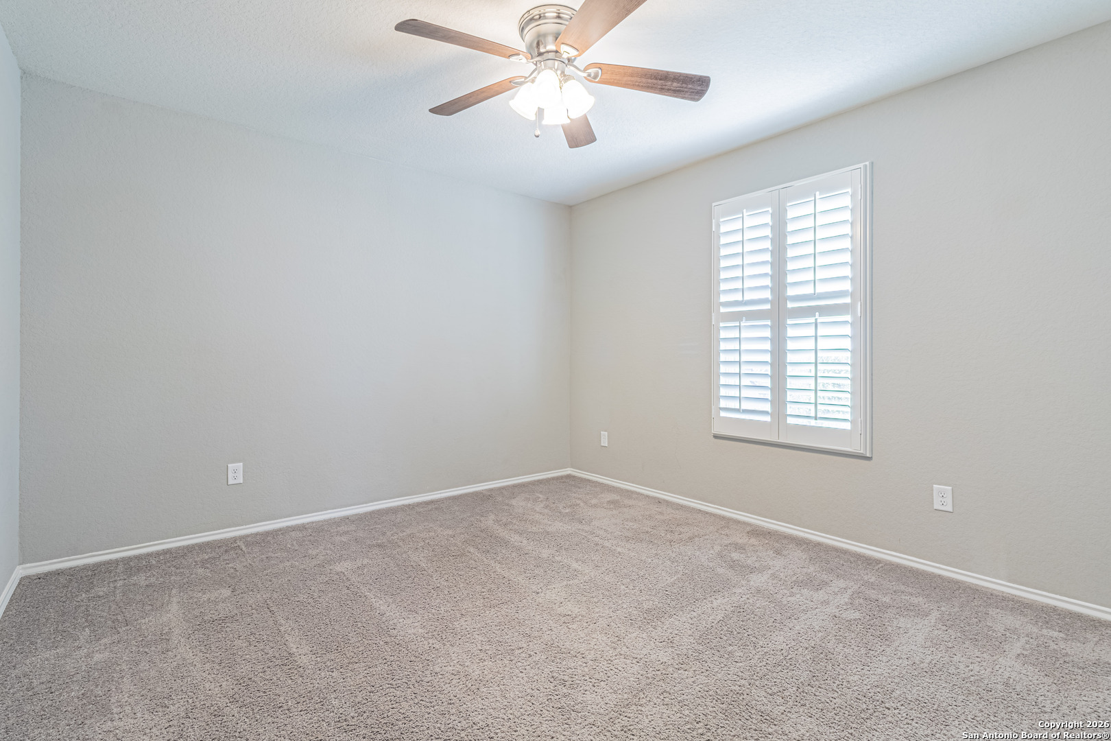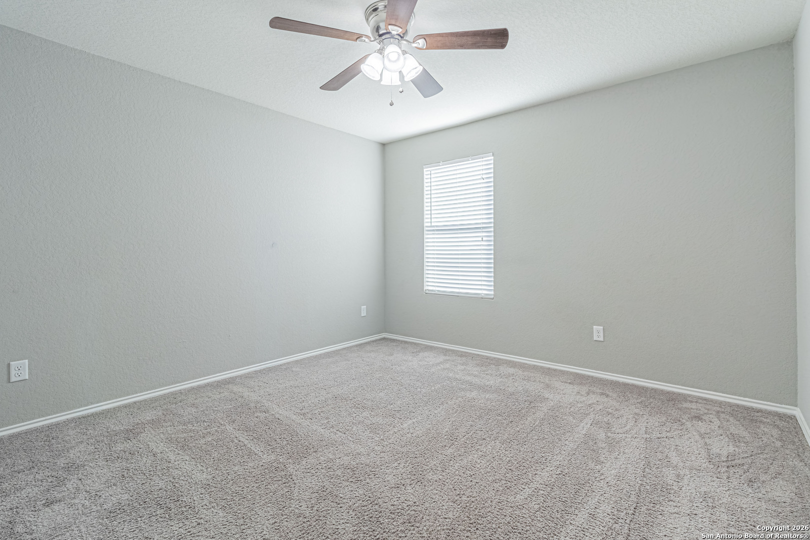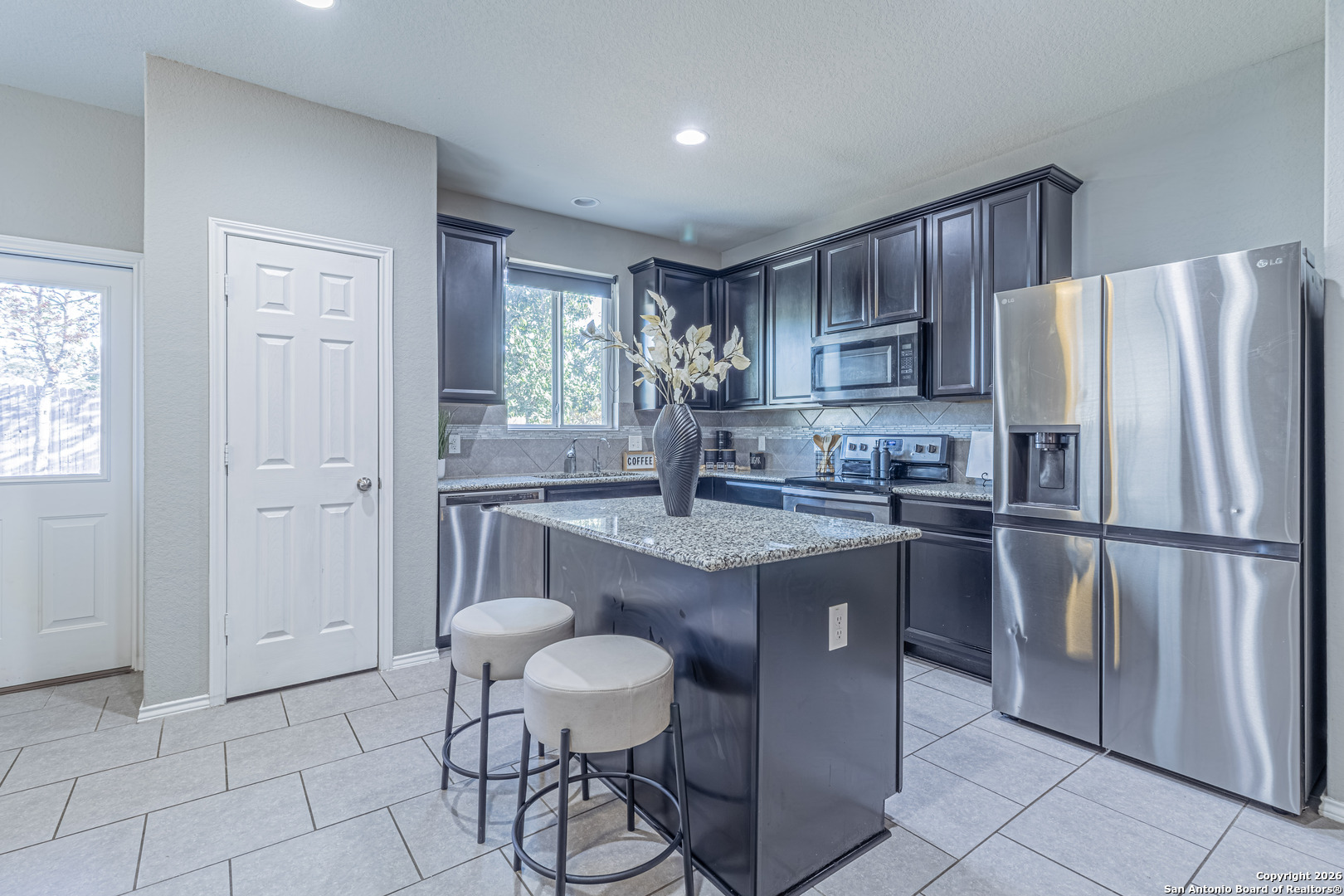 Welcome to 10442 Castello Canyon, a stunning two-story home located in the sought-after Silver Canyon community. This spacious 2394 sq ft home offers 4 bedrooms, 2.5 bathrooms, and a flexible layout ideal for modern living. The open floor plan is thoughtfully designed, featuring 9-foot ceilings, tile flooring throughout the main level, and plush carpeting upstairs. The primary bedroom is located downstairs, offering convenience and privacy, with a generous en-suite bathroom, walk-in shower, and expansive walk-in closet. Upstairs, you'll find three additional bedrooms, a full bathroom with double sinks, and a huge game room-perfect for entertaining or relaxing. There's also a dedicated office/study downstairs, ideal for remote work or a quiet retreat. The kitchen boasts stainless steel appliances, granite countertops, and plenty of cabinet space, opening up to the dining and living areas for seamless entertaining. Step outside to a private backyard that backs to a greenbelt, offering peace, privacy, and a perfect setting for gatherings under the covered patio. This home combines style, comfort, and location-just minutes from Loop 1604, major employers, shopping, and top-rated NISD schools. Come see why this Silver Canyon gem is the perfect place for New Beginnings!