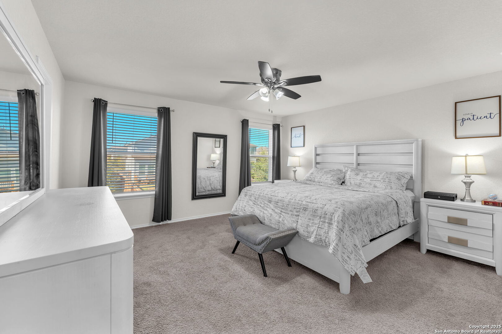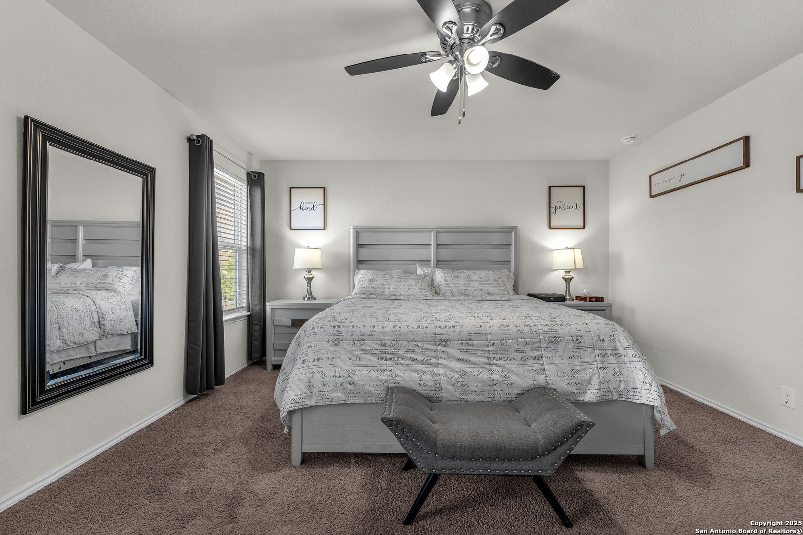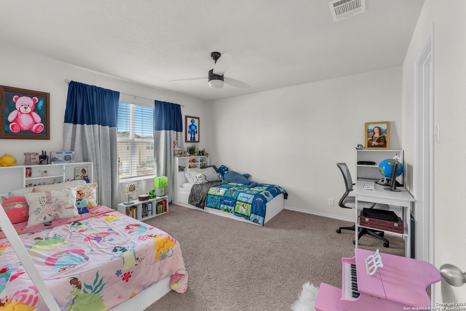 **ASSUMABLE VA LOAN**Refrigerator & Water Softener are negotiable.** Welcome home! This modern two-story home located in the desirable Red Bird Ranch Community features an open-concept main level includes a spacious living area, dining space, and a kitchen with granite countertops and smart home features. A guest bedroom and full bathroom are also located downstairs for convenience. Upstairs offers a large loft or game room, the primary suite with a walk-in closet, and two additional bedrooms. The home sits on a spacious lot with a fenced backyard and covered patio. It offers modern design, low maintenance, and energy efficiency. Located in the Northside ISD, this home combines comfort, technology, and family-friendly living in a growing area of San Antonio. Close to shopping and about 25 minutes commute to Lackland Air Force Base.