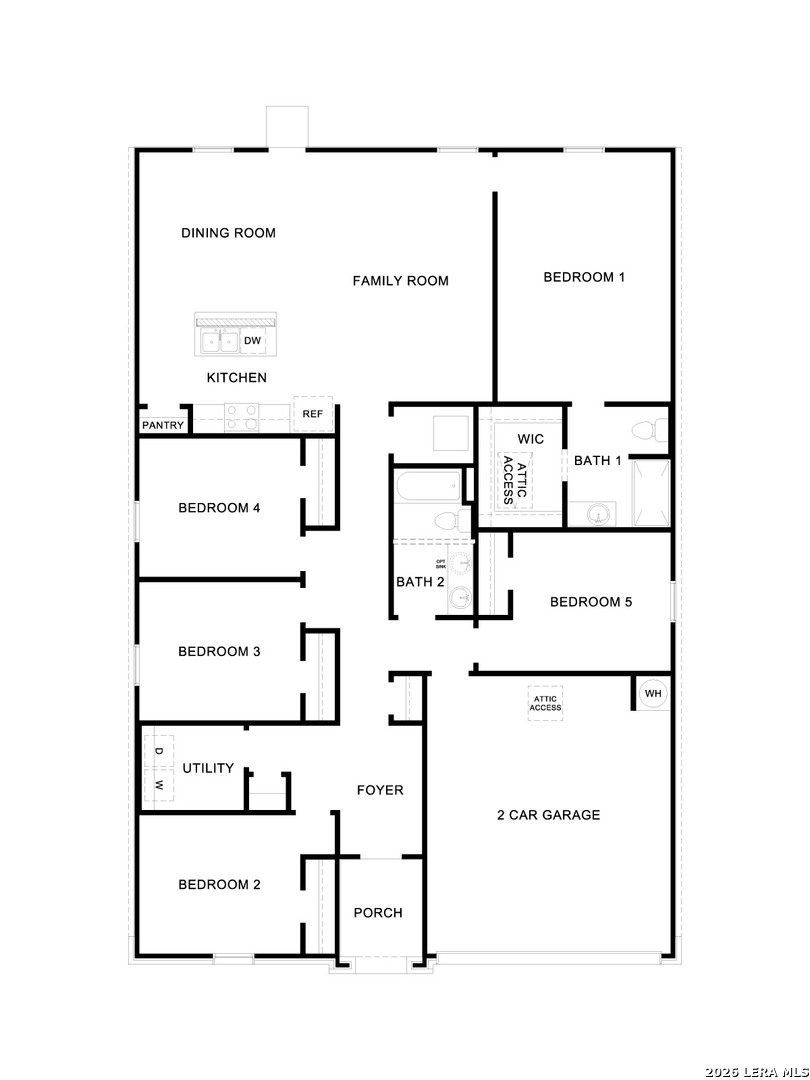 JULY/AUGUST ESTIMATED COMPLETION DATE. NAVARRO ISD. Check out the Bailey, one of our newest floorplans available at Navarro Fields in Seguin, Texas. This one-story new home has 5 bedrooms, 2 bathrooms, and a 2-car garage within 1,874 square feet of comfortable living space. Our homes in Navarro Fields feature our farmhouse exteriors. Step inside the home from the covered front porch. You'll notice a long hallway that connects you to the four secondary bedrooms and the open concept living space. A full bathroom is located off the hallway near Bedroom 5 and features a shower/tub combination and a cultured marble vanity with trench sink. The utility room is near the front of the home, between Bedroom 2 and 3, helping make your laundry chores an easy task for everyone in the home. There is plenty of closet space in the Bailey, with each bedroom and two hall closets featuring wood shelving for all your prized possessions. The living area is an open concept design, so you are always close to the action in the family room, kitchen and dining room. The kitchen features an island with a stainless-steel sink, quartz countertops, 42" upper 'picture frame' cabinets, a walk-in pantry closet and stainless-steel appliances. The primary bedroom is off the family room and includes its own attached bathroom, making the start of your day a seamless step from sleep to your morning routine. The bathroom includes a walk-in shower, cultured marble vanity with trench sink and a walk-in closet. This home features our America's Smart Home base package, which includes the Video Front Doorbell, Front Door Deadbolt Lock, Home Hub, Thermostat, and a Smart Switch.