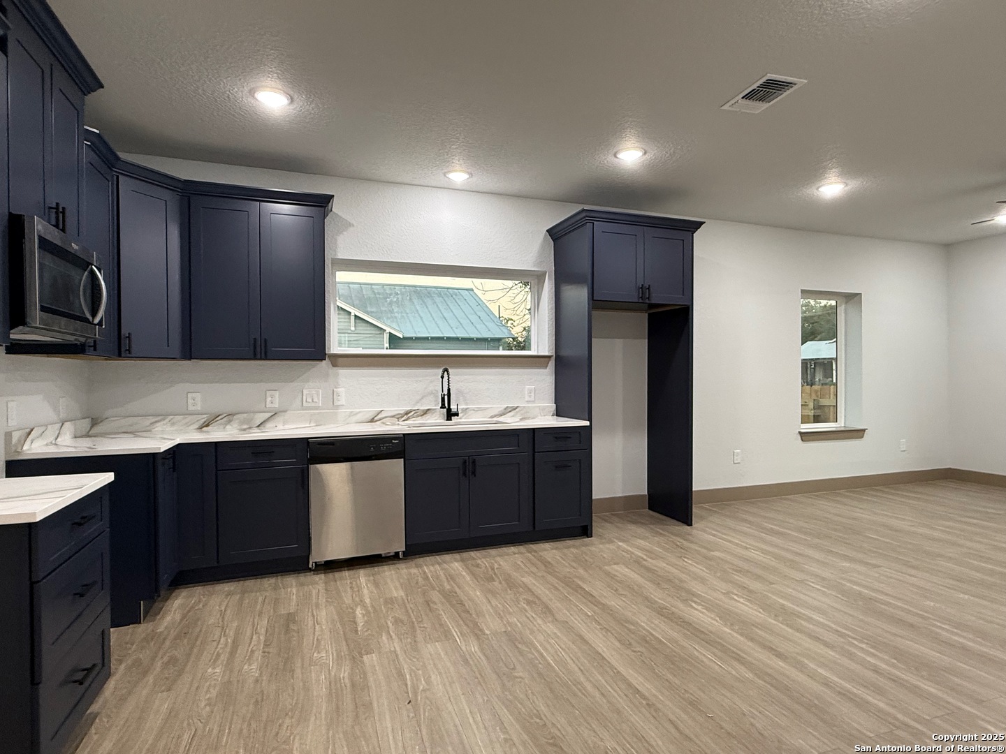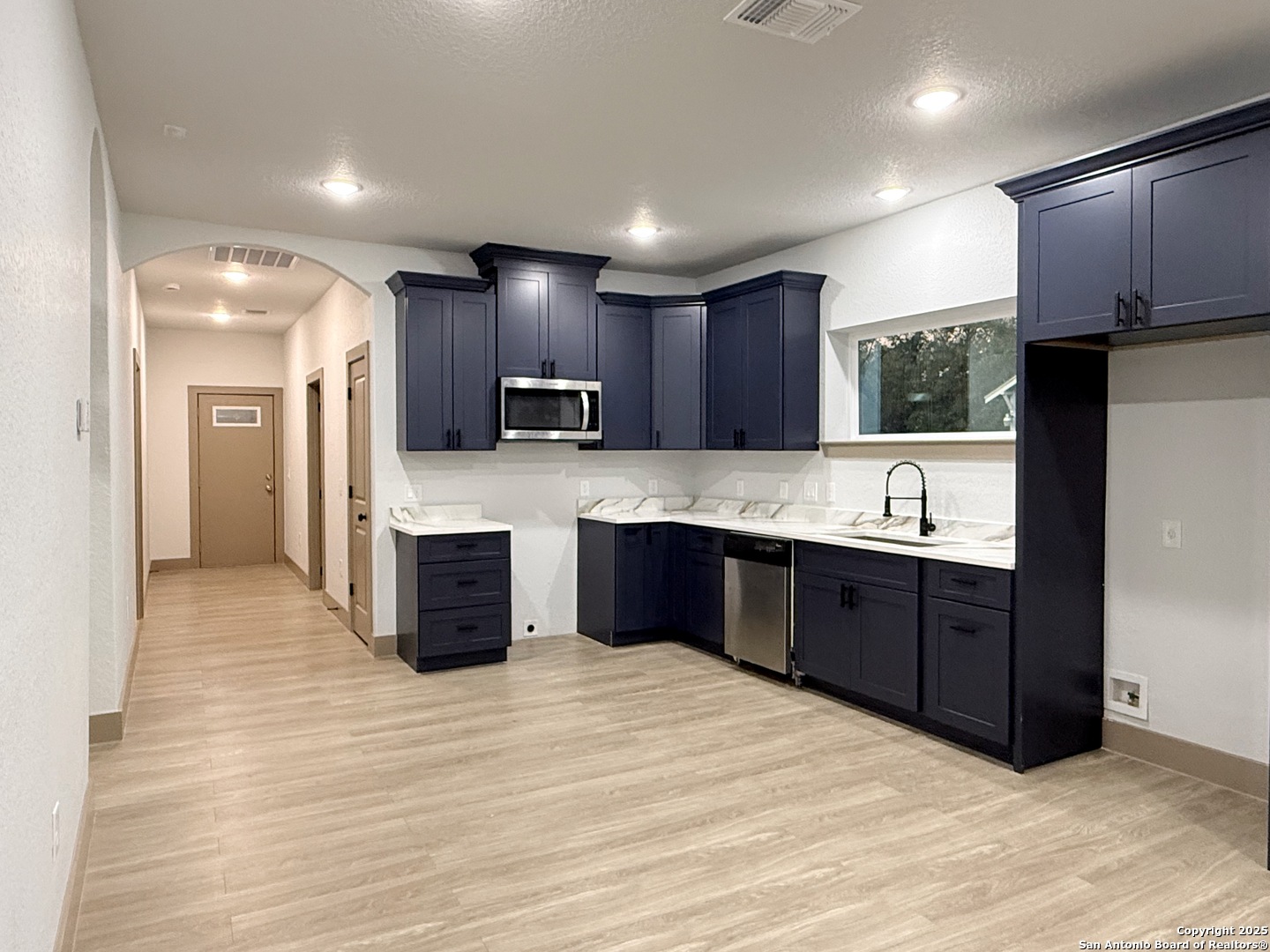 LIKE-NEW Home Near Downtown San Antonio! This move-in-ready property has been fully remodeled and includes an additional 250 sqft of bright, open living space. Sitting on a desirable corner lot, it offers unbeatable convenience-just minutes from the Alamodome, The Pearl, and major highways. Enjoy complete peace of mind with major updates throughout, including a new roof, HVAC system, electrical, and plumbing, all brought fully up to code. Inside, you'll find stunning new flooring, modern lighting, beautifully renovated bathrooms, and brand-new cabinetry. As an added value, the Refrigerator, Washer, and Dryer are INCLUDED! The spacious, fully fenced backyard provides plenty of room for privacy, pets, or entertaining. Don't miss your chance to own this turnkey property in a well-kept and rapidly growing community!