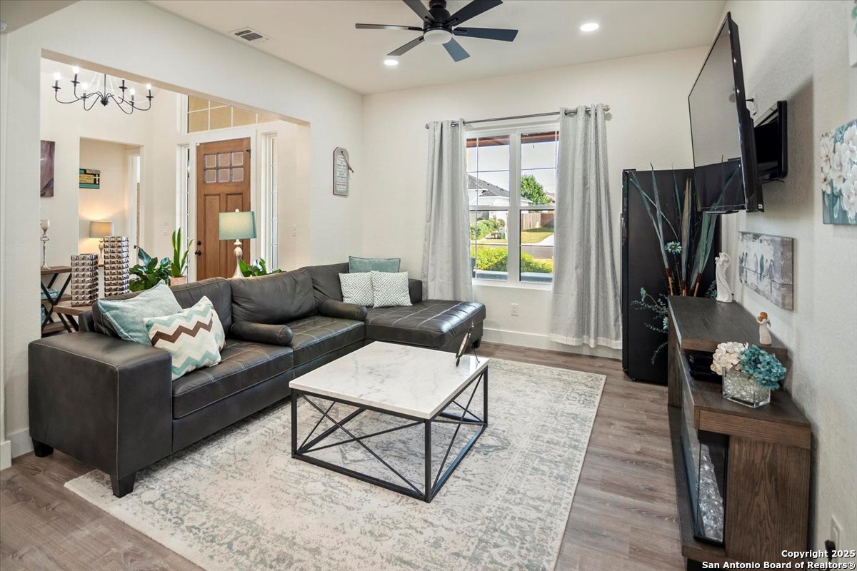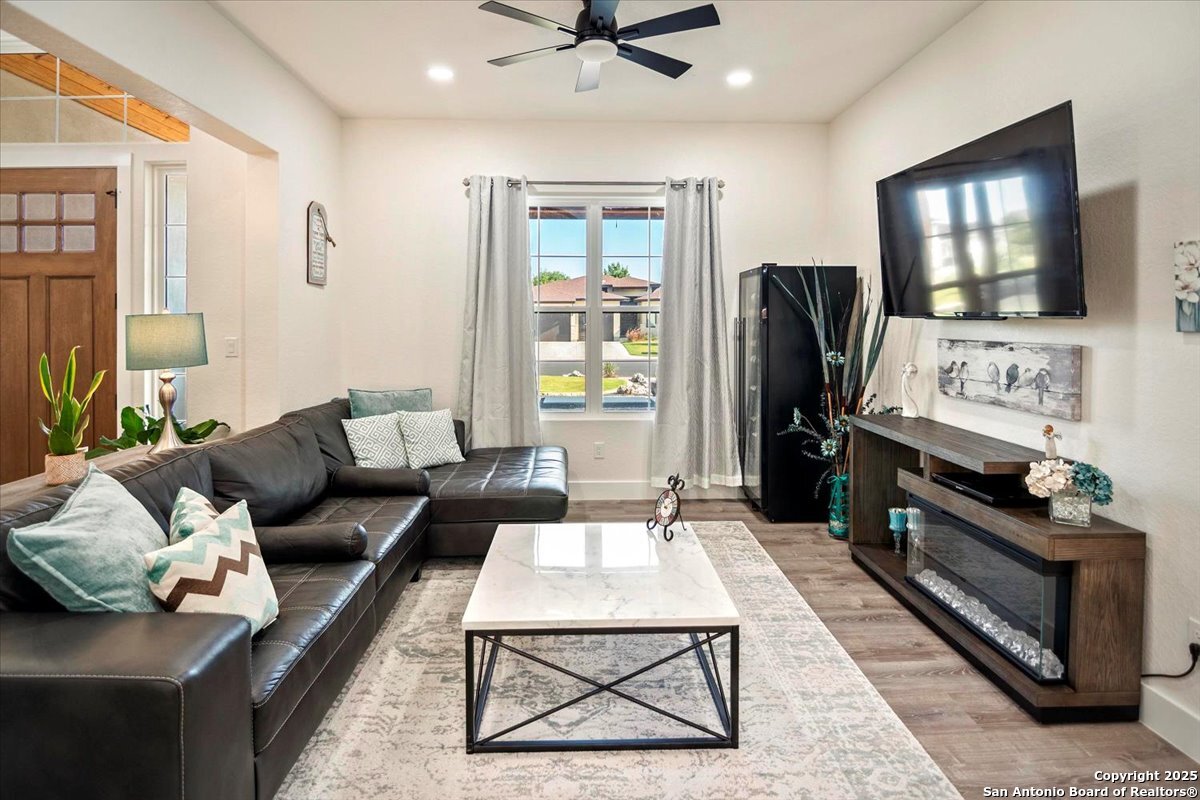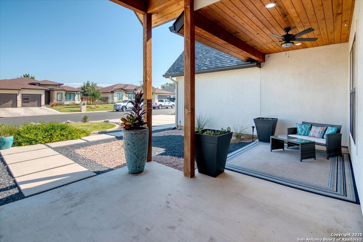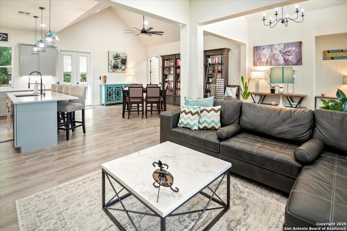 Hill Country Luxury Living - Built in 2021, this 2,694 sq. ft. Contemporary Hill Country home meticulously maintained offering 4 bedrooms, 4.5 baths, plus a bonus room that could easily serve as a second master suite. The open split floorplan highlights soaring cathedral ceilings, luxury vinyl plank flooring throughout, and a stunning chef's kitchen with quartz counters, a huge walk-in pantry, and abundant cabinetry. Enjoy a spacious primary suite, oversized laundry room with sink and thoughtful upgrades like 10 ft doors, whole-house water filtration, and a generator transfer switch. The house backs up to the shady greenbelt backdrop providing privacy with no rear neighbors, upgraded landscaping, and inviting porches perfect for relaxing under the Hill Country dark skies. All city utilities included. This property is Turn-Key ready! See documents for additional information, including the Seller's Disclosure & Survey. SEE ADDITIONAL INFORMATION ON DOCUMENT TAB.