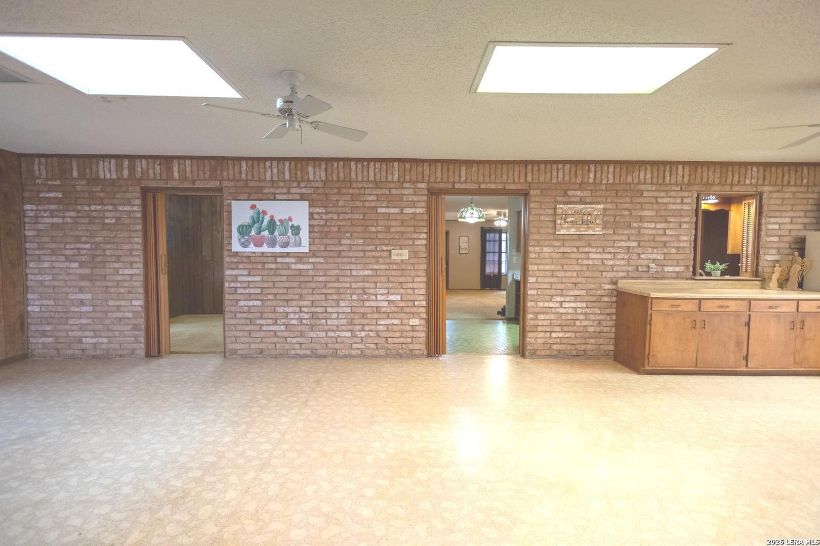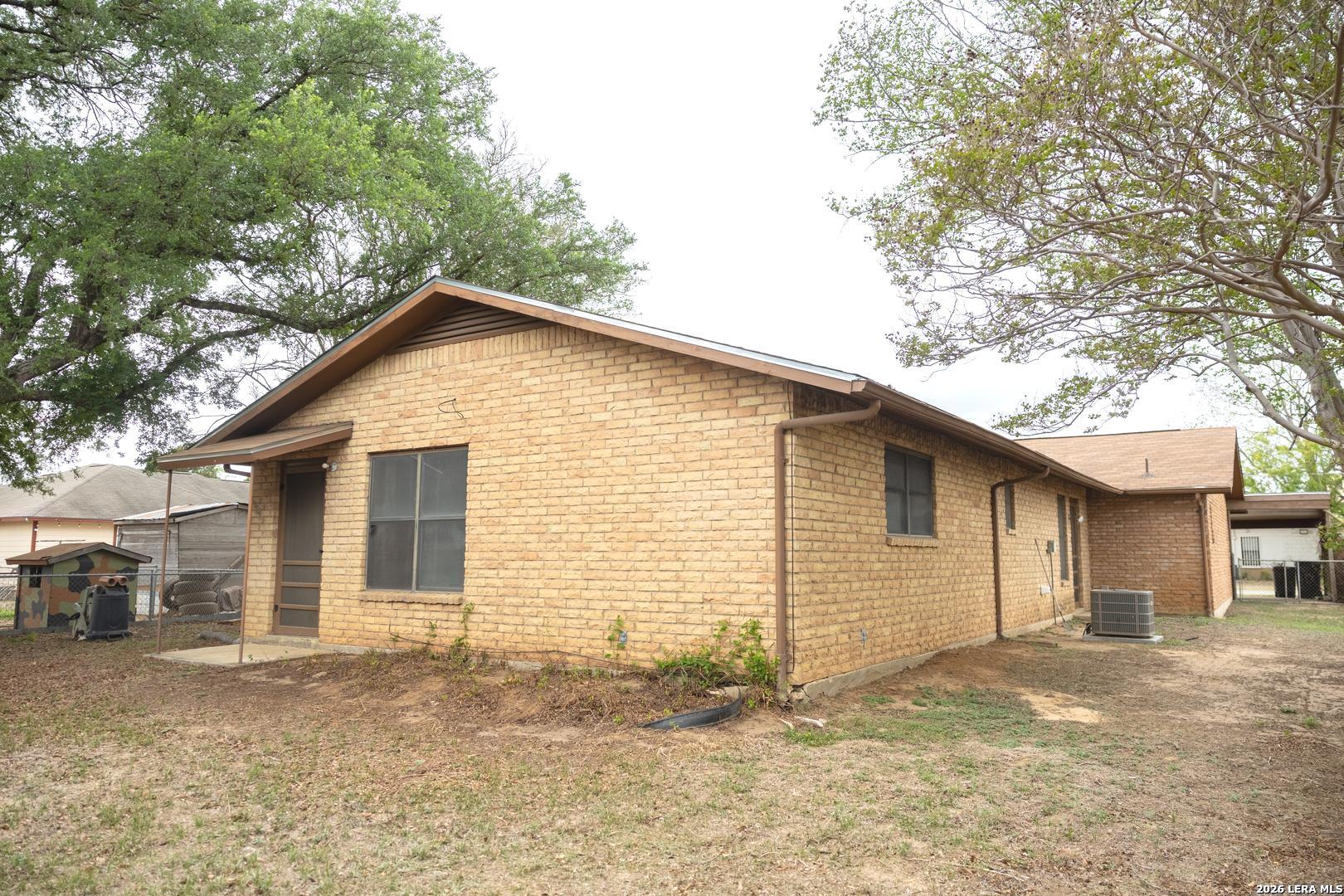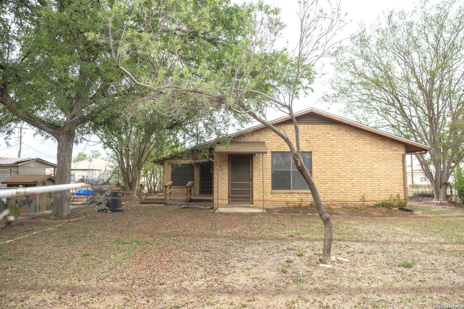 This spacious 3 bedroom 2 bath home offers over 2300 sq. feet in an area that is close to local churches in the heart of Devine. With two separate living areas, there is plenty of space for everyone. The oversized master suite ensures a private retreat for parents, while the durable all-brick exterior and newer 2 year old roof provide peace of mind. Dual central air and heat systems keep the home comfortable in every season! The large fully fenced yard is perfect for children and pets to play safely and the detached storage room adds extra functionality for tools, hobbies, or seasonal items. There is an attached one car garage and a 2 car carport! Priced to sell!