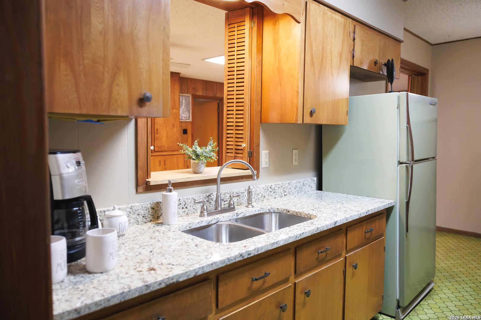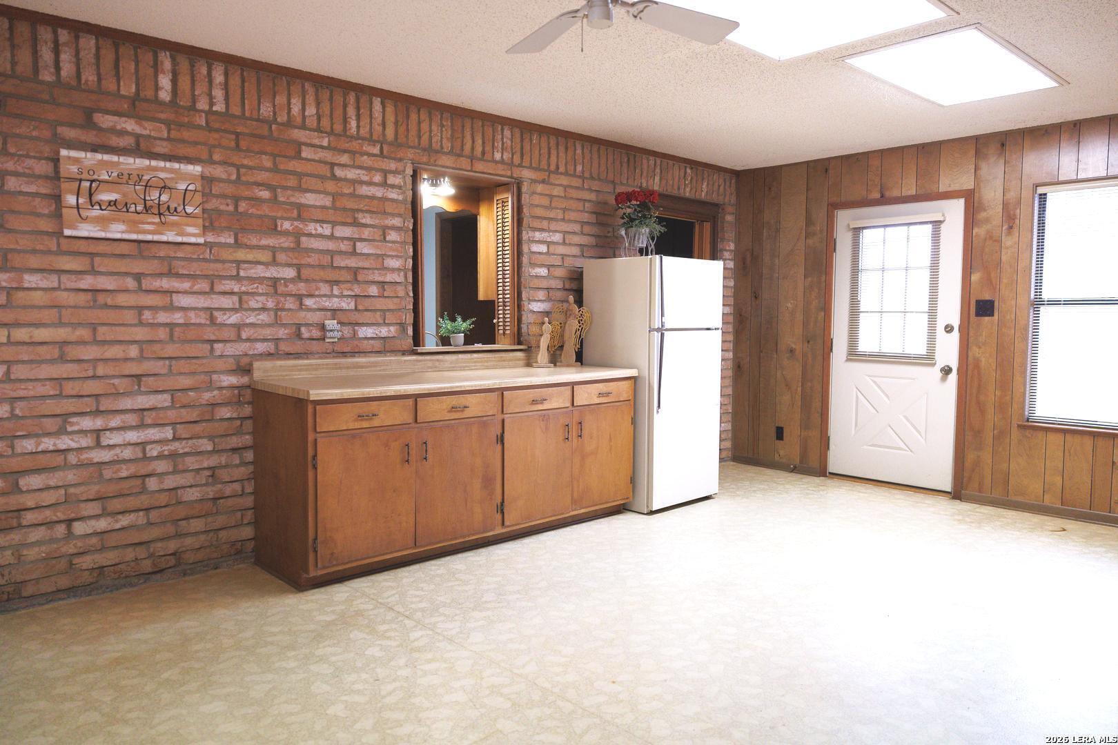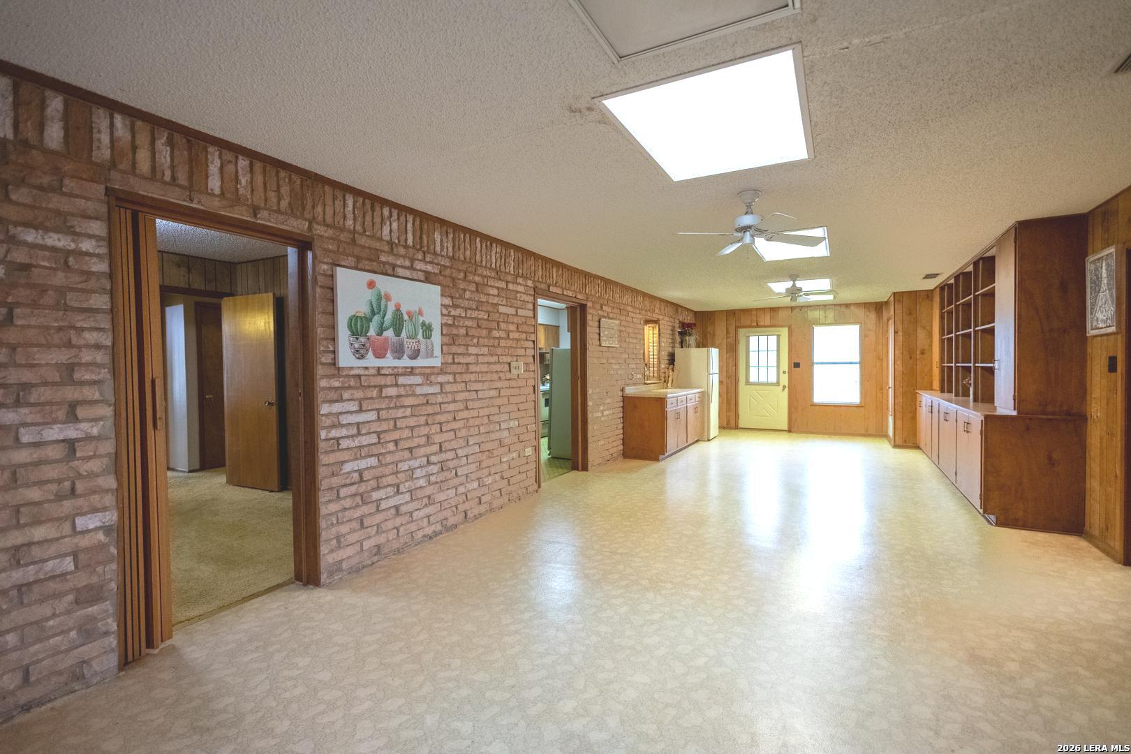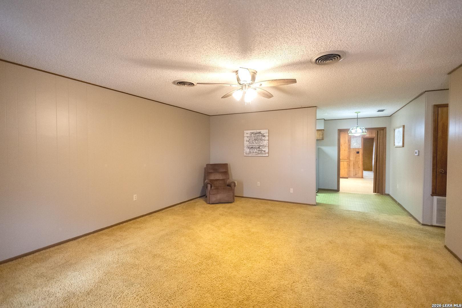 This spacious 3 bedroom 2 bath home offers over 2300 sq. feet in an area that is close to local churches in the heart of Devine. With two separate living areas, there is plenty of space for everyone. The oversized master suite ensures a private retreat for parents, while the durable all-brick exterior and newer 2 year old roof provide peace of mind. Dual central air and heat systems keep the home comfortable in every season! The large fully fenced yard is perfect for children and pets to play safely and the detached storage room adds extra functionality for tools, hobbies, or seasonal items. There is an attached one car garage and a 2 car carport! Priced to sell!