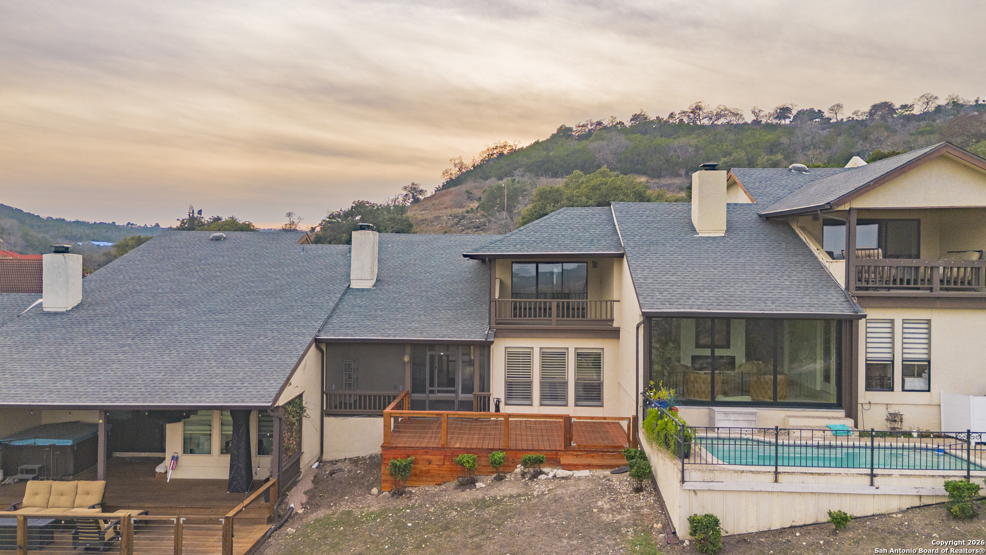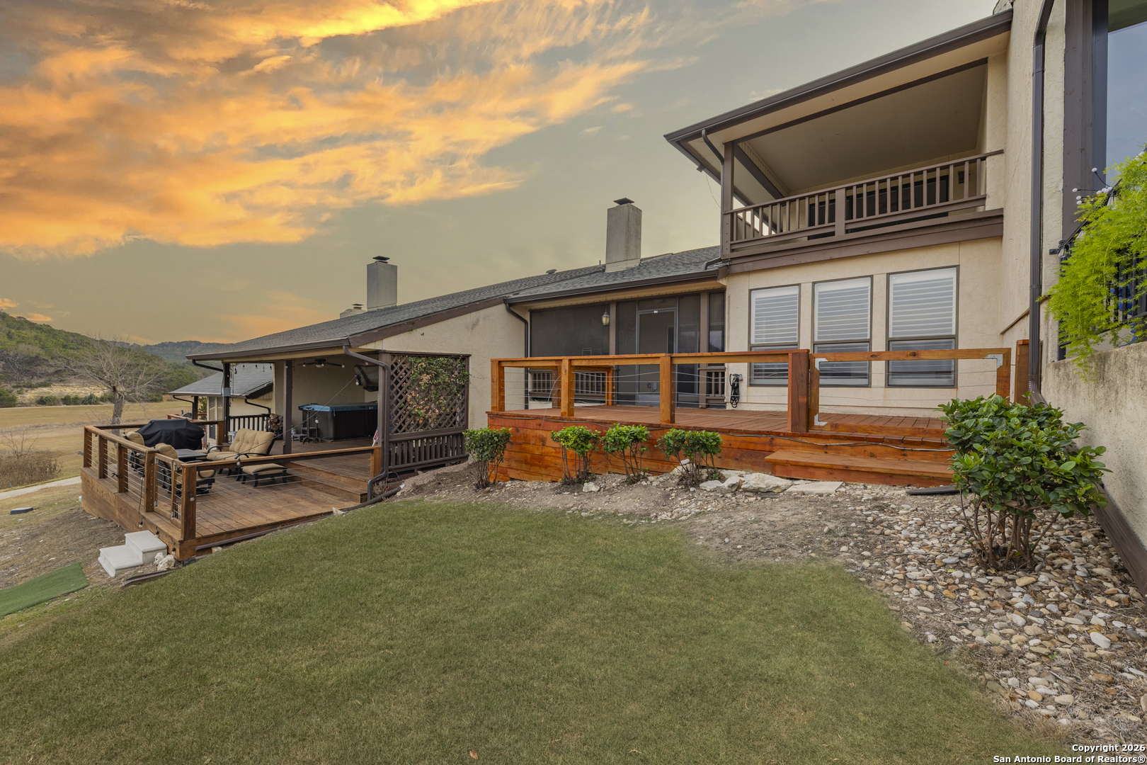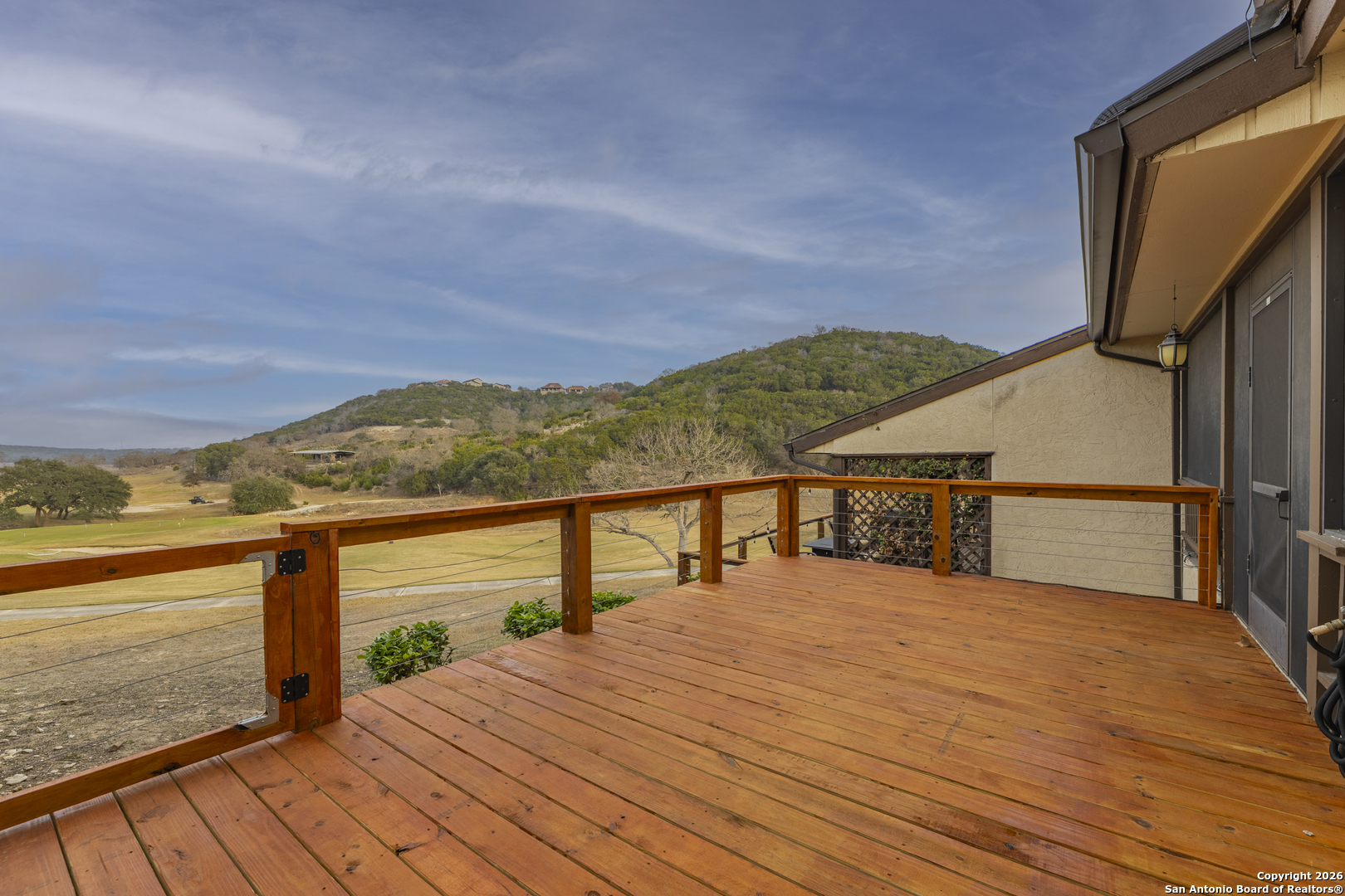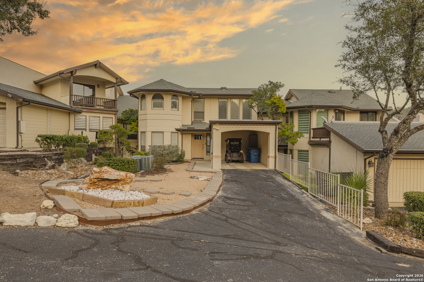 Experience refined Hill Country living in this luxury, seldom available, executive condominium located within the highly sought-after Tapatio Springs Resort & Golf Club in Boerne, Texas. Perfectly positioned on the golf course with gorgeous views, and just a short walk to the clubhouse, this residence offers both convenience and scenic views in a resort setting. Inside, the home showcases recent updates throughout (see below) and well-designed layout ideal for everyday living and entertaining. You are welcomed by stunning 2 story natural stone wood burning fireplace in the living room and AC for comfort. Upstairs you will find the spacious primary suite which serves as a private retreat, with remote controlled electric shades with balcony, offering comfort and privacy. A first-floor secondary bedroom equipped with a Murphy bed provides exceptional flexibility, easily accommodating guests while also functioning as a home office or multipurpose space. This home features hardwood floors throughout, and tile floors in the bathrooms and kitchen. Step outside to the brand-new deck overlooking the golf course, where mornings begin with peaceful Hill Country surroundings and evenings are perfect for unwinding or hosting while watching the gorgeous sunsets. This condominium delivers effortless luxury and a relaxed lifestyle within one of Boerne's most desirable resort communities. Below you will find key highlights of the home: First floor bedroom with murphy bed (2025) New fixtures and hardware in both bathrooms (2023) New sliding doors from Living room and Dining room to enclosed screen-in porch (2023) New front door (2023) New Water Heater (2023) New Water Softener (2023) New GE Refrigerator (2024) New fireplace with glass screen (2024) New Master Bath Frameless Glass Shower Door (2024) New ceiling fans with dimmable lights (3) (2024) New upper deck (2024) New lower deck (2025) New Roof (2025)