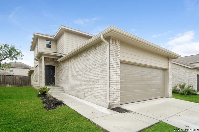The Solis Plan is a charming two-story home featuring 3 bedrooms and 2.5 bathrooms. Designed with an open concept layout, the first floor offers a spacious living and dining area that seamlessly flows into the kitchen, perfect for both relaxing and entertaining. The downstairs primary suite provides a peaceful retreat with a private bathroom and walk-in closet. Upstairs, you'll find two additional bedrooms, a full bathroom, and a cozy loft ideal for an office or reading nook. Features include wood grain vinyl plank flooring, a two car garage, fenced backyard, and a sprinkler system. All homes are SimplyMaintained for a $100 monthly fee that includes front and back yard lawn care and exterior pest control. Applewhite Meadows is a vibrant community in southwest San Antonio where residents enjoy on site amenities including a sparkling community pool, playground, and gathering pavilion. Applewhite Meadows offers unbeatable convenience with quick access to Loop 410 and I-35, making commutes a breeze. With close proximity to downtown San Antonio, Lackland Air Force Base, Sea World, Texas A&M University San Antonio, and Palo Alto College, Applewhite Meadows provides the perfect balance of comfort, convenience, and community.Photos are for illustrative purposes only and may show upgrades, and features that are not included. Actual homes may vary.