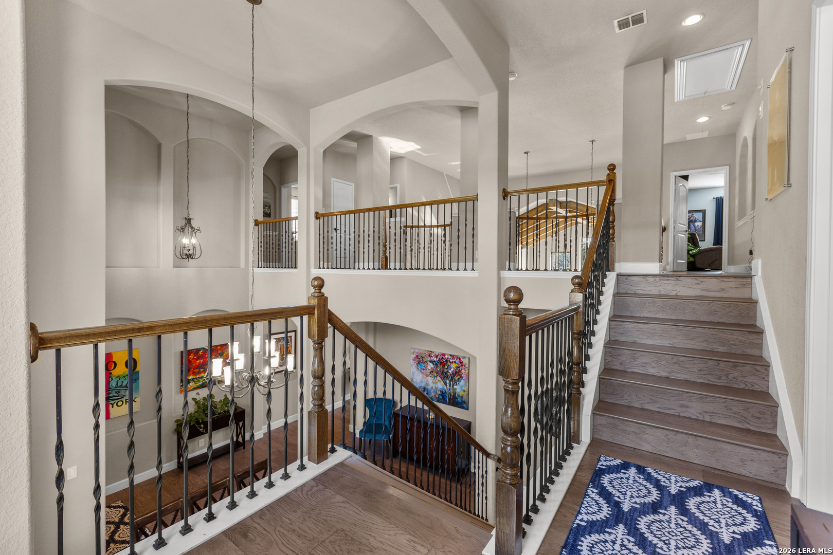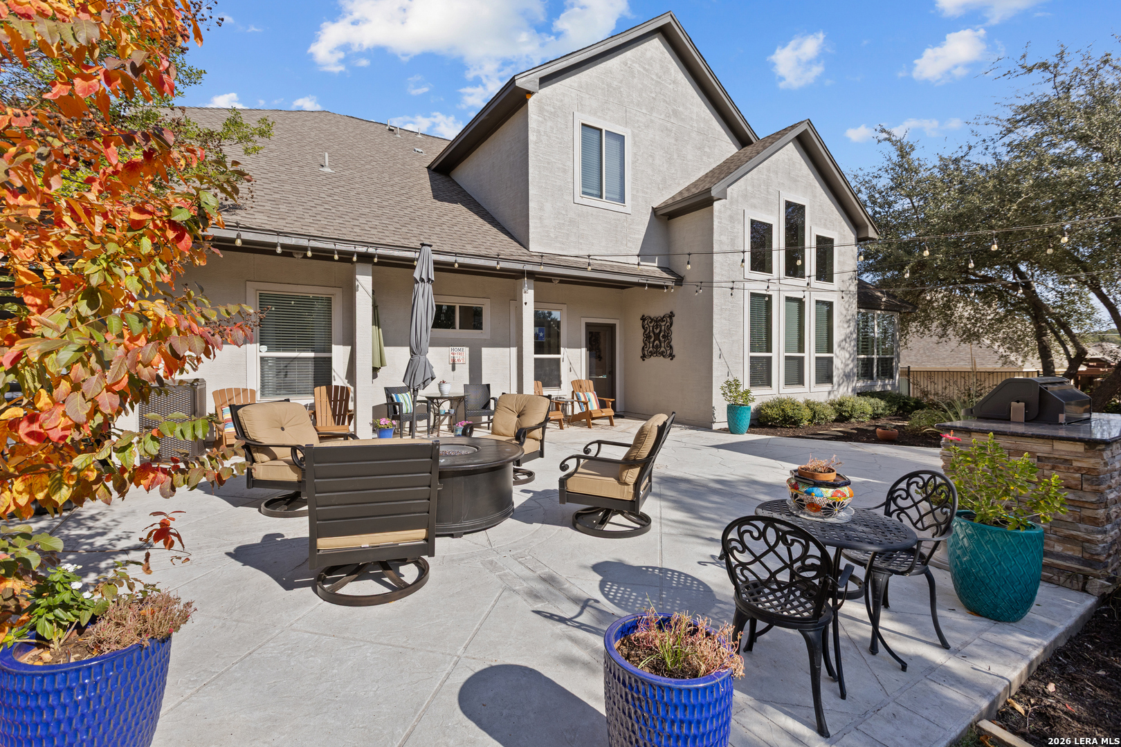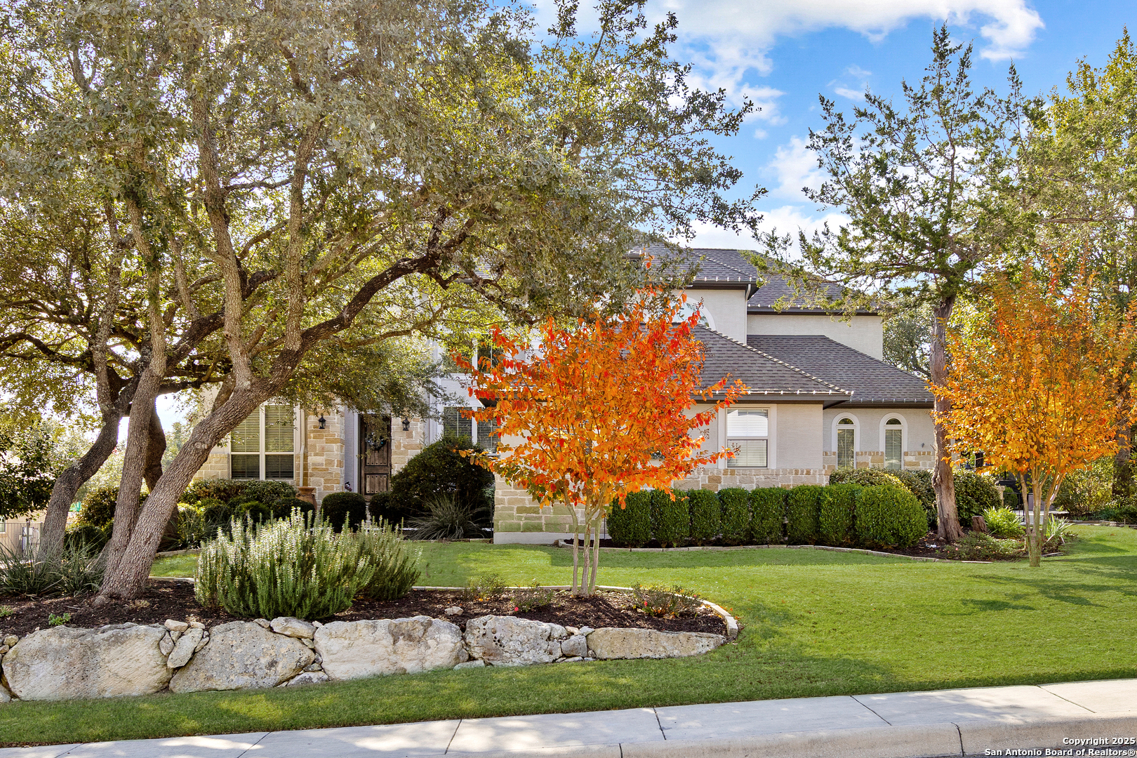 Welcome to this beautifully designed Hill Country luxury home, offering privacy, space, and a refined yet comfortable lifestyle in one of Boerne's most desirable settings. As you arrive, a charming courtyard sets the stage, leading to a private detached studio ideal for a home office, gym, guest quarters, or creative space. This thoughtful separation adds flexibility and enhances the sense of privacy. Inside, the entry opens to an elegant formal dining room, followed by a spacious living room with soaring beamed ceilings and a dramatic floor-to-ceiling stone fireplace. The open-concept floor plan flows into a stunning remodeled kitchen featuring an oversized island, custom cabinetry, quartz countertops, gas cooking, and a built-in oven, perfectly suited for entertaining and everyday living. The main-level primary suite offers a true retreat with oversized his-and-her closets and a spa-inspired bathroom with a soaking tub, separate shower, dual vanities, and generous storage. A first-floor guest suite with a private bath provides comfort and convenience for visitors. Midway up the staircase, a dedicated office or study creates a quiet work-from-home space. Upstairs, enjoy a large game room, three spacious bedrooms, and two full bathrooms designed with both style and function in mind. All four secondary bathrooms have been beautifully updated, each showcasing elegant quartz countertops that elevate both style and function. The backyard delivers exceptional Hill Country outdoor living, complete with mature trees and greenbelt privacy. Entertain in the outdoor kitchen, relax under the pergola with a fireplace, or unwind by the sparkling pool and gazebo, all surrounded by scenic views. Ideally located near luxury shopping and fine dining in San Antonio, while just minutes from the charm of downtown Boerne, this property offers the perfect blend of upscale living, natural beauty, and prime location for discerning buyers seeking a luxury Texas Hill Country home. Schedule a private showing today and experience the space, privacy, and refined Hill Country lifestyle this exceptional home offers.
