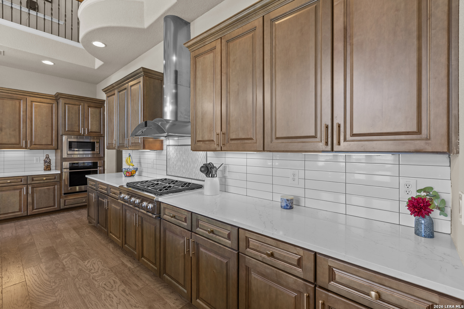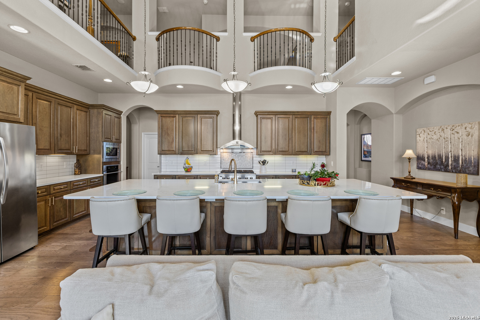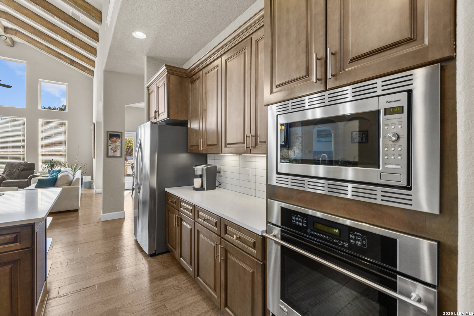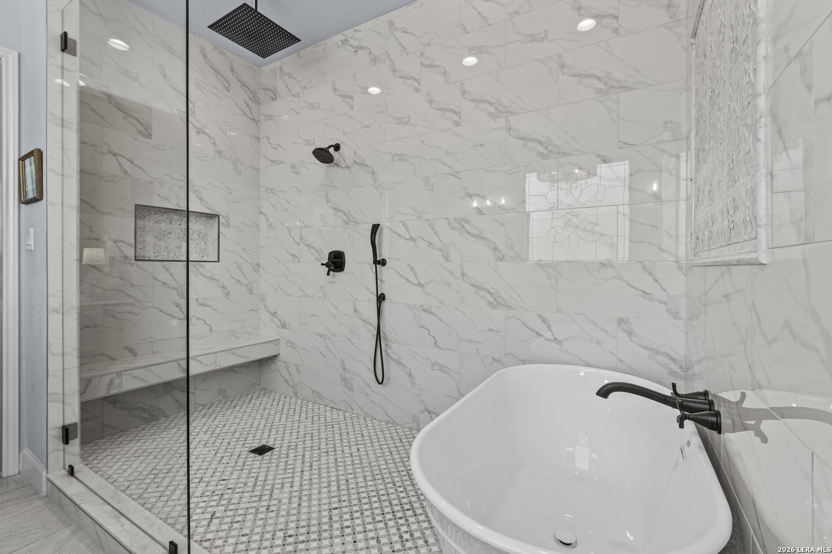 Welcome to this beautifully designed Hill Country luxury home, offering privacy, space, and a refined yet comfortable lifestyle in one of Boerne's most desirable settings. As you arrive, a charming courtyard sets the stage, leading to a private detached studio ideal for a home office, gym, guest quarters, or creative space. This thoughtful separation adds flexibility and enhances the sense of privacy. Inside, the entry opens to an elegant formal dining room, followed by a spacious living room with soaring beamed ceilings and a dramatic floor-to-ceiling stone fireplace. The open-concept floor plan flows into a stunning remodeled kitchen featuring an oversized island, custom cabinetry, quartz countertops, gas cooking, and a built-in oven, perfectly suited for entertaining and everyday living. The main-level primary suite offers a true retreat with oversized his-and-her closets and a spa-inspired bathroom with a soaking tub, separate shower, dual vanities, and generous storage. A first-floor guest suite with a private bath provides comfort and convenience for visitors. Midway up the staircase, a dedicated office or study creates a quiet work-from-home space. Upstairs, enjoy a large game room, three spacious bedrooms, and two full bathrooms designed with both style and function in mind. All four secondary bathrooms have been beautifully updated, each showcasing elegant quartz countertops that elevate both style and function. The backyard delivers exceptional Hill Country outdoor living, complete with mature trees and greenbelt privacy. Entertain in the outdoor kitchen, relax under the pergola with a fireplace, or unwind by the sparkling pool and gazebo, all surrounded by scenic views. Ideally located near luxury shopping and fine dining in San Antonio, while just minutes from the charm of downtown Boerne, this property offers the perfect blend of upscale living, natural beauty, and prime location for discerning buyers seeking a luxury Texas Hill Country home. Schedule a private showing today and experience the space, privacy, and refined Hill Country lifestyle this exceptional home offers.