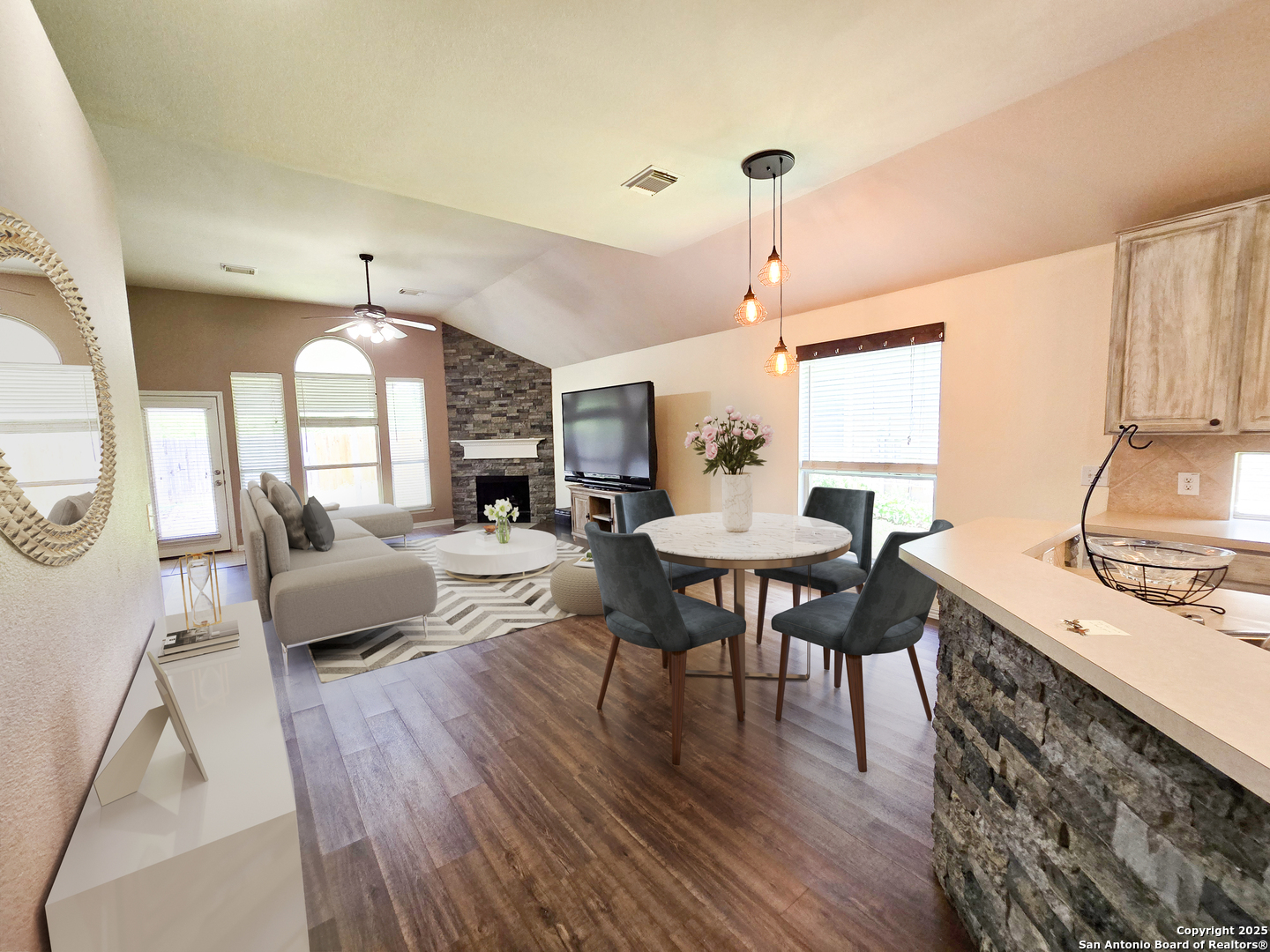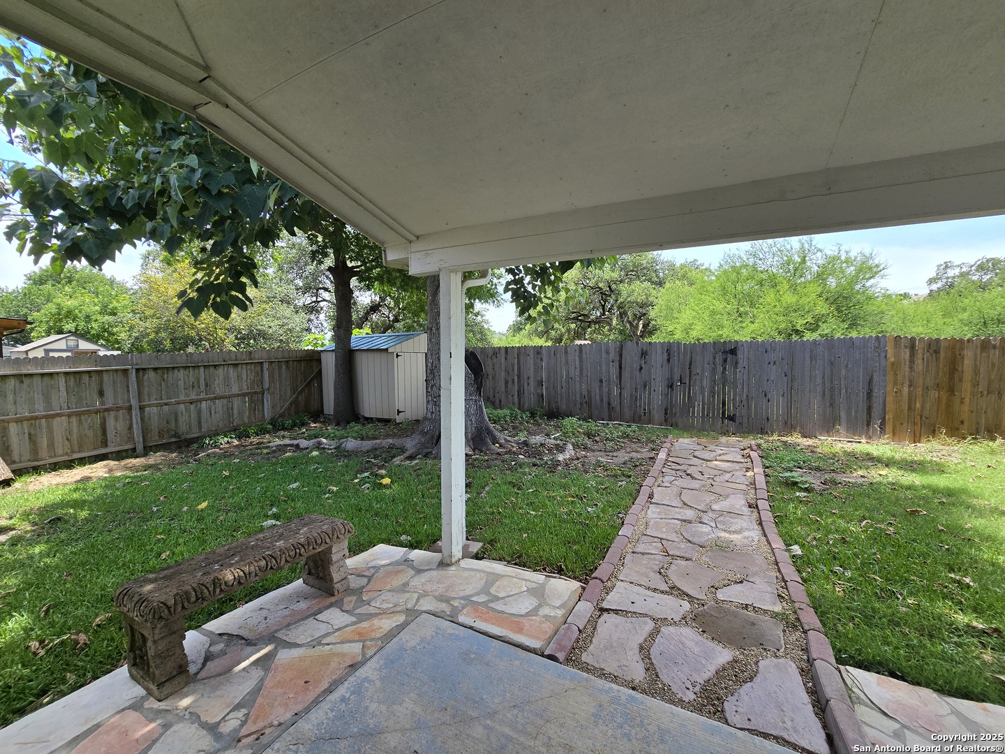 This well-kept and updated home in prestigious Iron Horse Canyon will be a joy to own. Quick access to Bandera Rd. and Loop 1604 but in the small community of Stablewood at Iron Horse Canyon. Home backs up to a Greenbelt and has a covered patio and large shade tree. Four bedrooms, office or sitting room, separate dining room, and a large island kitchen with gas cooking. Fireplace in the great room. The primary bathroom has double vanity, garden tub, and separate glassed in shower. Updates include laminate flooring to match up to the ceramic tile. HOA amenities include pool, basketball, playground, and cabana. Northside ISD schools.