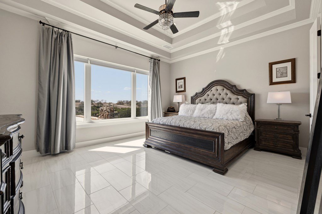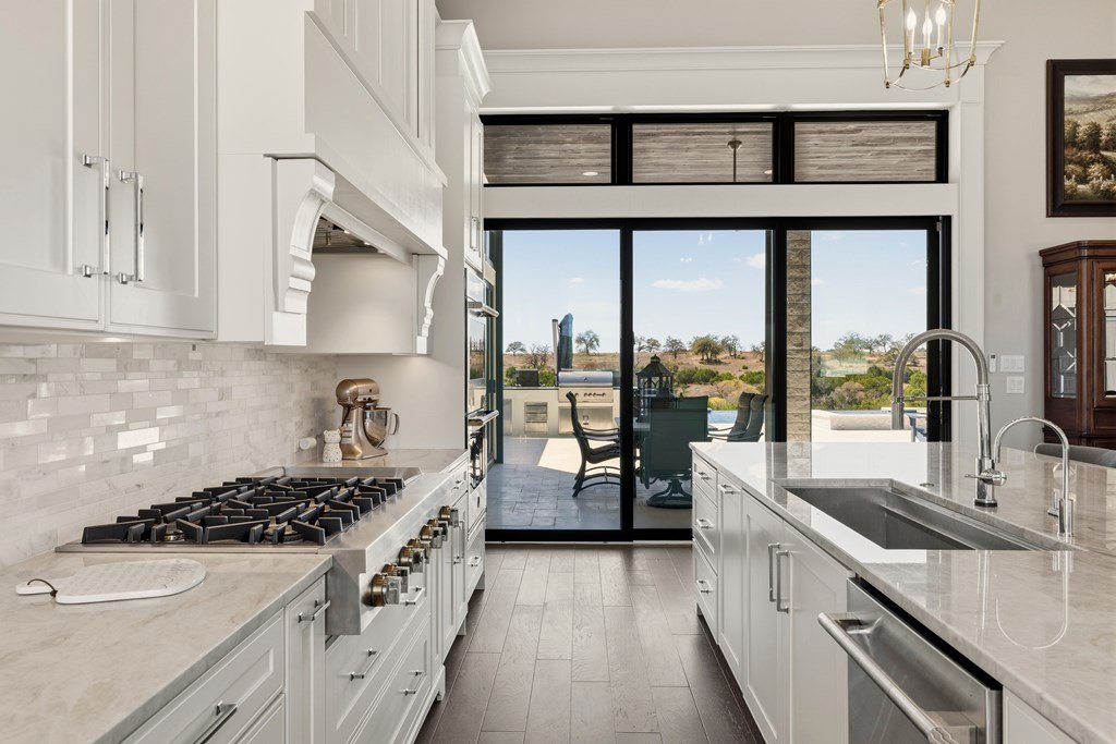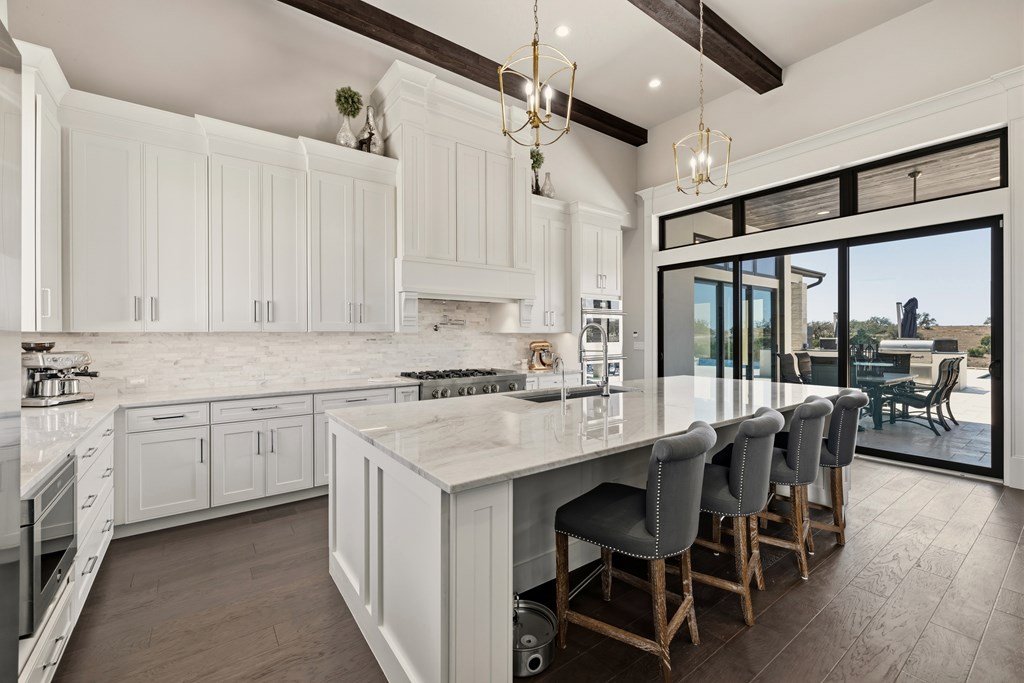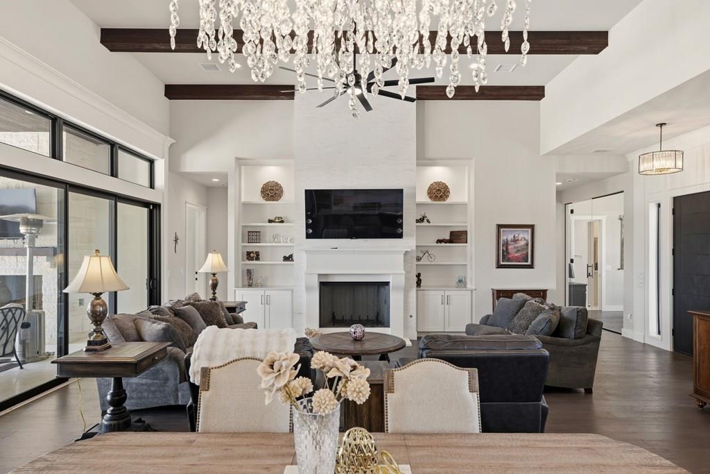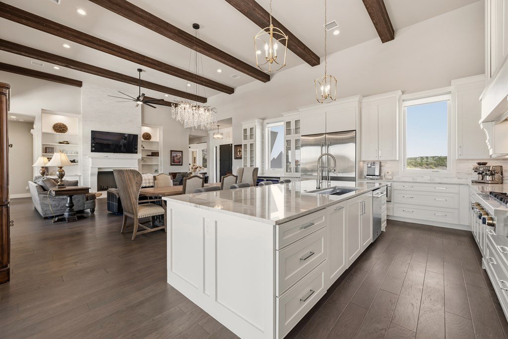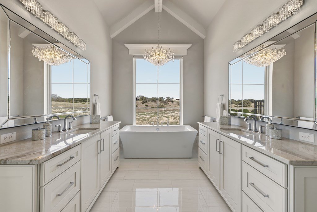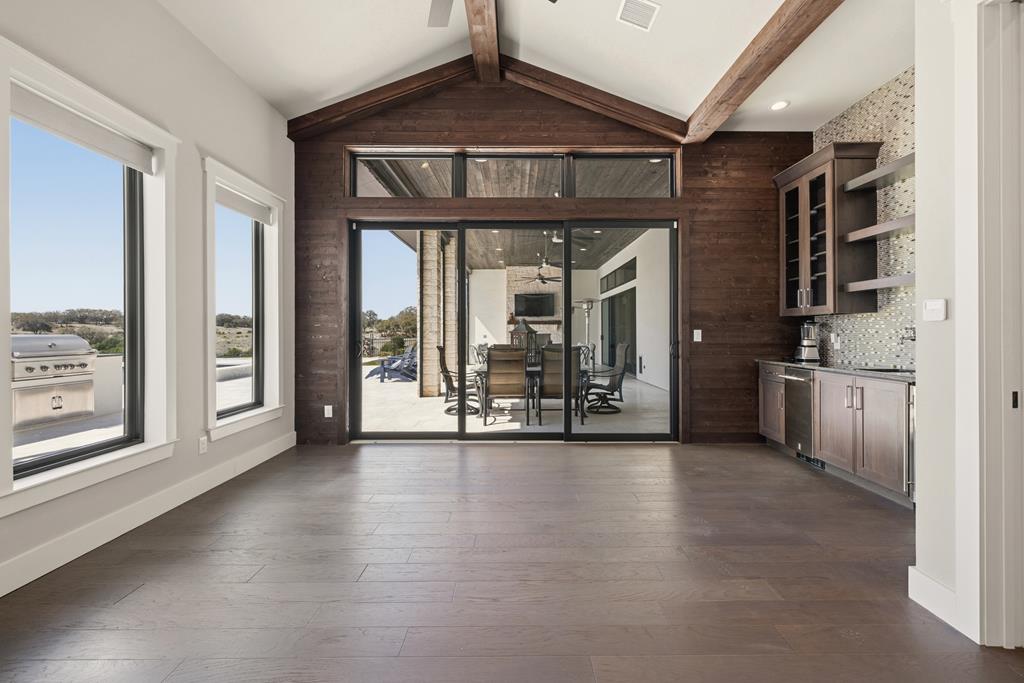 Set on over five acres in gated Loma Vista Ranch, this striking Hill Country estate unfolds as an experience, one that feels both architecturally bold and effortlessly livable from the moment you arrive. Clean lines and expansive scale create a sense of quiet sophistication, while warm hickory floors and curated finishes soften the space, inviting you to settle in and stay awhile. The home was designed for both everyday comfort and exceptional living. With four bedrooms and five baths, including a private guest suite, the layout offers flexibility without sacrificing intention. Tucked away as its own retreat, the primary suite is a true sanctuary; heated floors underfoot and a spa-inspired bath that feels more like a destination than a necessity. A glass-enclosed walk-through double shower, a freestanding soaking tub framed by picture windows and sweeping Hill Country views create a setting that is equal parts serene and indulgent. Thoughtfully designed for both beauty and function, the home features expansive custom closets and a dedicated glam room perfectly suited for elevated daily routines or full-scale hair and makeup preparation. At the heart of the home, the kitchen makes a statement. A dramatic Taj Mahal quartzite island anchors the space, surrounded by 54 inch custom maple soft-close cabinetry, a 48” propane range, double ovens, double dishwashers, dual refrigerators and a full scullery pantry designed to perform just as beautifully as it presents. Overhead, soaring ceilings and exposed beams add architectural presence, while walls of glass open seamlessly to the outdoors, blurring the line between inside and out. Step outside and the experience continues. The backyard unfolds like a private resort centered around a 21,000-gallon pool, expansive patios, an outdoor fireplace and a fully equipped outdoor kitchen, all positioned to take in uninterrupted views of the surrounding acreage. It's a space designed for gathering, unwinding, and making the most of Hill Country evenings. Wellness and security are seamlessly integrated into the home's design. A private gym offers space to recharge, while a discreet safe/IT room, hidden behind a custom bookcase, adds both function and a touch of intrigue. Above it all, a finished attic complete with its own bathroom and pre-plumbed for a kitchenette, offers endless potential for a guest retreat, studio, or private office tailored to your vision. Beyond its visible beauty, this home was built with intention at every level. Constructed in collaboration with Build Green, the owner was hands on throughout the process, resulting in a level of craftsmanship that extends far beyond what meets the eye. From 2x6 framing and LVL engineered supports to reinforced structural elements, insulated piping, and meticulous inspection oversight, every detail was thoughtfully executed. Practicality meets luxury with a climate-controlled three-car garage, a 600 foot water well, 2,500 gallon water tank and a 500 gallon buried propane tank; features designed for long-term efficiency and reliability. And just beyond the main living spaces, a gentle, spring fed creek winds along the edge of the property, adding a final layer of tranquility to this private Hill Country setting. Loma Vista Ranch further elevates the experience with a gated entrance, paved private roads, underground utilities, and access to two private property owner parks featuring picturesque ponds, walking trails, and a stocked fishing lake offering a blend of privacy, natural beauty, and thoughtfully planned community amenities. Built without compromise and designed to endure, this is more than a home, it's a retreat, a statement and a place to create a lasting legacy.