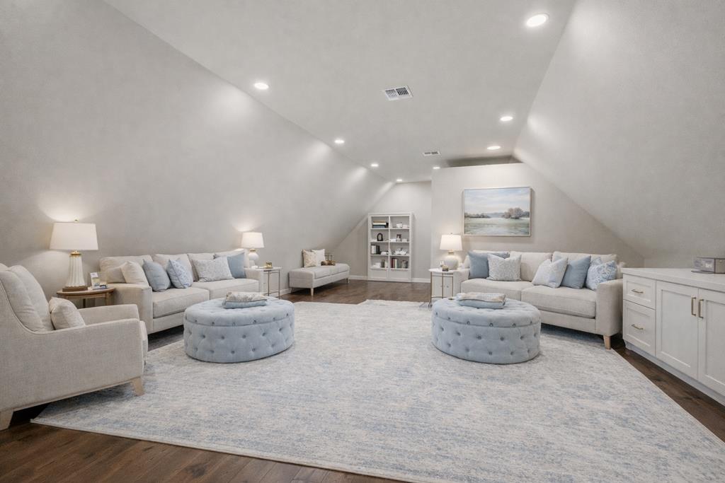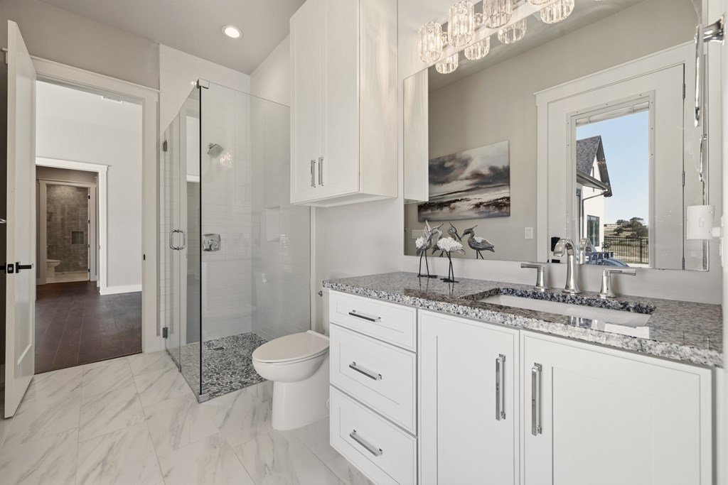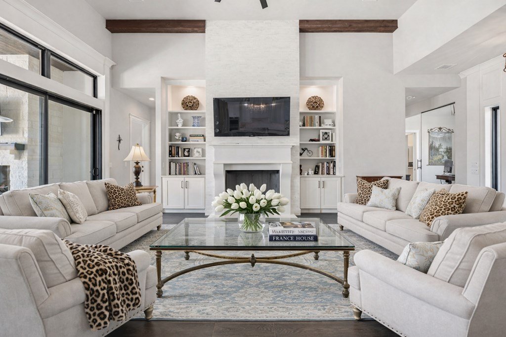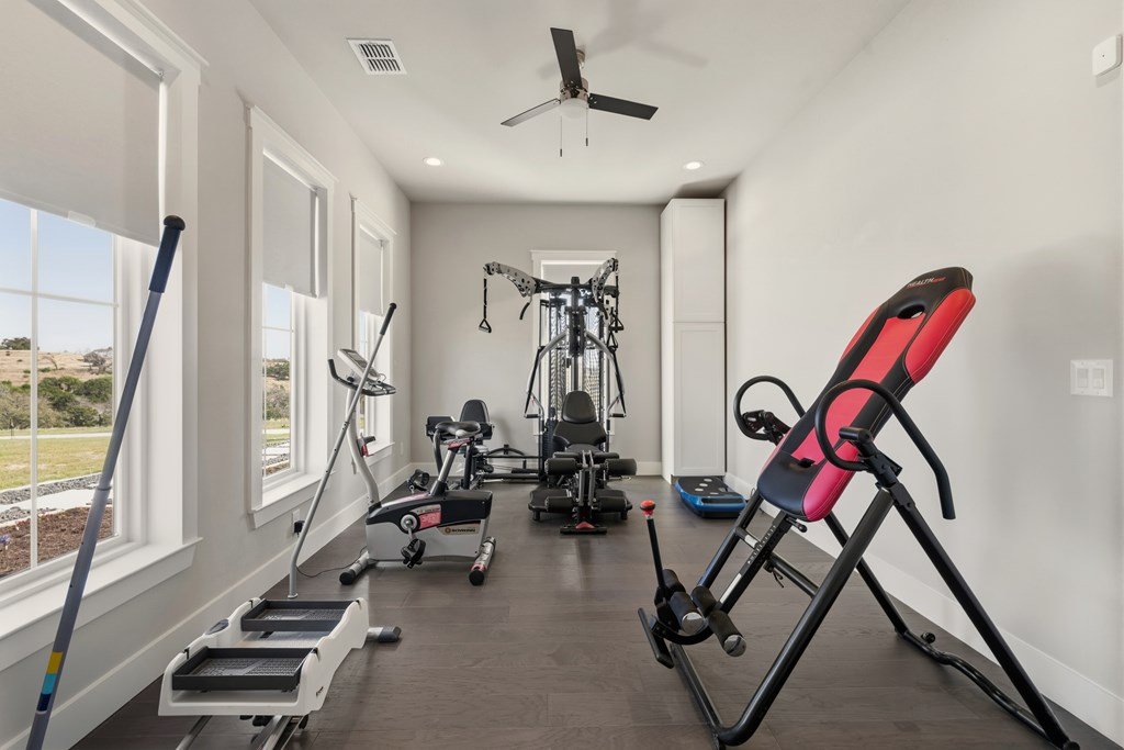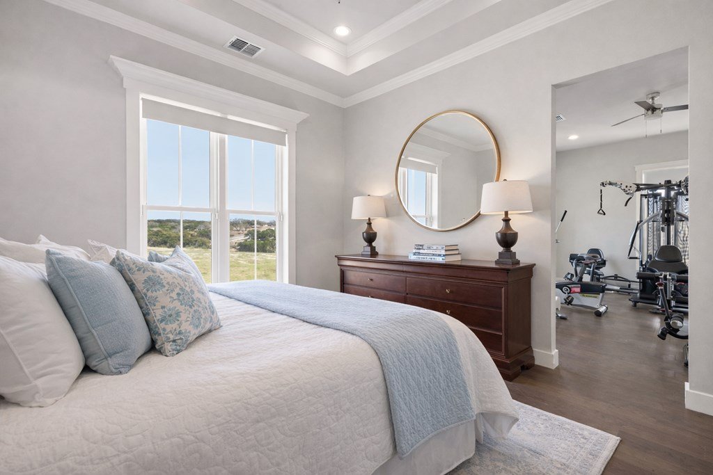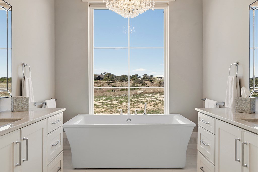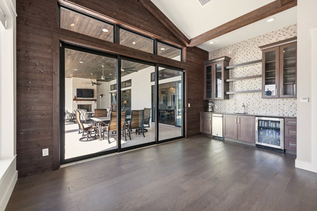 Set on over five acres in gated Loma Vista Ranch, this striking Hill Country estate unfolds as an experience, one that feels both architecturally bold and effortlessly livable from the moment you arrive. Clean lines and expansive scale create a sense of quiet sophistication, while warm hickory floors and curated finishes soften the space, inviting you to settle in and stay awhile. The home was designed for both everyday comfort and exceptional living. With four bedrooms and five baths, including a private guest suite, the layout offers flexibility without sacrificing intention. Tucked away as its own retreat, the primary suite is a true sanctuary; heated floors underfoot and a spa-inspired bath that feels more like a destination than a necessity. A glass-enclosed walk-through double shower, a freestanding soaking tub framed by picture windows and sweeping Hill Country views create a setting that is equal parts serene and indulgent. Thoughtfully designed for both beauty and function, the home features expansive custom closets and a dedicated glam room perfectly suited for elevated daily routines or full-scale hair and makeup preparation. At the heart of the home, the kitchen makes a statement. A dramatic Taj Mahal quartzite island anchors the space, surrounded by 54 inch custom maple soft-close cabinetry, a 48” propane range, double ovens, double dishwashers, dual refrigerators and a full scullery pantry designed to perform just as beautifully as it presents. Overhead, soaring ceilings and exposed beams add architectural presence, while walls of glass open seamlessly to the outdoors, blurring the line between inside and out. Step outside and the experience continues. The backyard unfolds like a private resort centered around a 21,000-gallon pool, expansive patios, an outdoor fireplace and a fully equipped outdoor kitchen, all positioned to take in uninterrupted views of the surrounding acreage. It's a space designed for gathering, unwinding, and making the most of Hill Country evenings. Wellness and security are seamlessly integrated into the home's design. A private gym offers space to recharge, while a discreet safe/IT room, hidden behind a custom bookcase, adds both function and a touch of intrigue. Above it all, a finished attic complete with its own bathroom and pre-plumbed for a kitchenette, offers endless potential for a guest retreat, studio, or private office tailored to your vision. Beyond its visible beauty, this home was built with intention at every level. Constructed in collaboration with Build Green, the owner was hands on throughout the process, resulting in a level of craftsmanship that extends far beyond what meets the eye. From 2x6 framing and LVL engineered supports to reinforced structural elements, insulated piping, and meticulous inspection oversight, every detail was thoughtfully executed. Practicality meets luxury with a climate-controlled three-car garage, a 600 foot water well, 2,500 gallon water tank and a 500 gallon buried propane tank; features designed for long-term efficiency and reliability. And just beyond the main living spaces, a gentle, spring fed creek winds along the edge of the property, adding a final layer of tranquility to this private Hill Country setting. Loma Vista Ranch further elevates the experience with a gated entrance, paved private roads, underground utilities, and access to two private property owner parks featuring picturesque ponds, walking trails, and a stocked fishing lake offering a blend of privacy, natural beauty, and thoughtfully planned community amenities. Built without compromise and designed to endure, this is more than a home, it's a retreat, a statement and a place to create a lasting legacy.
