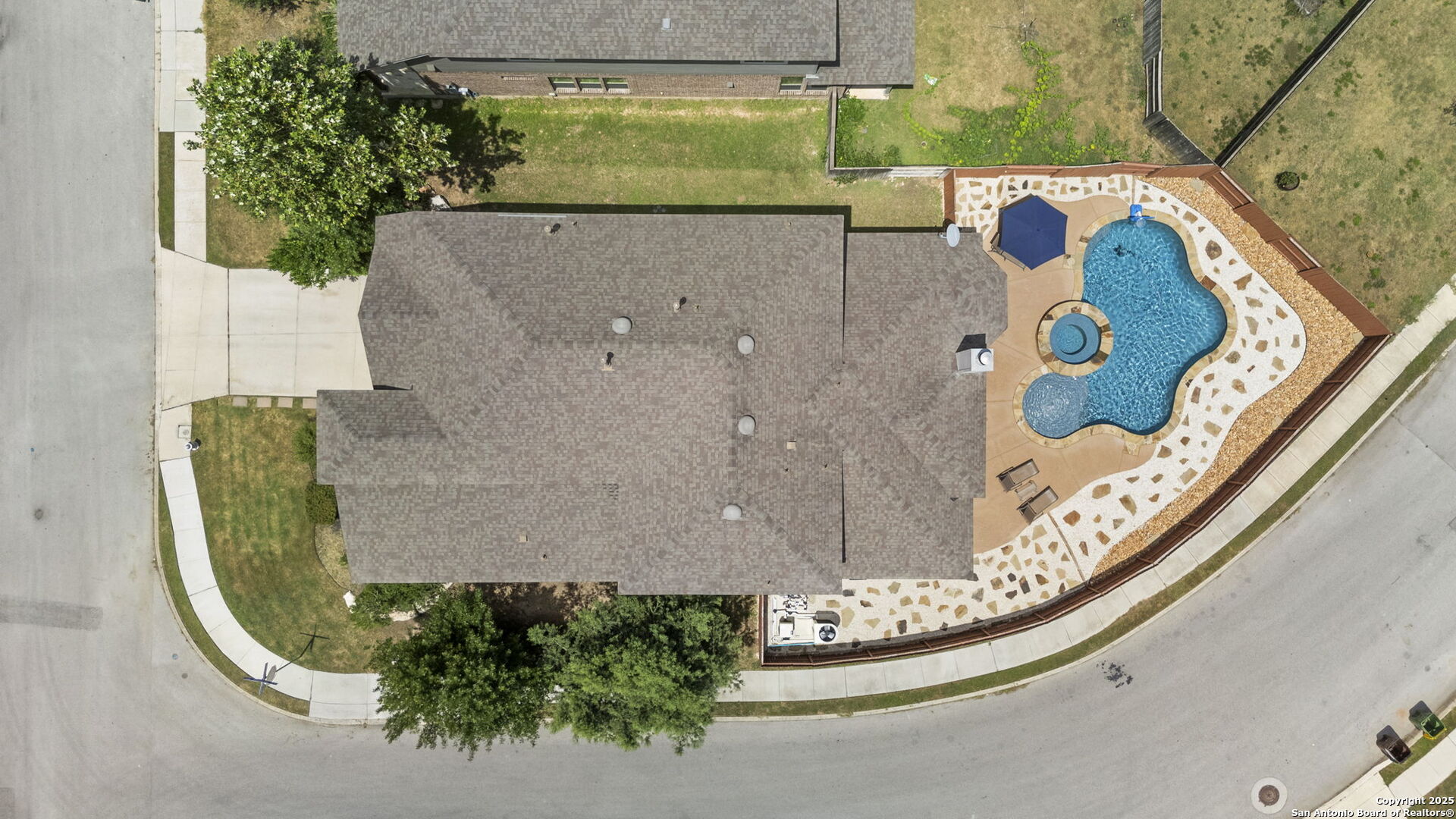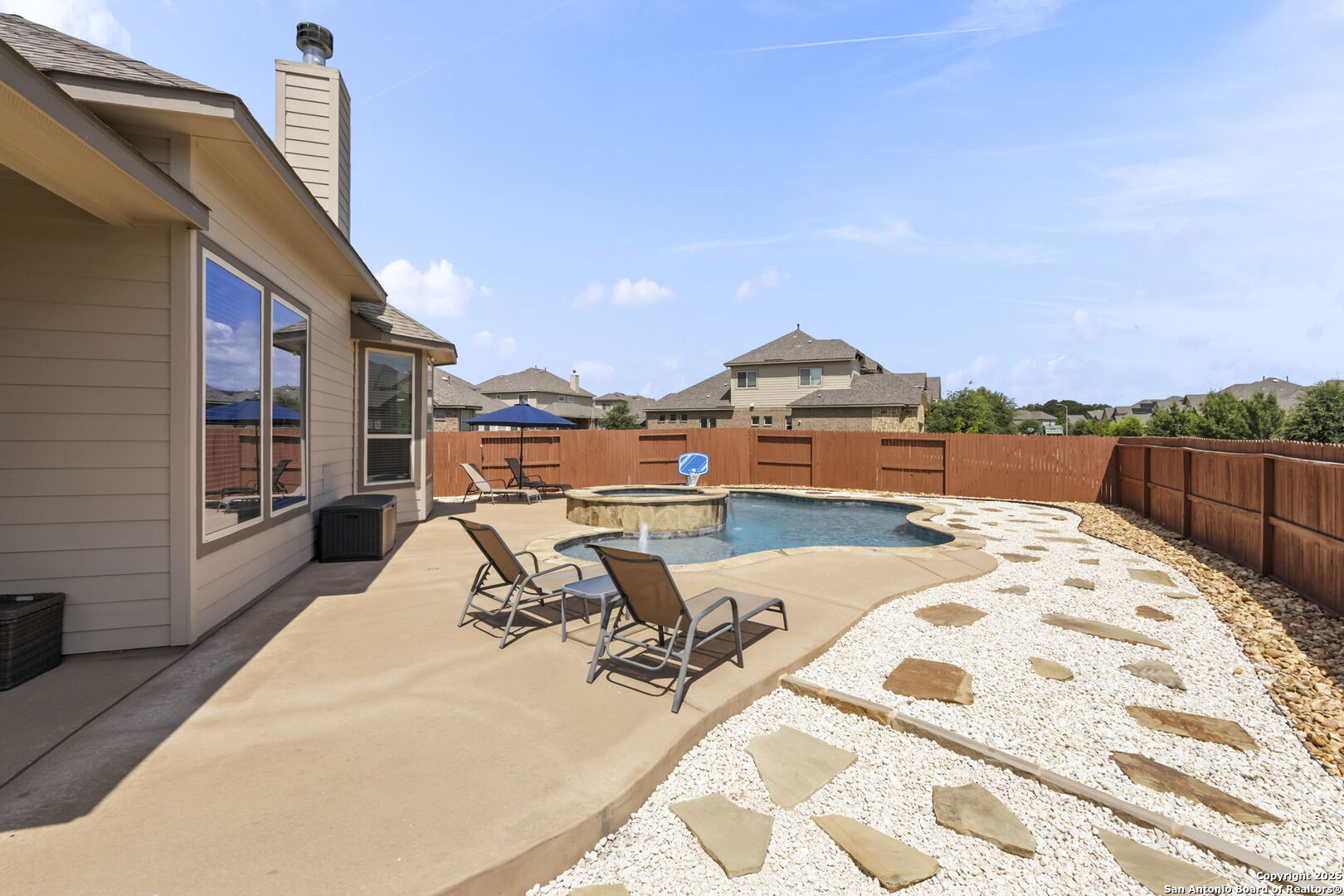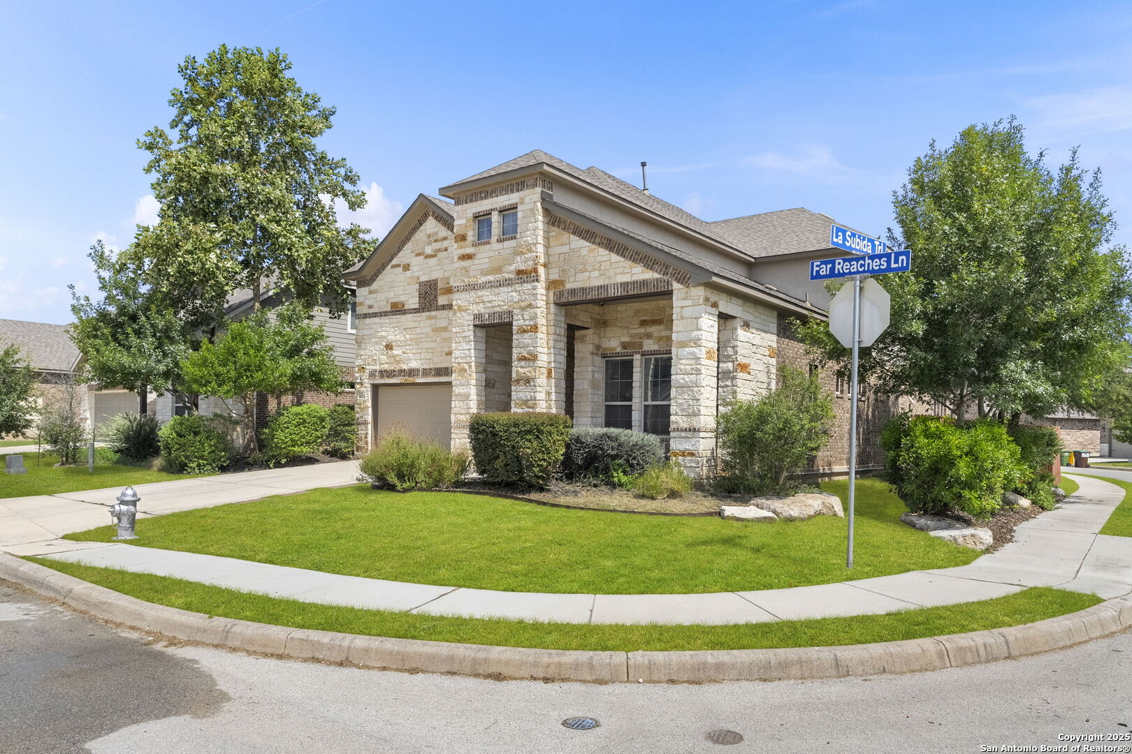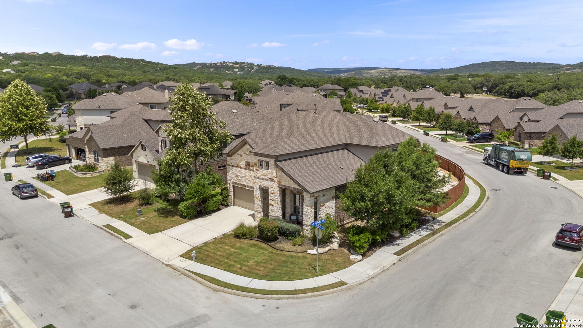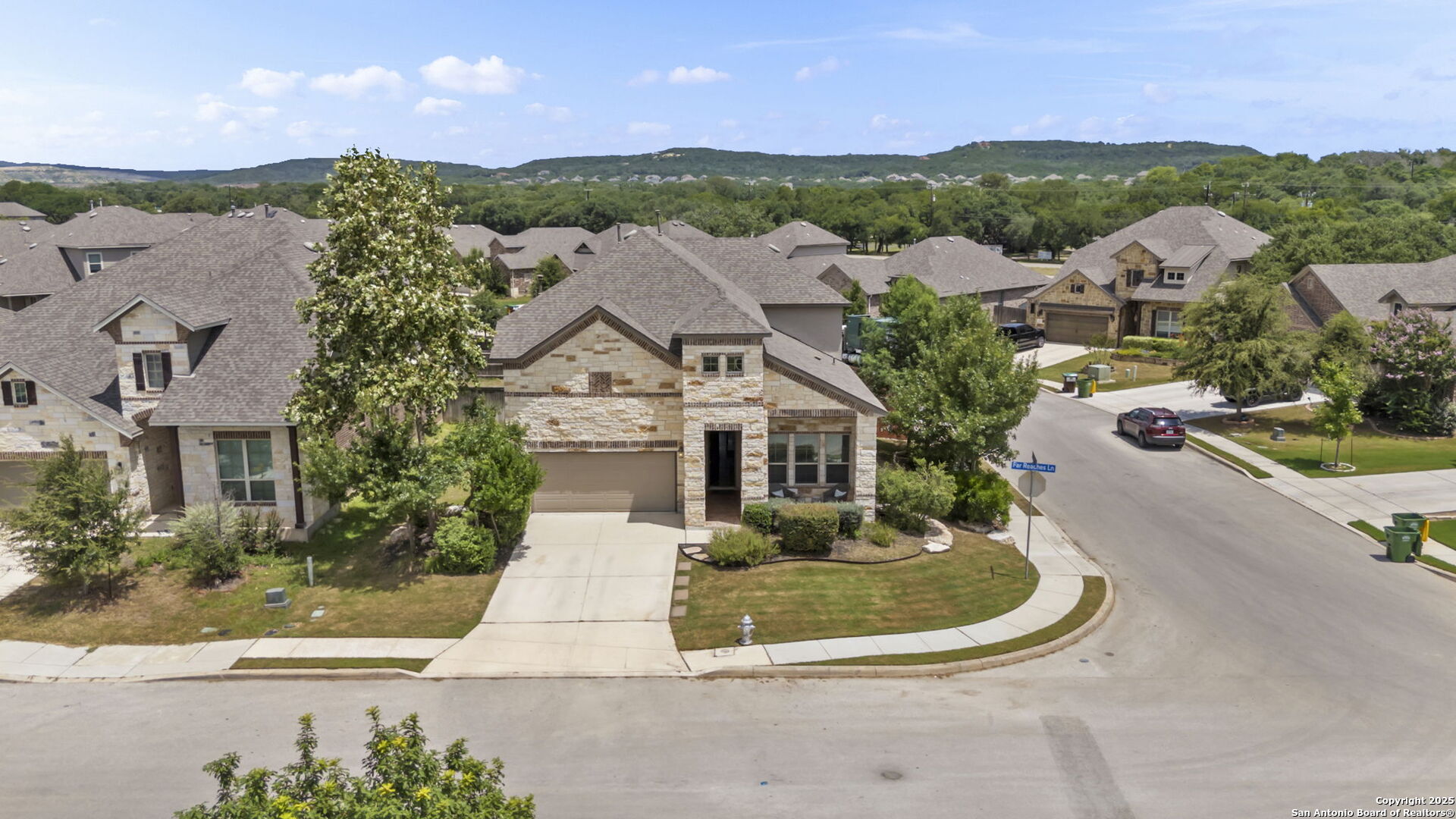 Sophistication and comfort meet in this stunning 4-bedroom, 3.5-bathroom home nestled on a beautifully landscaped corner lot in Helotes. Designed for both everyday living and elegant entertaining, the grand open layout features soaring ceilings, abundant natural light, and striking curb appeal that instantly captures attention. Inside, the spacious kitchen is a chef's dream-complete with stainless steel appliances, an inlay gas stove, built-in microwave and oven, ample cabinetry, generous countertop space, and a large island perfect for gatherings. The formal dining room and cozy living area with a fireplace make hosting effortless, while the dedicated office provides a quiet space to work from home. Retreat to the luxurious primary suite featuring a spa-like en suite bathroom with dual vanities, a soaking garden tub, and a separate walk-in shower. Upstairs, enjoy a loft area, media/movie room, and built-in desk-ideal for homework, planning, or creative projects. Step outside to your private xeriscaped oasis. A shimmering pool with a spa, spacious covered patio, and lush greenery offer a peaceful retreat or the perfect backdrop for summer get-togethers. Situated just north of Highway 16/Bandera Road, this home combines a relaxed country lifestyle with convenient access to shopping, dining, and top-rated schools in a rapidly growing area. Experience luxury living with space to unwind, entertain, and truly feel at home.