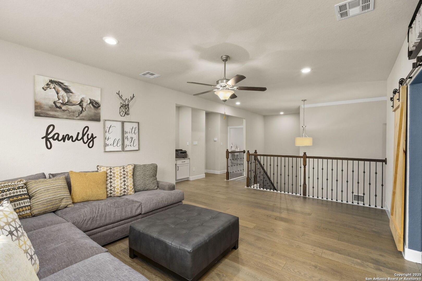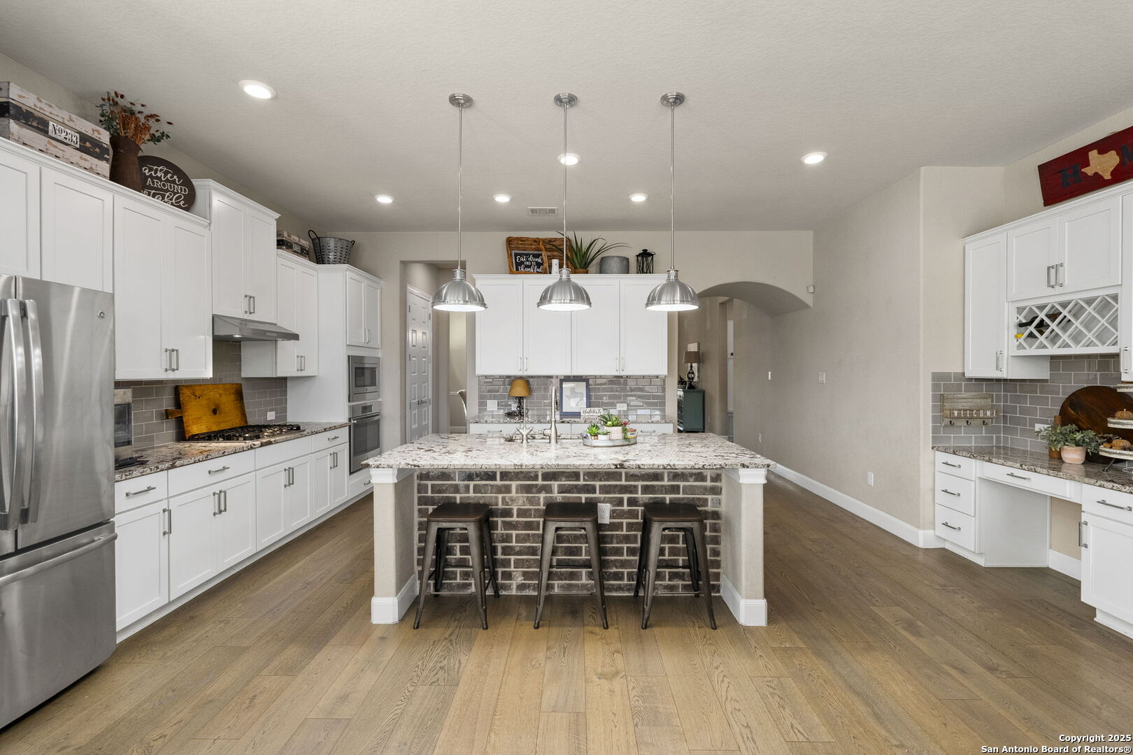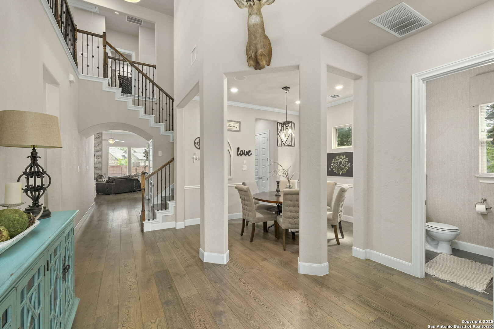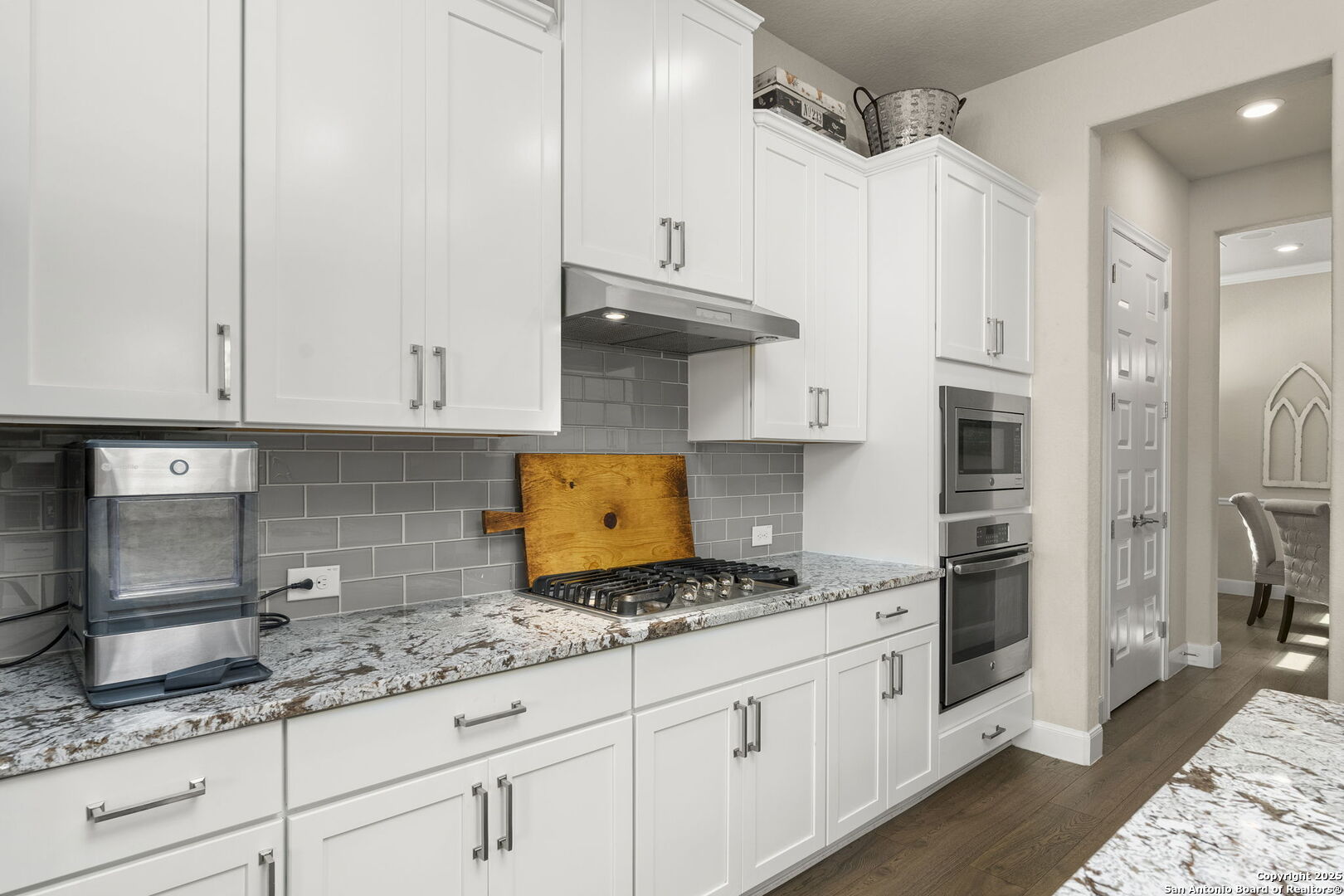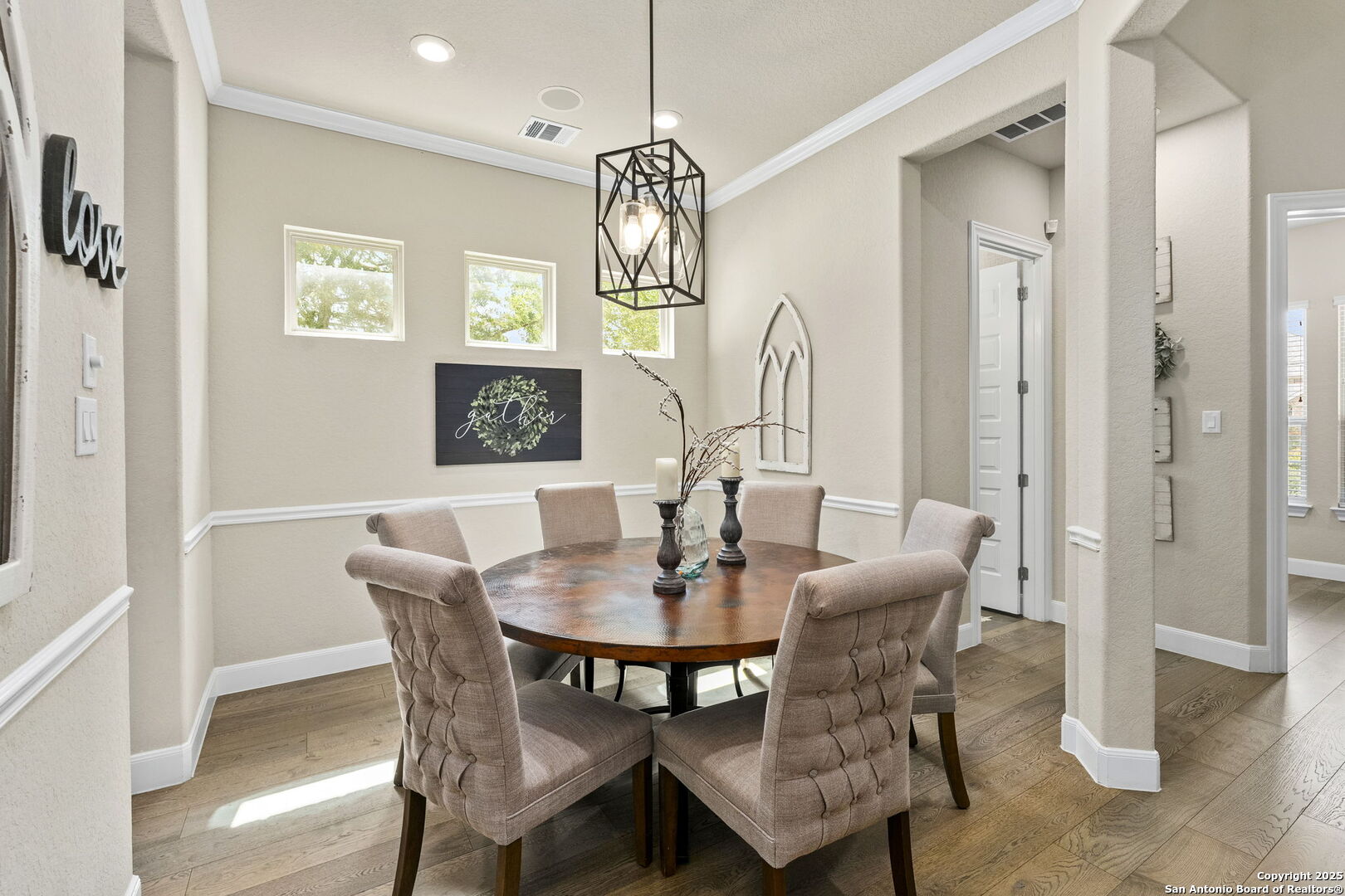 Sophistication and comfort meet in this stunning 4-bedroom, 3.5-bathroom home nestled on a beautifully landscaped corner lot in Helotes. Designed for both everyday living and elegant entertaining, the grand open layout features soaring ceilings, abundant natural light, and striking curb appeal that instantly captures attention. Inside, the spacious kitchen is a chef's dream-complete with stainless steel appliances, an inlay gas stove, built-in microwave and oven, ample cabinetry, generous countertop space, and a large island perfect for gatherings. The formal dining room and cozy living area with a fireplace make hosting effortless, while the dedicated office provides a quiet space to work from home. Retreat to the luxurious primary suite featuring a spa-like en suite bathroom with dual vanities, a soaking garden tub, and a separate walk-in shower. Upstairs, enjoy a loft area, media/movie room, and built-in desk-ideal for homework, planning, or creative projects. Step outside to your private xeriscaped oasis. A shimmering pool with a spa, spacious covered patio, and lush greenery offer a peaceful retreat or the perfect backdrop for summer get-togethers. Situated just north of Highway 16/Bandera Road, this home combines a relaxed country lifestyle with convenient access to shopping, dining, and top-rated schools in a rapidly growing area. Experience luxury living with space to unwind, entertain, and truly feel at home.