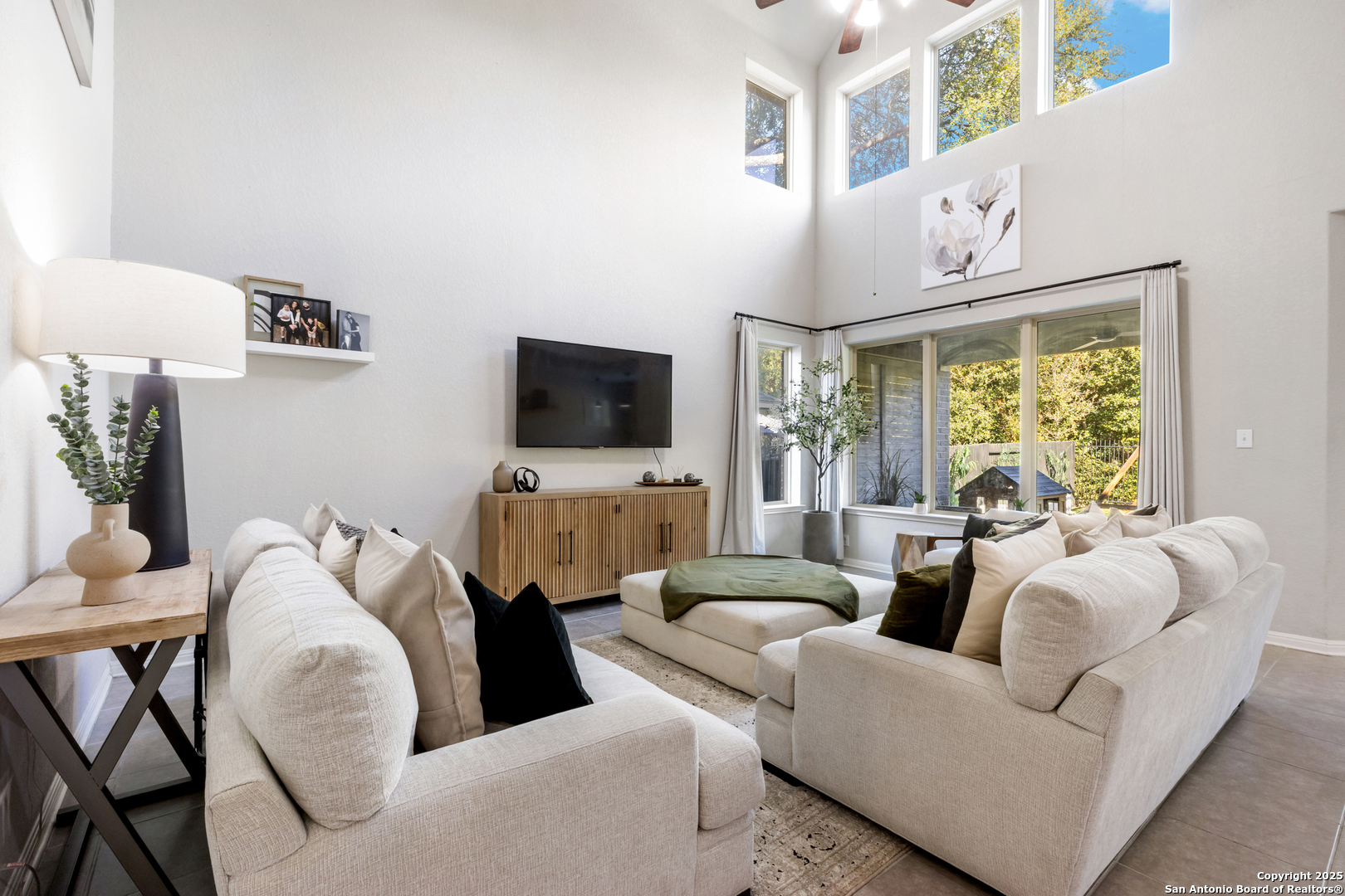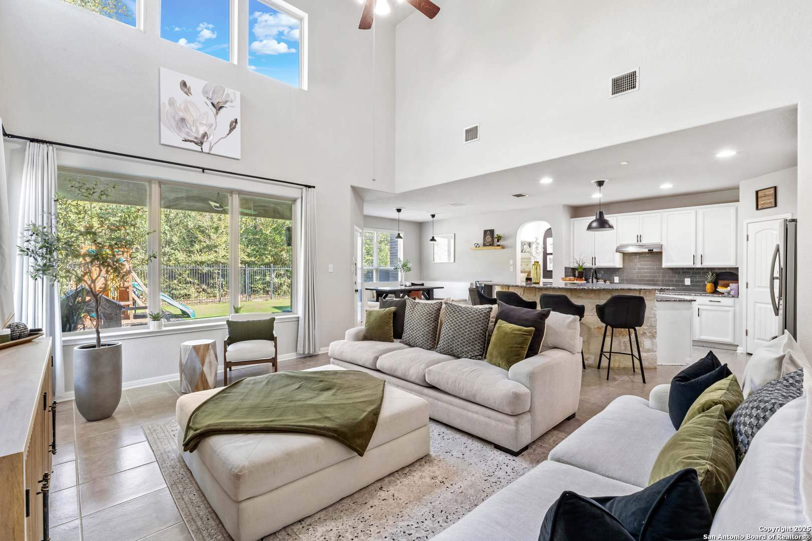 Exquisite Fully Furnished Home in the Prestigious Gated Community of Triana - Helotes, TX Experience refined living in this beautifully appointed, fully furnished residence nestled within the exclusive gated enclave of Triana in Helotes. Perfectly positioned along a tranquil greenbelt, this home offers the ideal combination of privacy, sophistication, and natural beauty. Step inside to discover soaring high ceilings, an open-concept layout, and designer finishes throughout. The gourmet kitchen and thoughtfully curated interiors create a seamless blend of comfort and elegance, ideal for both everyday living and entertaining. The backyard oasis features premium turf landscaping for easy maintenance and year-round appeal-an inviting space for outdoor relaxation and gatherings. This remarkable home embodies the essence of luxury and convenience, all within one of Helotes' most sought-after gated communities. Opportunities like this are rare-schedule your private showing today before it's gone.