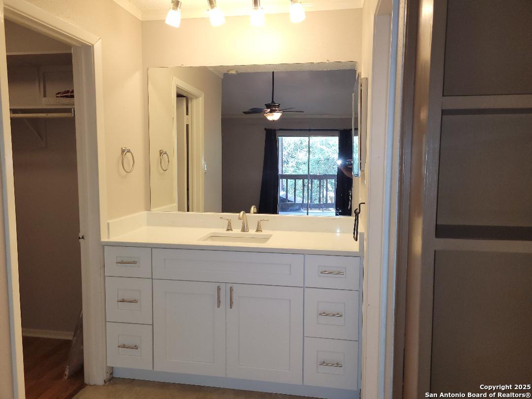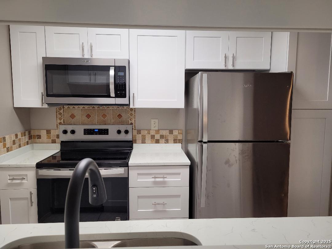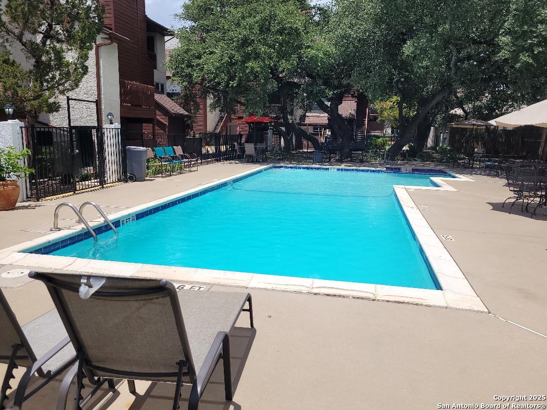 Very nice and spacious 1 bdrm/1 1/2 bath two level condo at Perrin Beitel and Harry Wurzbach. New kitchen cabinets, countertops and stainless steel appliances as well as new cabinets and countertop in master bath. Washer and dryer included. Patio overlooks the pool and BBQ area. Water, trash, sewer, common area maintenance and exterior pest control included.