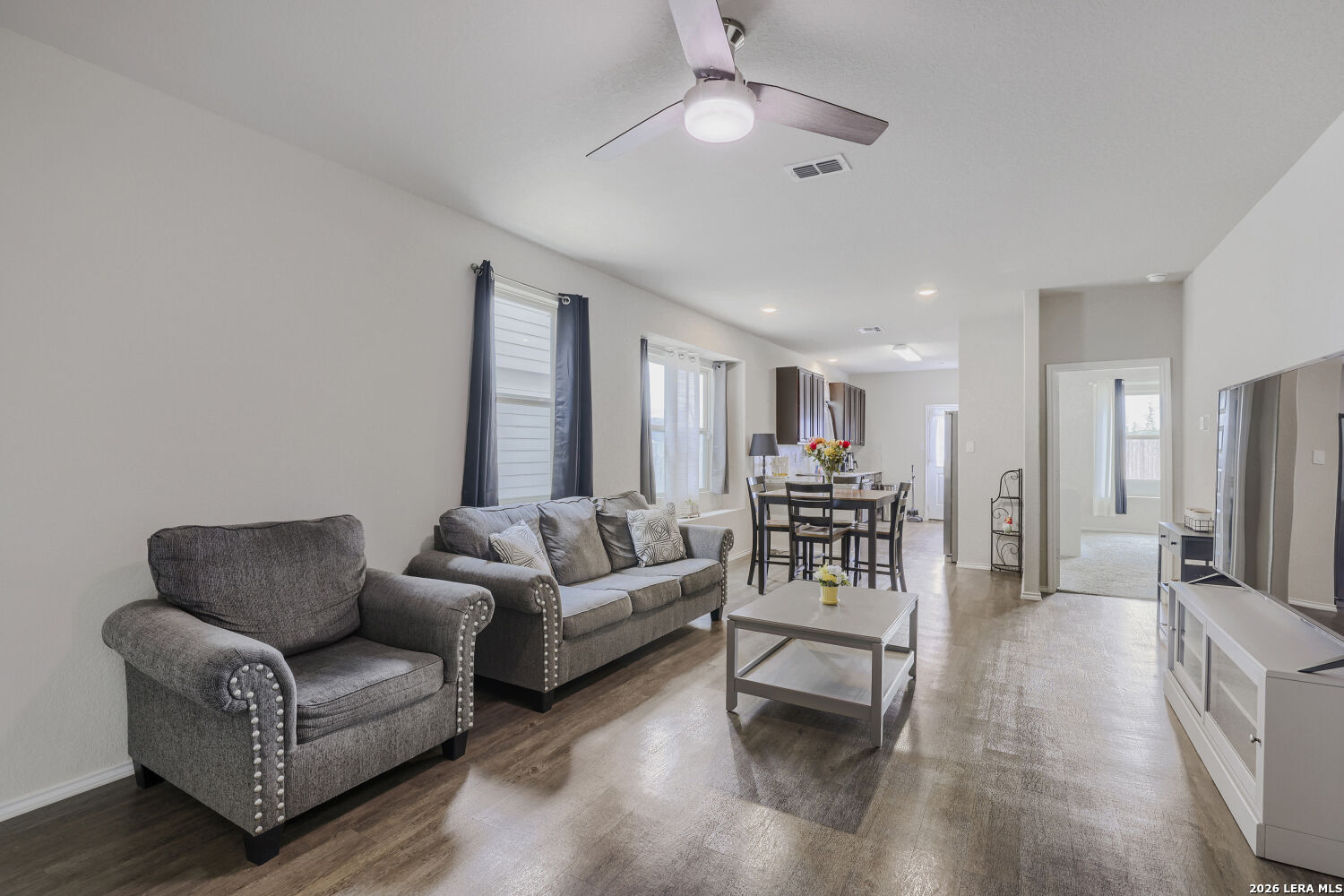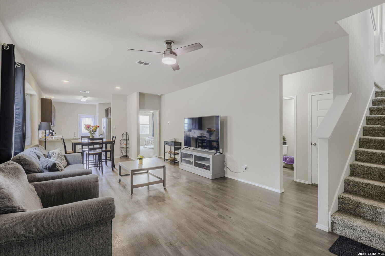 Welcome to this well-maintained two-story home designed for comfortable living and easy entertaining. The main level features an open-concept layout where the spacious living area flows seamlessly into the dining and kitchen combo-perfect for gatherings or everyday life. The primary suite is conveniently located on the first floor, offering privacy and ease, while the second level boasts a versatile loft or second living area at the top of the stairs-ideal for a game room, media space, or home office. Additional bedrooms are thoughtfully positioned upstairs, providing plenty of room for family or guests. Step outside to a fully fenced backyard, perfect for relaxing, entertaining, or letting pets play. Located just minutes from major highways, this home offers both comfort and convenience for your daily commute and nearby amenities. Don't miss your chance to see this wonderful home-schedule your showing today!