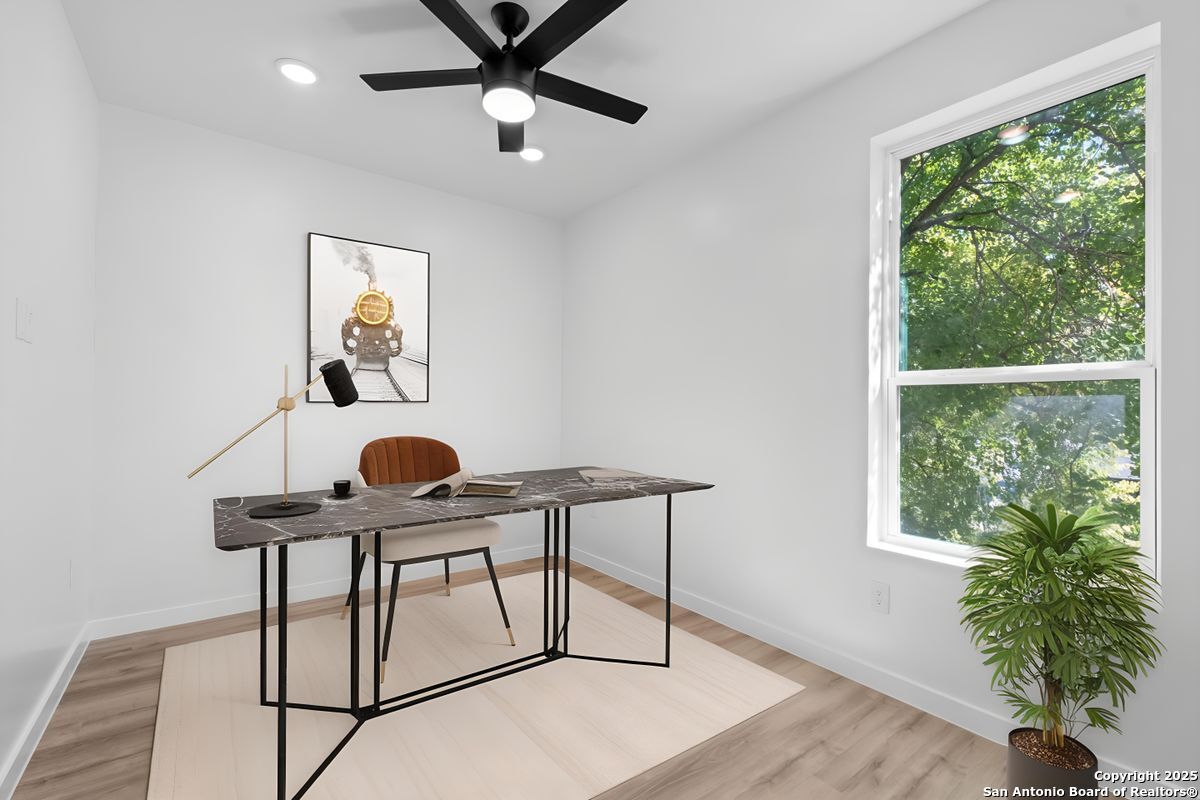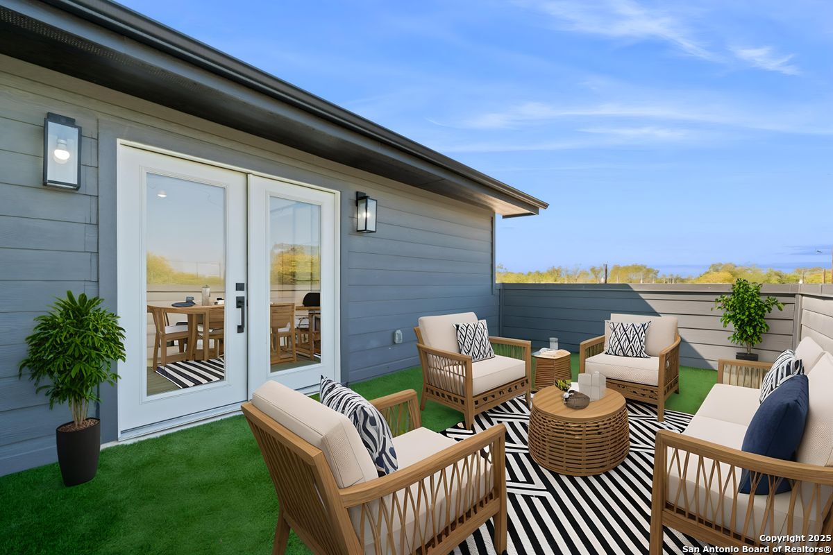 Welcome to 106 Bank Street, a stunning three-story end unit townhome located in the heart of San Antonio's vibrant 78204 Lone Star Arts District. The first floor offers a versatile space that can serve as a guest suite, home office, or additional living area, complete with a full bathroom for convenience and privacy. Moving up to the main living level, you'll find an open-concept layout where the living and dining areas flow seamlessly into a stylish kitchen featuring an island, custom cabinetry, and upscale finishes perfect for entertaining or enjoying everyday family life. Natural light fills the space through large windows, creating an inviting and airy atmosphere. The second level also has a secondary bedroom and a full bathroom. The upper level is dedicated to the primary suite, a peaceful retreat with a private bath and generous closet space, providing comfort and privacy at the end of the day. Throughout the home, you'll find high ceilings, modern design touches, and abundant natural light, giving each space a bright and welcoming feel. The top level also offers a walk out fully turfed balcony/patio for outdoor living. A private one-car garage adds convenience, while the location offers easy access to downtown, restaurants, entertainment, and local amenities. Unit 101 at 106 Bank Street combines contemporary comfort, thoughtful design, and urban convenience, making it the ideal choice for anyone looking to enjoy elevated city living.