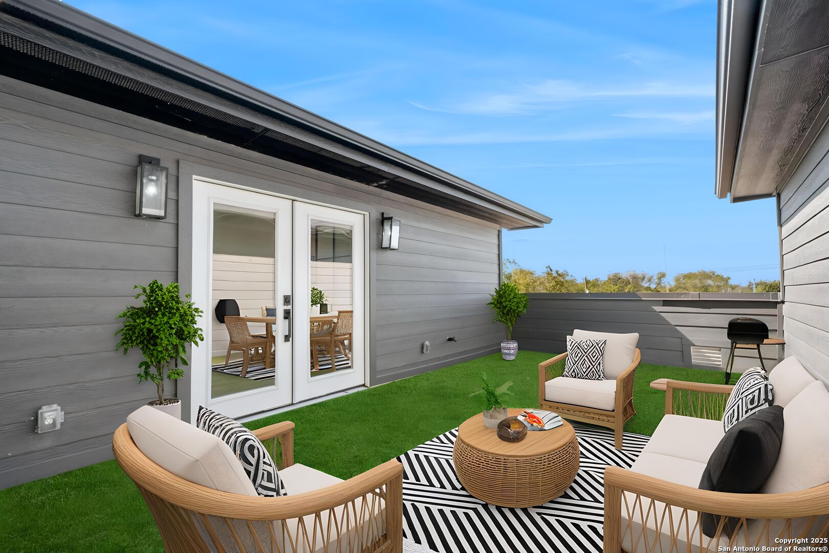 Welcome to 106 Bank Street, a stunning three-story end unit townhome located in the heart of San Antonio's vibrant 78204 Lone Star Arts District. The first floor offers a versatile space that can serve as a guest suite, home office, or additional living area, complete with a full bathroom for convenience and privacy. Moving up to the main living level, you'll find an open-concept layout where the living and dining areas flow seamlessly into a stylish kitchen featuring an island, custom cabinetry, and upscale finishes perfect for entertaining or enjoying everyday family life. Natural light fills the space through large windows, creating an inviting and airy atmosphere. The second level also has a secondary bedroom and a full bathroom. The upper level is dedicated to the primary suite, a peaceful retreat with a private bath and generous closet space, providing comfort and privacy at the end of the day. Throughout the home, you'll find high ceilings, modern design touches, and abundant natural light, giving each space a bright and welcoming feel. The top level also offers a walk out fully turfed balcony/patio for outdoor living. A private one-car garage adds convenience, while the location offers easy access to downtown, restaurants, entertainment, and local amenities. Unit 103 at 106 Bank Street combines contemporary comfort, thoughtful design, and urban convenience, making it the ideal choice for anyone looking to enjoy elevated city living.