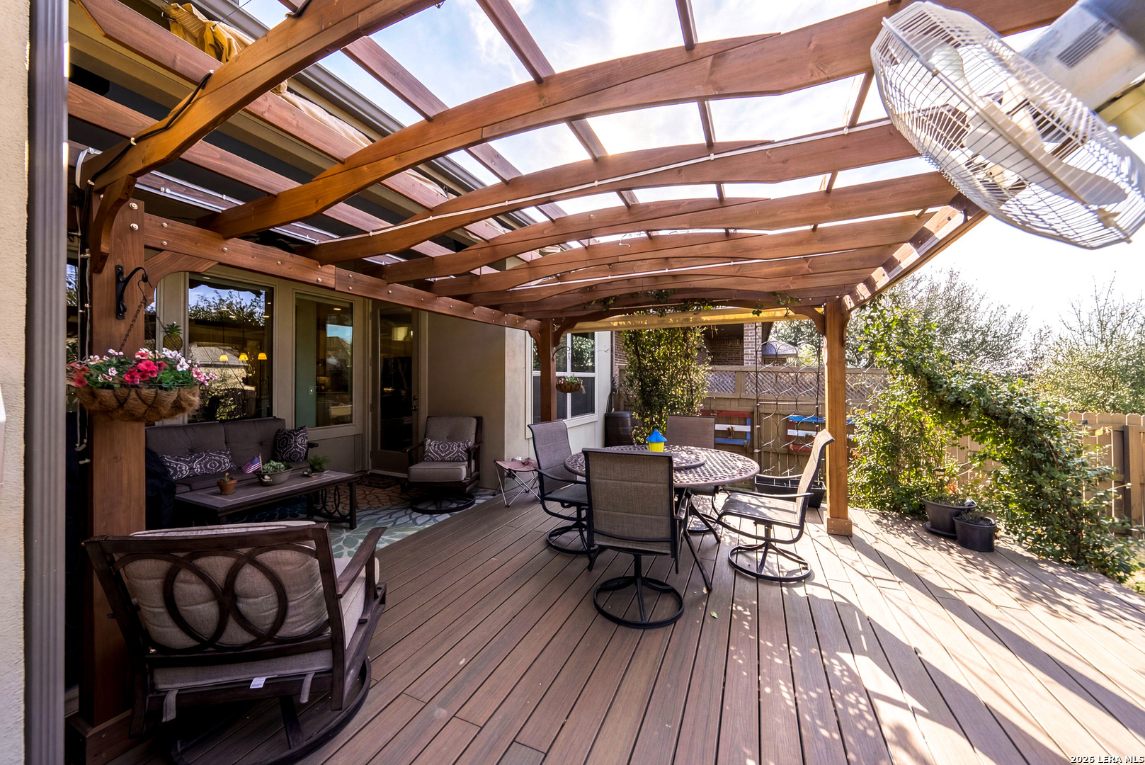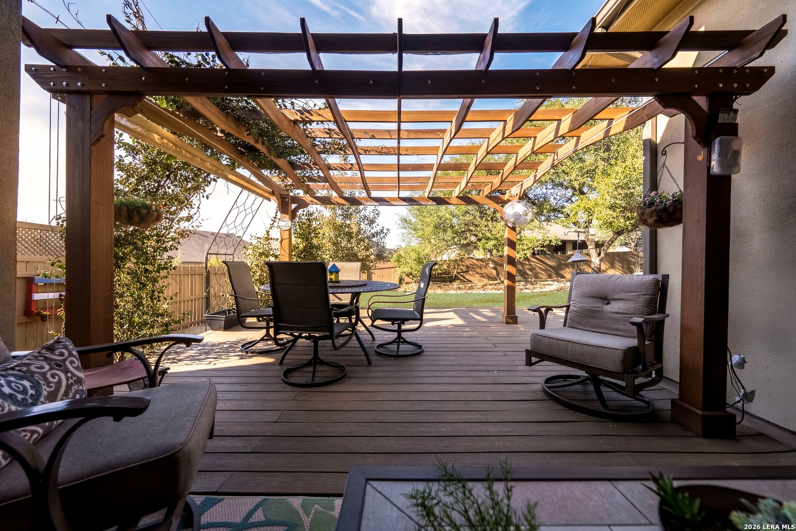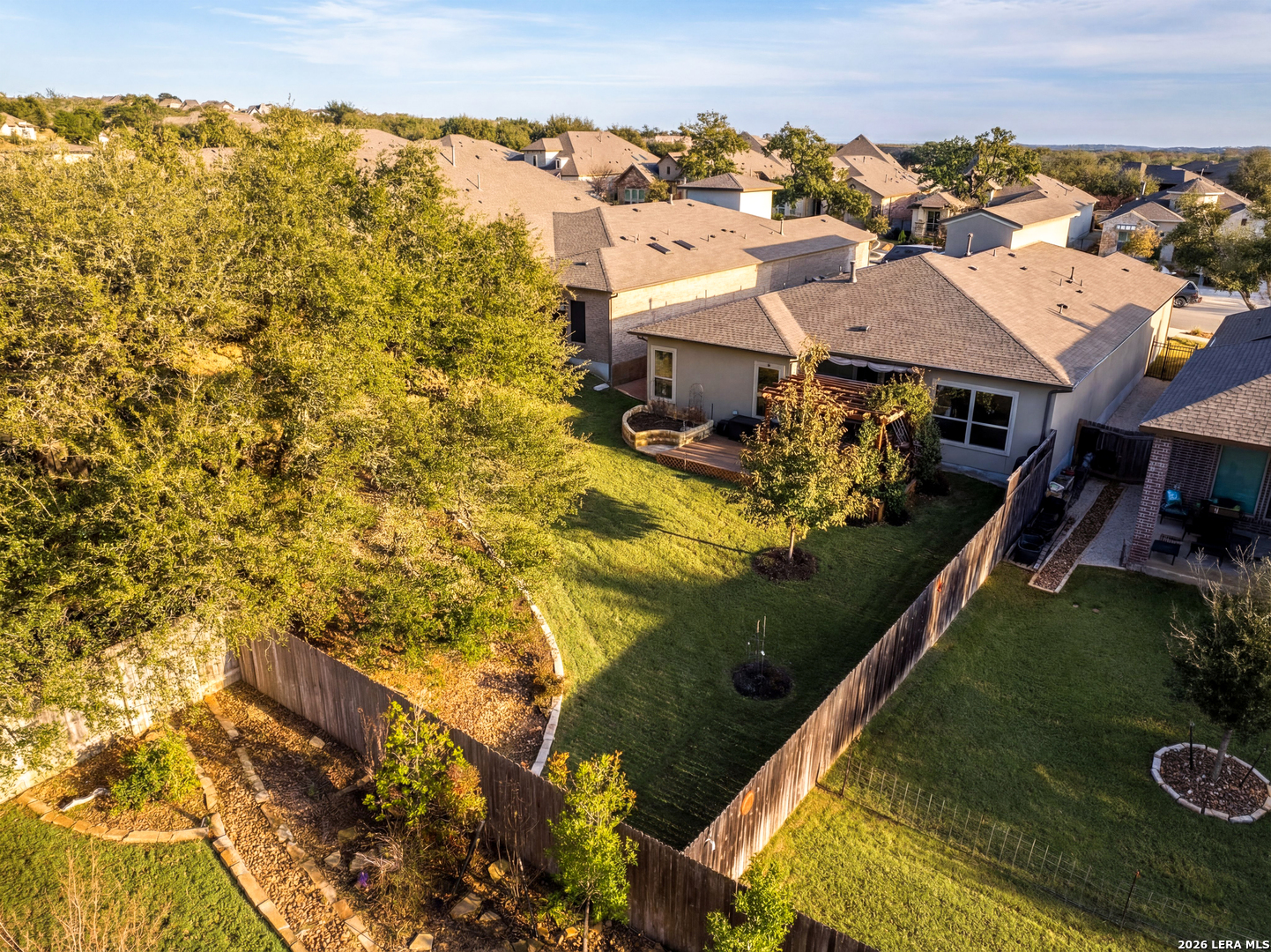 Thoughtfully upgraded and meticulously maintained, this low-maintenance Boerne home offers comfort, reliability, and peace of mind with a whole-home commercial generator and no MUD tax. Inside, you'll find luxury vinyl plank flooring, a spacious kitchen with oversized island, pull-out cabinetry systems, pot filler, beverage cooler, enlarged pantry, reverse osmosis system, and water softener. The home is truly turnkey with refrigerator, washer, and dryer included. A separate private guest suite provides ideal flexibility for visitors, multigenerational living, or a dedicated office space. Outdoor living shines with a screened courtyard, large vinyl deck with pergola and retractable sunshade, raised stone garden beds, extensive irrigation, and mature oak trees with lighting designed for year-round enjoyment without constant upkeep. Additional features include insulated garage walls and ceiling, epoxy-coated garage and courtyard floors, ceiling-mounted storage, attic decking with lighting, hot water circulation system, and custom built-ins. This is a rare opportunity to enjoy refined, lock-and-leave Hill Country living just minutes from downtown Boerne.