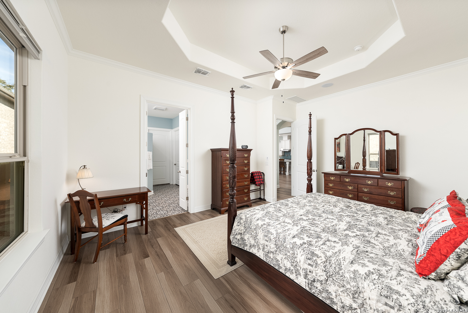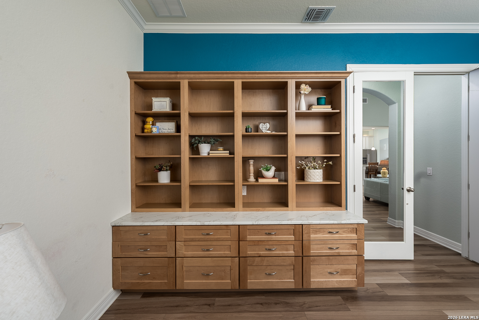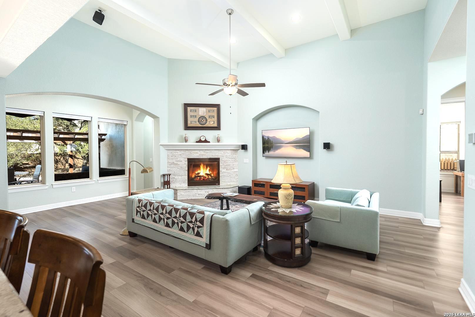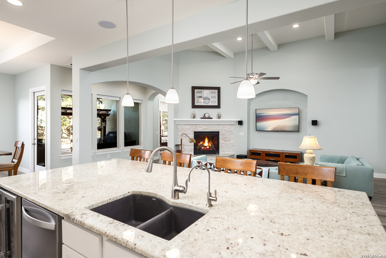Thoughtfully upgraded and meticulously maintained, this low-maintenance Boerne home offers comfort, reliability, and peace of mind with a whole-home commercial generator and no MUD tax. Inside, you'll find luxury vinyl plank flooring, a spacious kitchen with oversized island, pull-out cabinetry systems, pot filler, beverage cooler, enlarged pantry, reverse osmosis system, and water softener. The home is truly turnkey with refrigerator, washer, and dryer included. A separate private guest suite provides ideal flexibility for visitors, multigenerational living, or a dedicated office space. Outdoor living shines with a screened courtyard, large vinyl deck with pergola and retractable sunshade, raised stone garden beds, extensive irrigation, and mature oak trees with lighting designed for year-round enjoyment without constant upkeep. Additional features include insulated garage walls and ceiling, epoxy-coated garage and courtyard floors, ceiling-mounted storage, attic decking with lighting, hot water circulation system, and custom built-ins. This is a rare opportunity to enjoy refined, lock-and-leave Hill Country living just minutes from downtown Boerne.