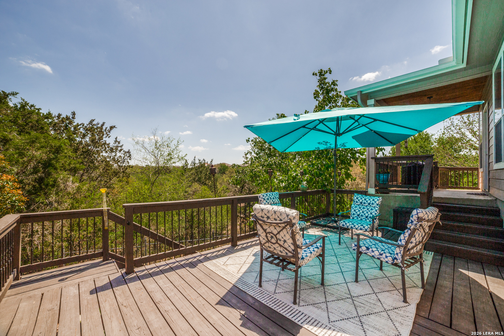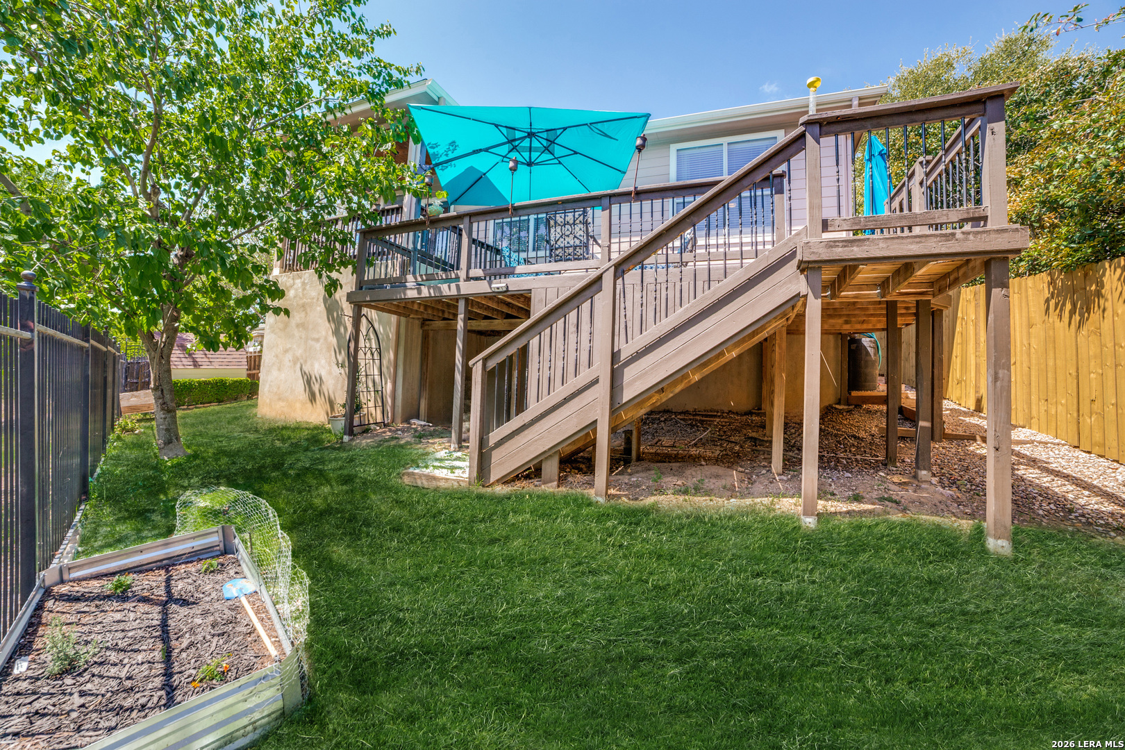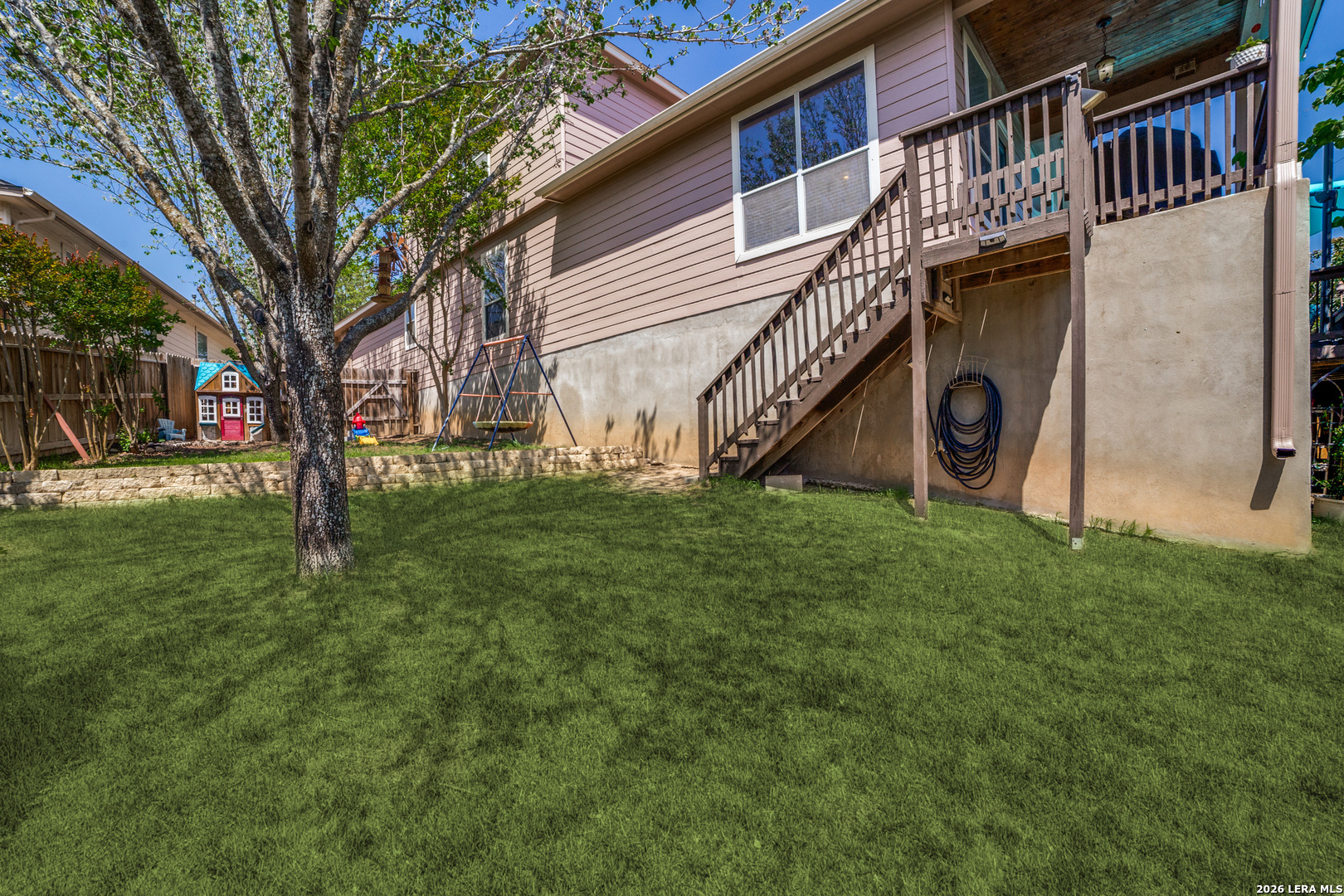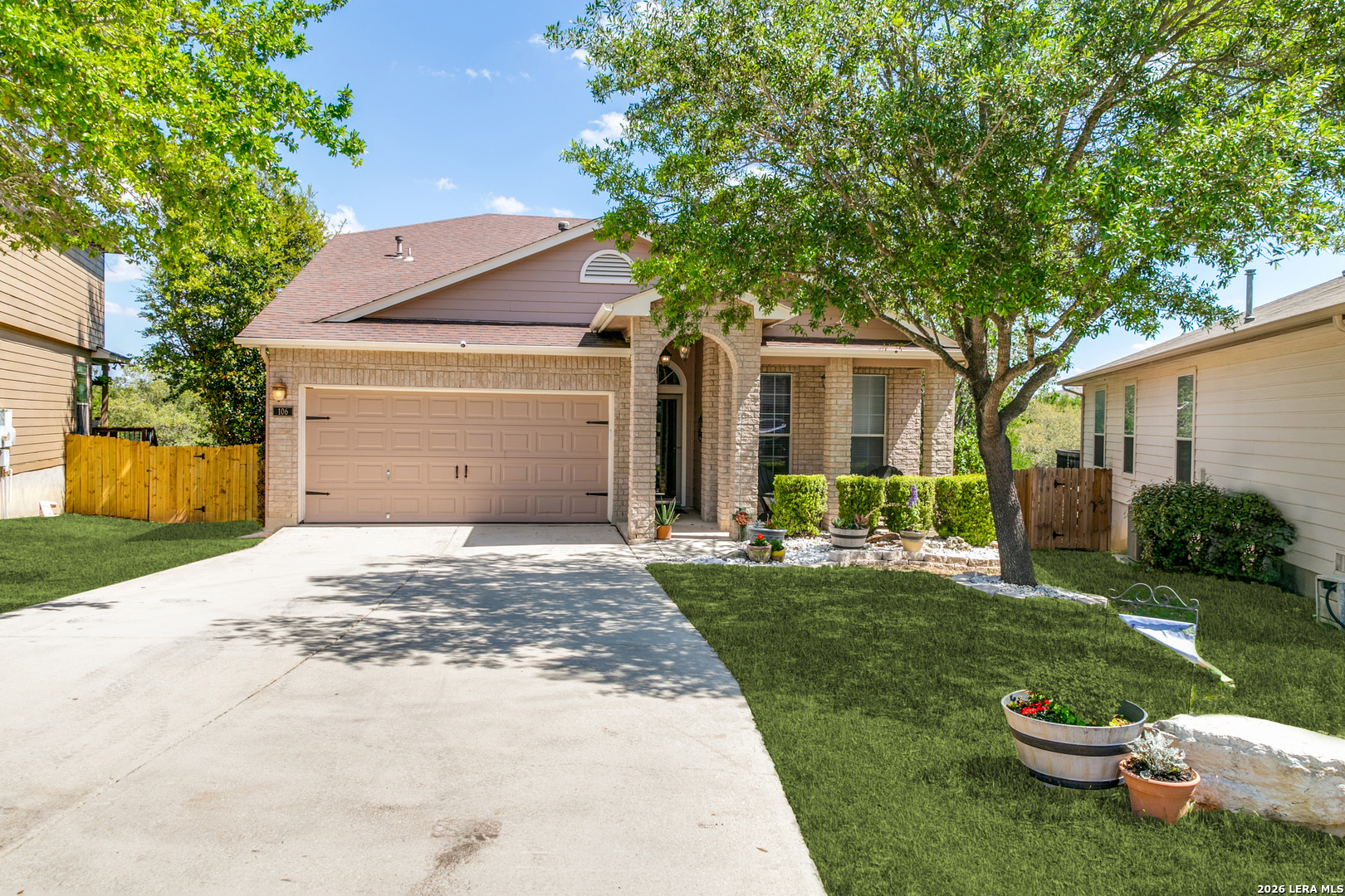 Discover your perfect family retreat in the highly desirable Redbird Ranch community on San Antonio's west side. This spacious 5-bedroom, 3-bathroom two-story home offers the ideal blend of comfort, privacy, and modern living. Situated on a premium corner lot in a quiet cul-de-sac, the home features an extra-long driveway that easily accommodates up to six vehicles. Step inside to find a thoughtfully designed layout with a generous open living area perfect for gatherings or everyday relaxation. The well-appointed kitchen boasts elegant granite countertops and comes complete with a refrigerator. Downstairs, the primary suite provides peaceful views overlooking the lush greenspace behind the home. Outside, enjoy a secluded backyard oasis framed by large mature trees and additional trees along the side, creating a private, park-like setting. The spacious upstairs living area is perfect for a play space or for relaxing. A large wooden deck is ideal for entertaining, morning coffee, or unwinding after a long day. The home has been well maintained with thoughtful updates, delivering a move-in ready experience with ample space throughout. Redbird Ranch is a vibrant, amenity-rich neighborhood offering pools, splash pads, sports courts, parks, playgrounds, plus an on-site Northside ISD elementary school. You're just minutes from Hwy 211, Potranco Road shopping, dining, and everyday conveniences, making this location as convenient as it is inviting. Don't miss this rare opportunity to own a beautifully cared-for home in one of west San Antonio's most sought-after communities. Schedule your showing today!