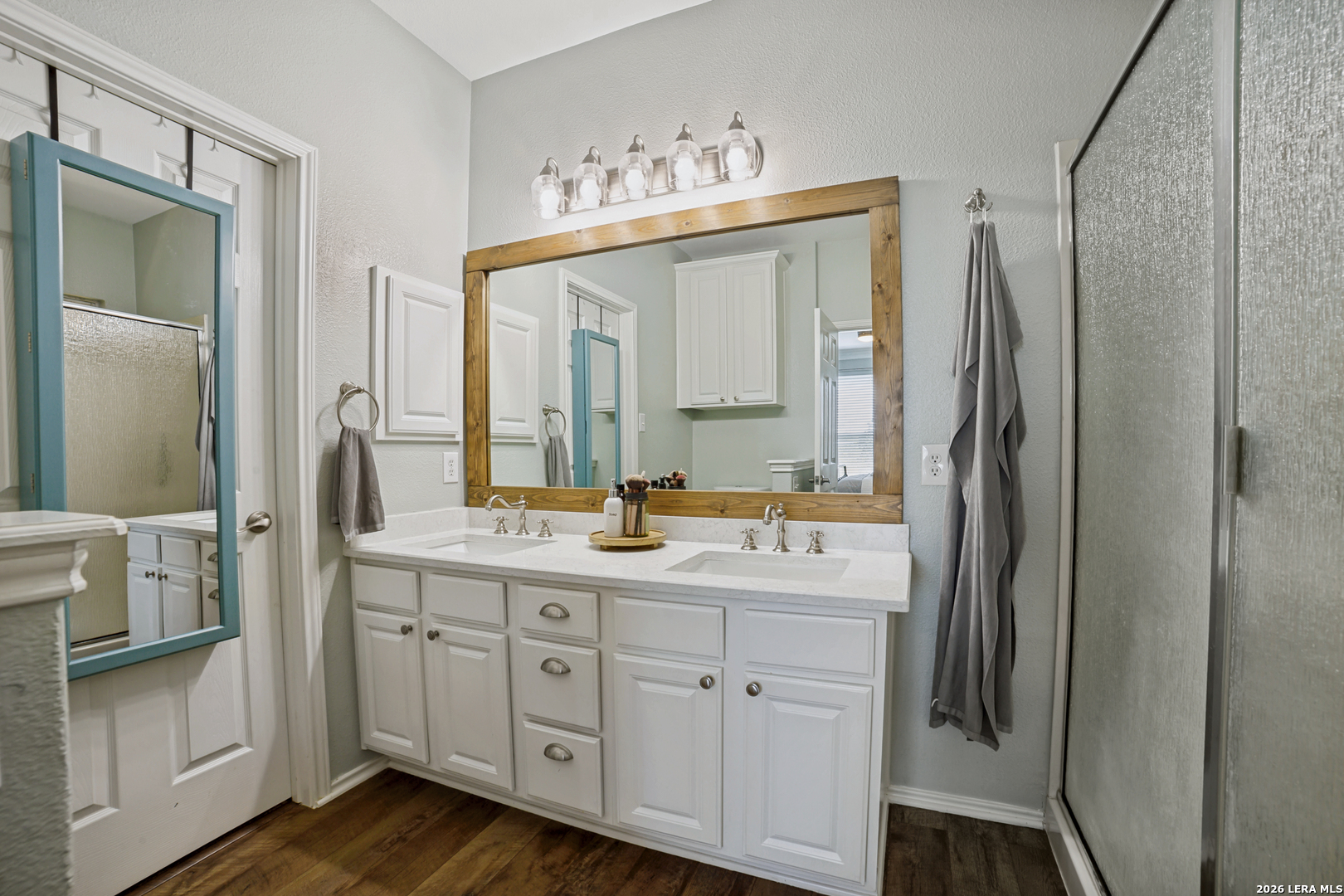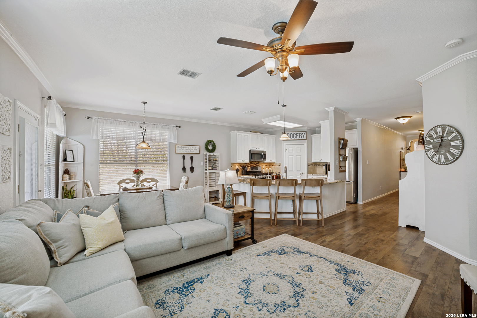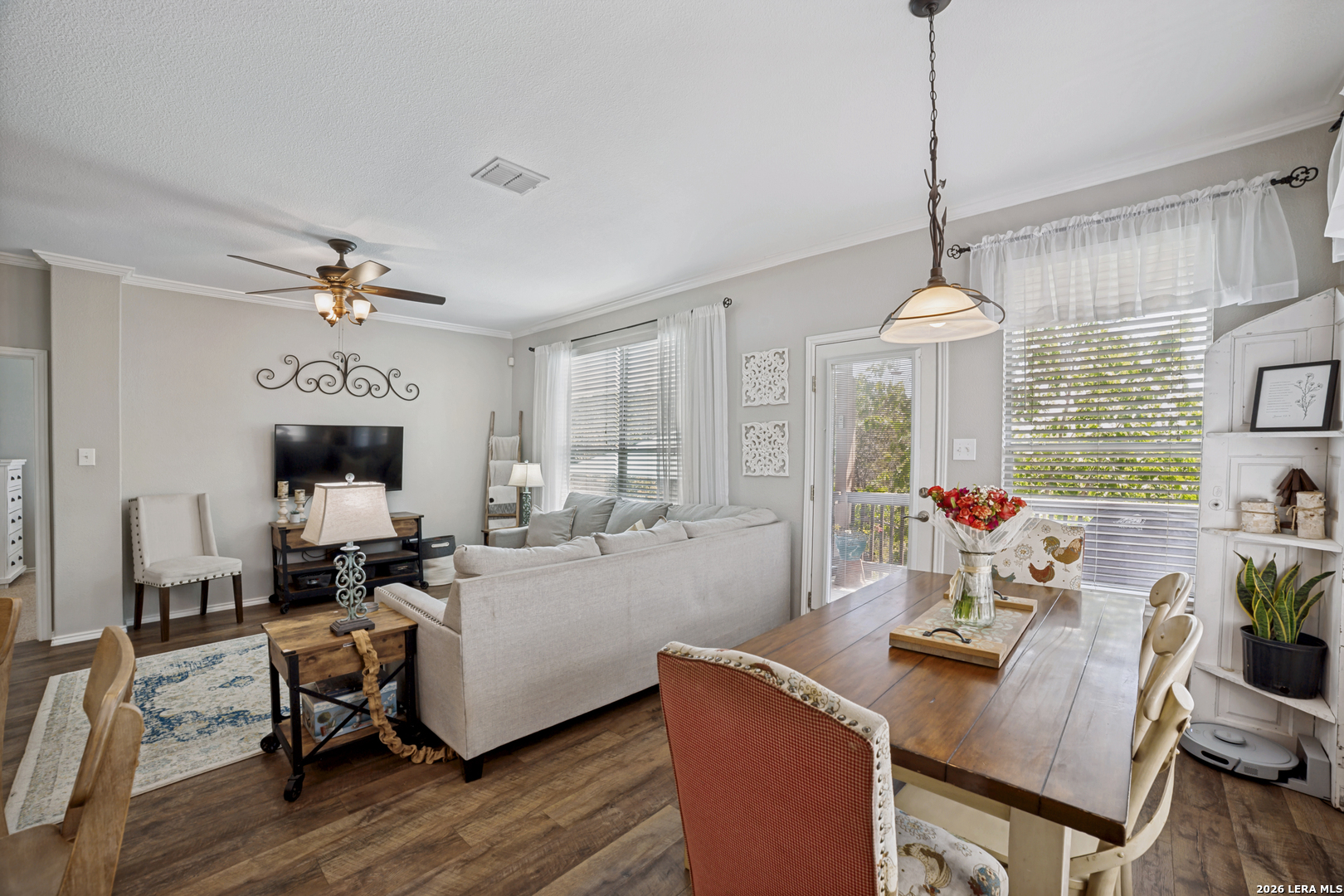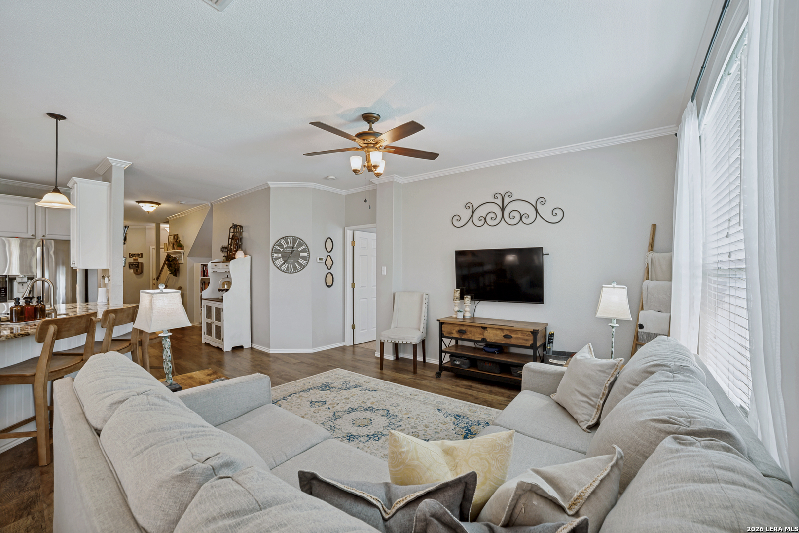 Discover your perfect family retreat in the highly desirable Redbird Ranch community on San Antonio's west side. This spacious 5-bedroom, 3-bathroom two-story home offers the ideal blend of comfort, privacy, and modern living. Situated on a premium corner lot in a quiet cul-de-sac, the home features an extra-long driveway that easily accommodates up to six vehicles. Step inside to find a thoughtfully designed layout with a generous open living area perfect for gatherings or everyday relaxation. The well-appointed kitchen boasts elegant granite countertops and comes complete with a refrigerator. Downstairs, the primary suite provides peaceful views overlooking the lush greenspace behind the home. Outside, enjoy a secluded backyard oasis framed by large mature trees and additional trees along the side, creating a private, park-like setting. The spacious upstairs living area is perfect for a play space or for relaxing. A large wooden deck is ideal for entertaining, morning coffee, or unwinding after a long day. The home has been well maintained with thoughtful updates, delivering a move-in ready experience with ample space throughout. Redbird Ranch is a vibrant, amenity-rich neighborhood offering pools, splash pads, sports courts, parks, playgrounds, plus an on-site Northside ISD elementary school. You're just minutes from Hwy 211, Potranco Road shopping, dining, and everyday conveniences, making this location as convenient as it is inviting. Don't miss this rare opportunity to own a beautifully cared-for home in one of west San Antonio's most sought-after communities. Schedule your showing today!
